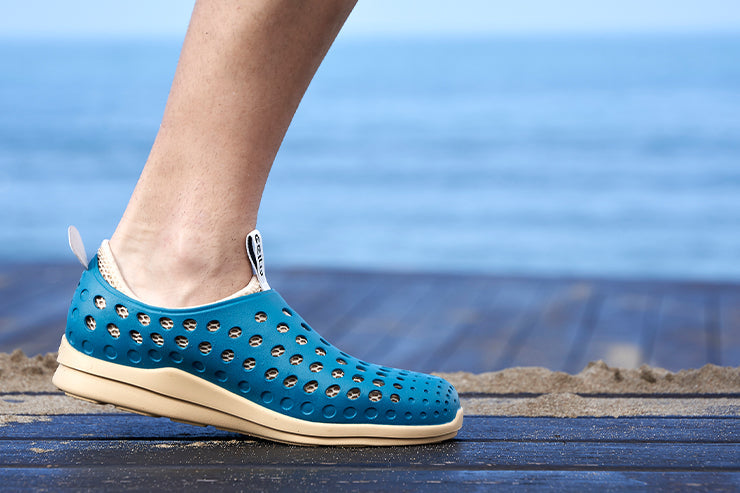Do you plan to get your shoes wet? Keep the insole, but remove the inner shoe and enjoy an entirely waterproof, highly ventilating shoe made from 70% Eco-EVA and 30% upcycled plastic bottles.