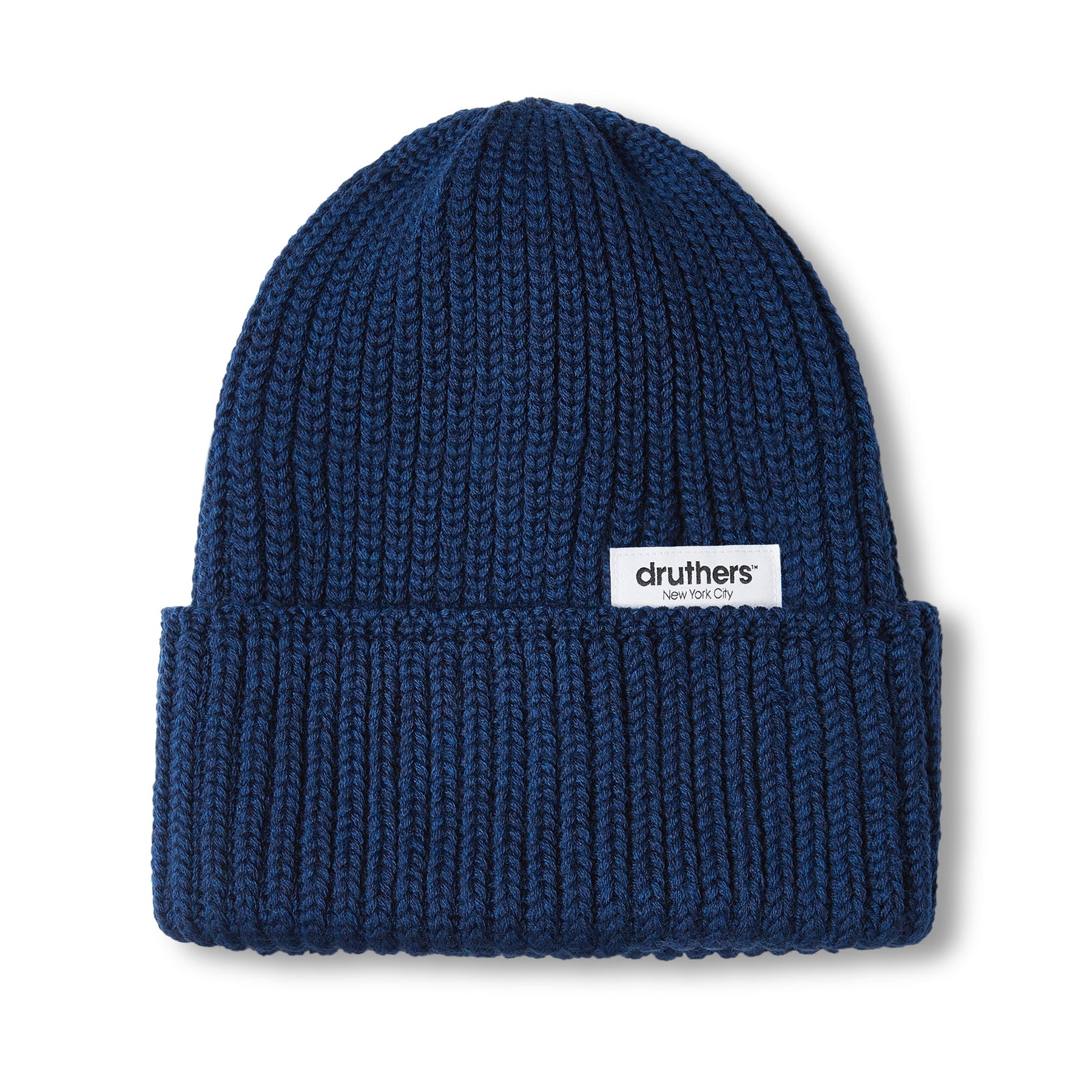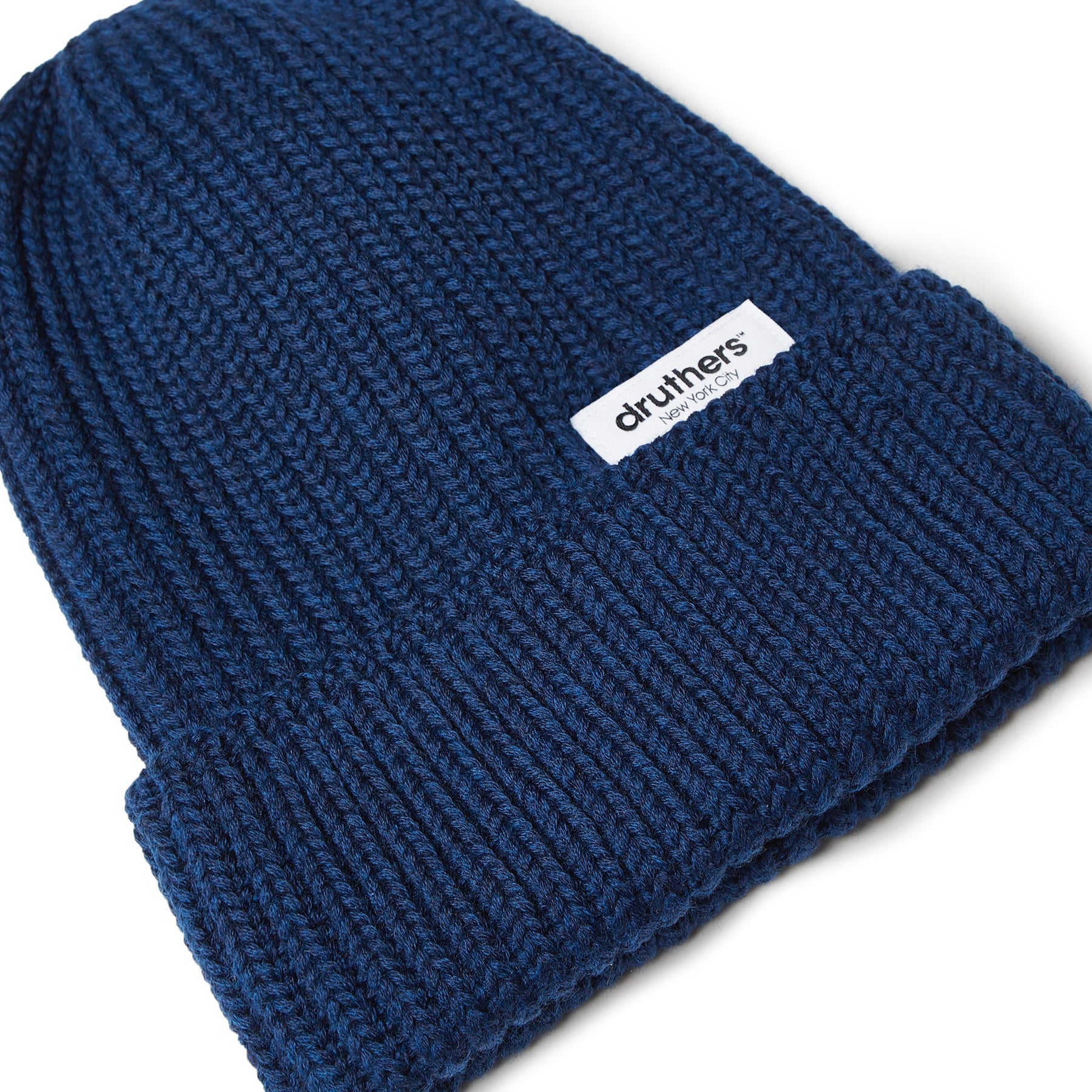Merino Wool Big Knit Cardigan Beanie - Navy Blue