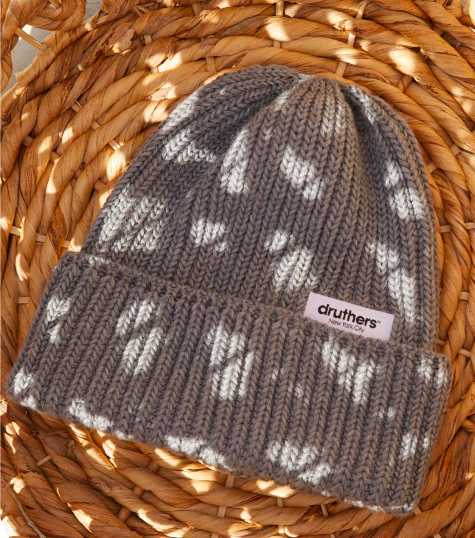 Merino Wool Big Knit Cardigan Beanie - Grey Heather