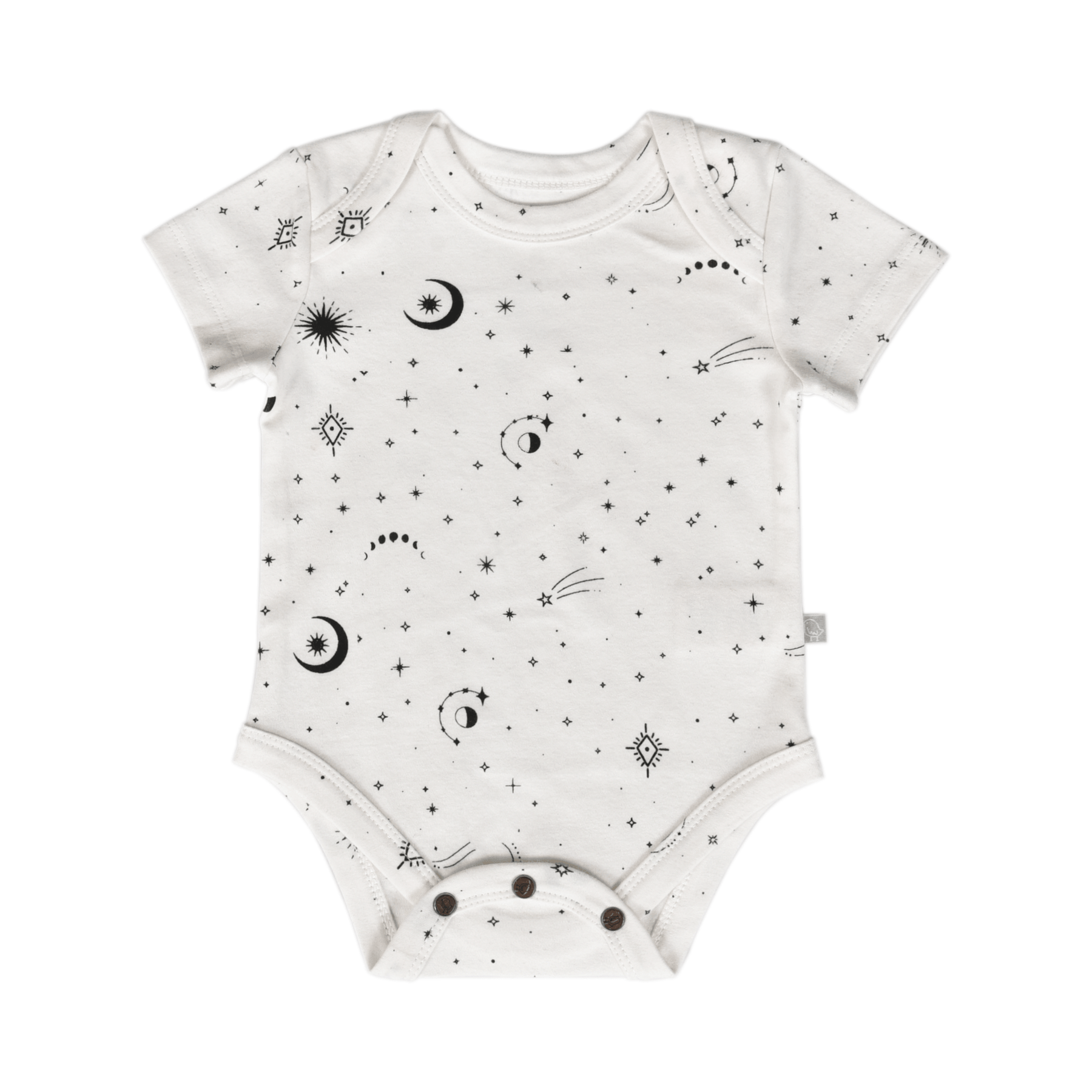 Looking for a dreamy organic baby onesie? This celestial print favorite combines clean design with cloud-soft comfort—ideal for everyday wear or gifting
