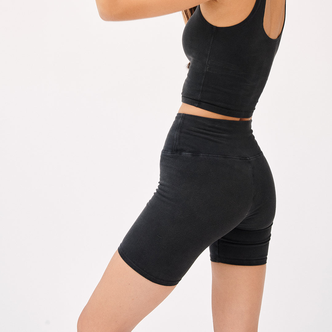 Elevate your activewear with our high-rise biker shorts, crafted from soft, organic cotton for ultimate comfort during low-impact workouts. Versatile and stylish, they transition effortlessly from yoga sessions to brunch dates when paired with an oversized sweater. Dyed with eco-friendly Vege-Dyes, these shorts offer a flattering fit and sustainable flair for all your adventures.