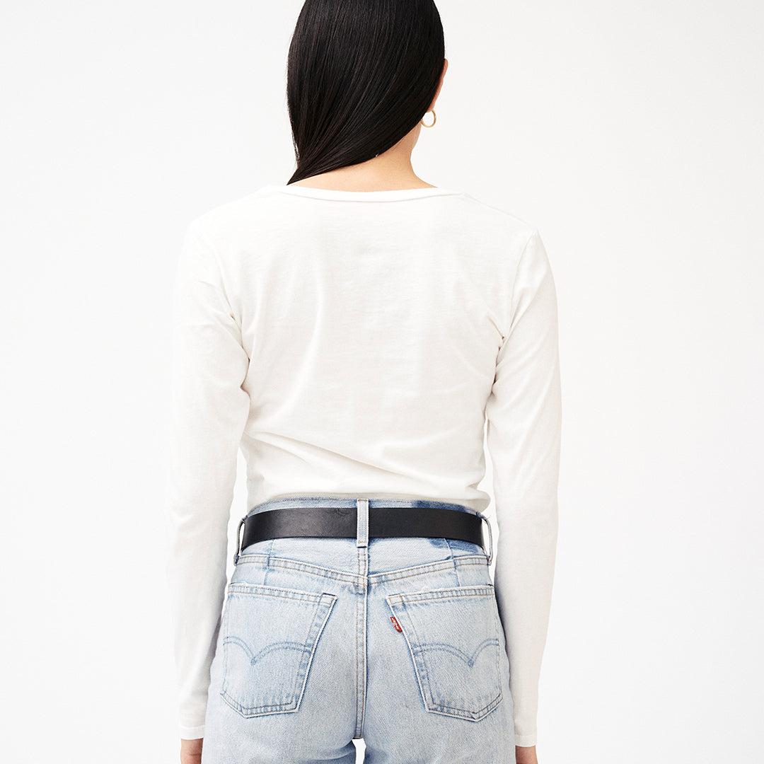 Enveloping every contour with effortless ease, our Classic California Long Sleeve Tee is the top-tier, cream of the crop! 100% GMO-free Organic Cotton: ultra lightweight jersey paired with a flat finish - nothing flatters better!