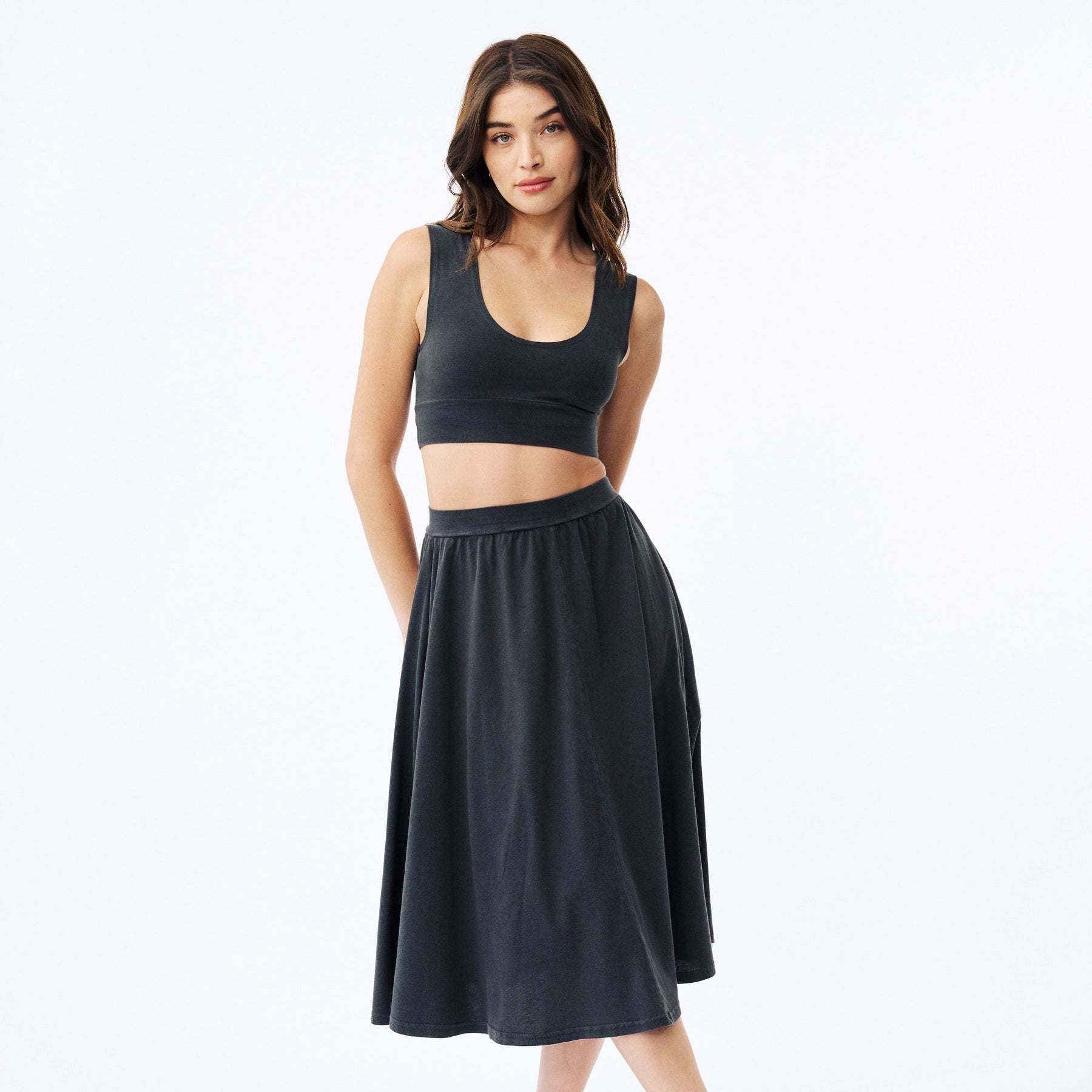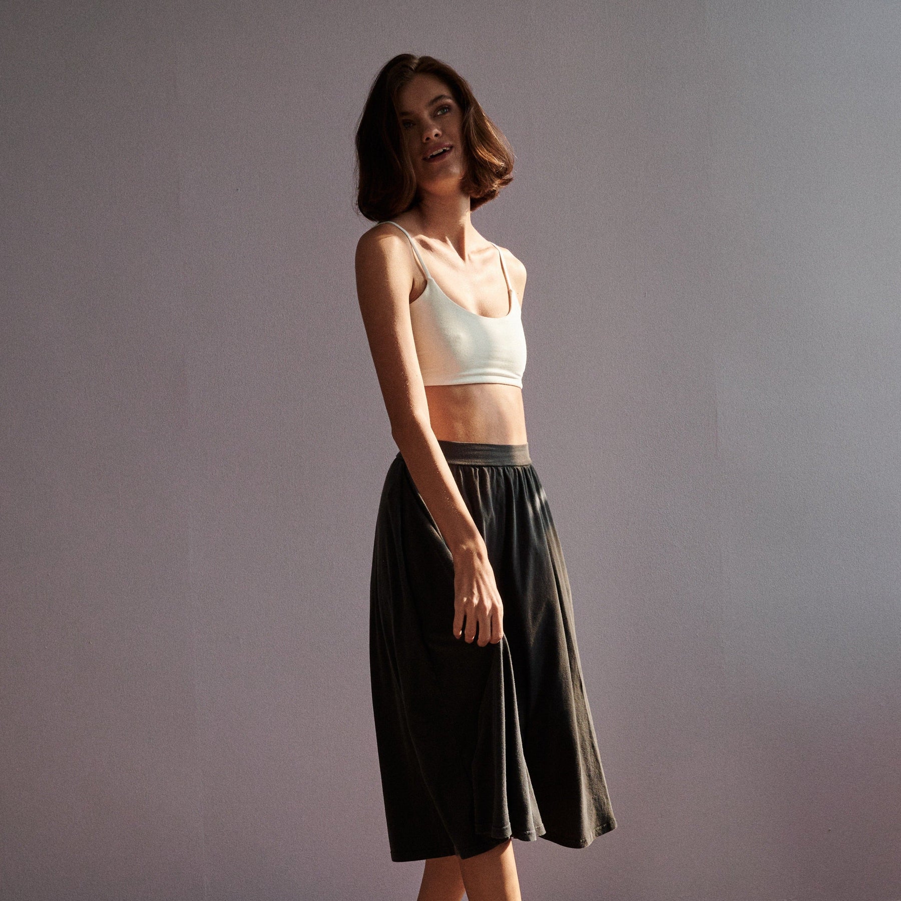An airy and feminine take on the classic A-line silhouette, cut in a midi length from soft and breathable 100% organic cotton. Hidden side pockets give your essentials a place to stay. Pair it with our Cami Bralette for the full look.