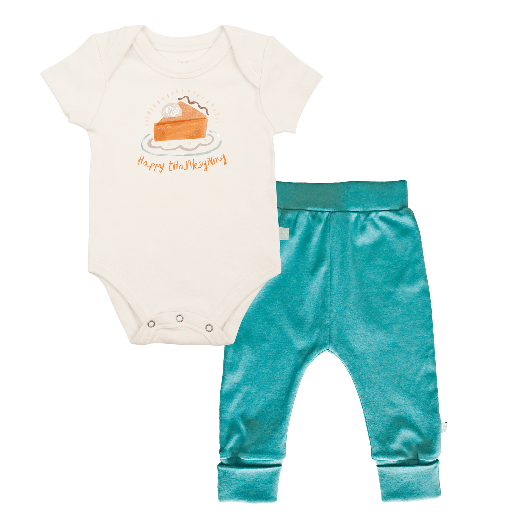 Looking for the perfect gift for baby? We've got just the thing: our Thanksgiving Pie gift set includes agraphic bodysuit and coordinating pant. The bodysuit print features a sweet pie design. Made from buttery-soft organic cotton, our cuffed pant features a stretchy waistband and cuffed ankle detail.