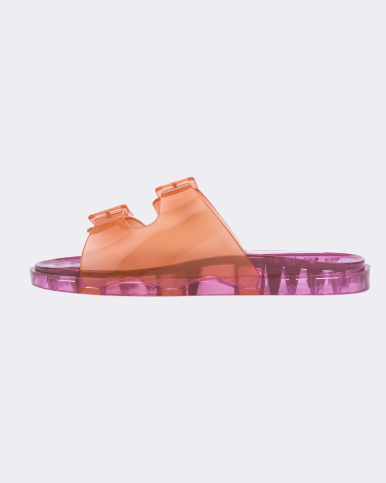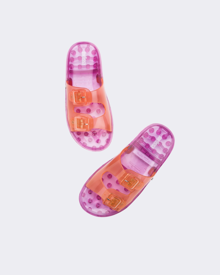 Comfy and fashionable, Melissa Wide is inspired by the super-classic shape that viralized in the 90s. The slide with buckles is one of the most famous style through European summer, thanks to its simplicity, practicability, and versatility.