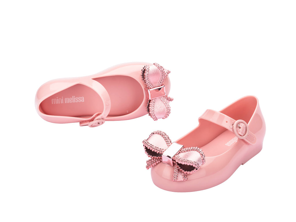Every mini deserves some Melissa <3 in their lives. Our latest Mini Sweet Love silhouette is super delicate with a pretty maxi bow on top and comfy insole to cushion every step in softness. This model has an extra strap with adjustable buckle closure to ensure a snug fit for your little one. Wears well with socks or without.