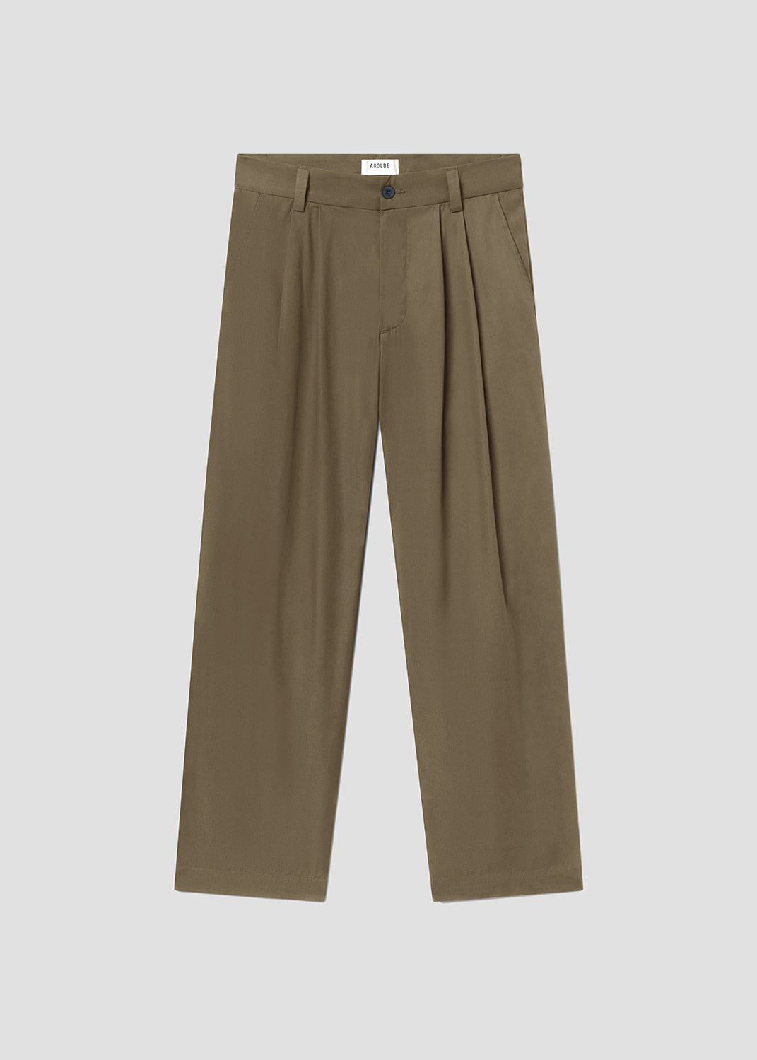 Relaxed straight leg with easy, pleated detailing and a subtle taper.