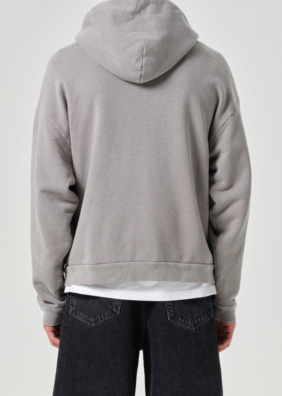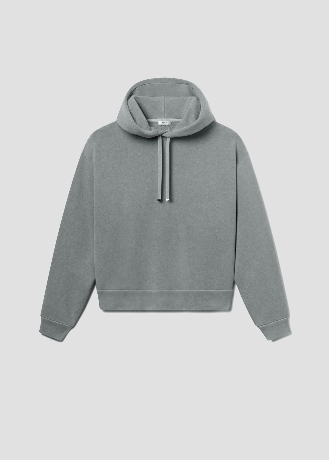 Classic hoodie silhouette crafted from an overdyed, textural heather.