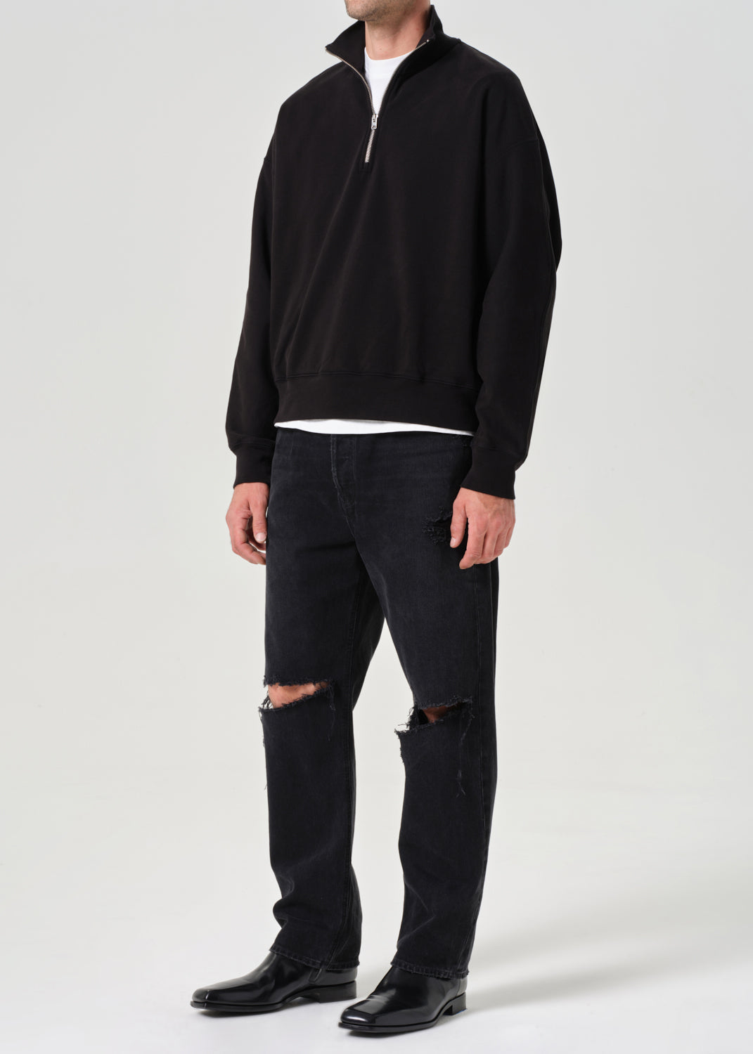 Featuring a boxy fit - sitting away from the body giving a relaxed feel. A quarter zip funnel high neck with a polished zipper.