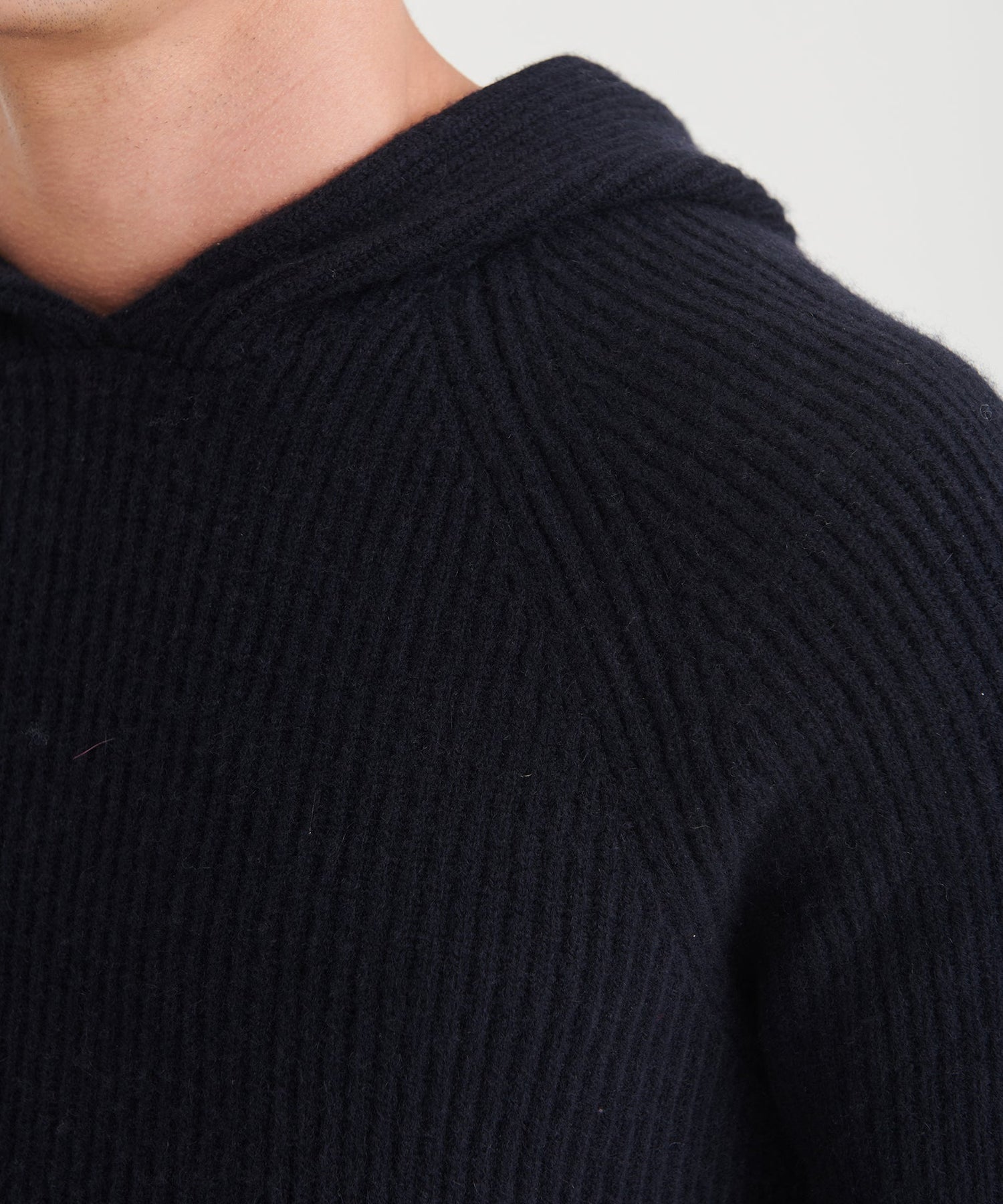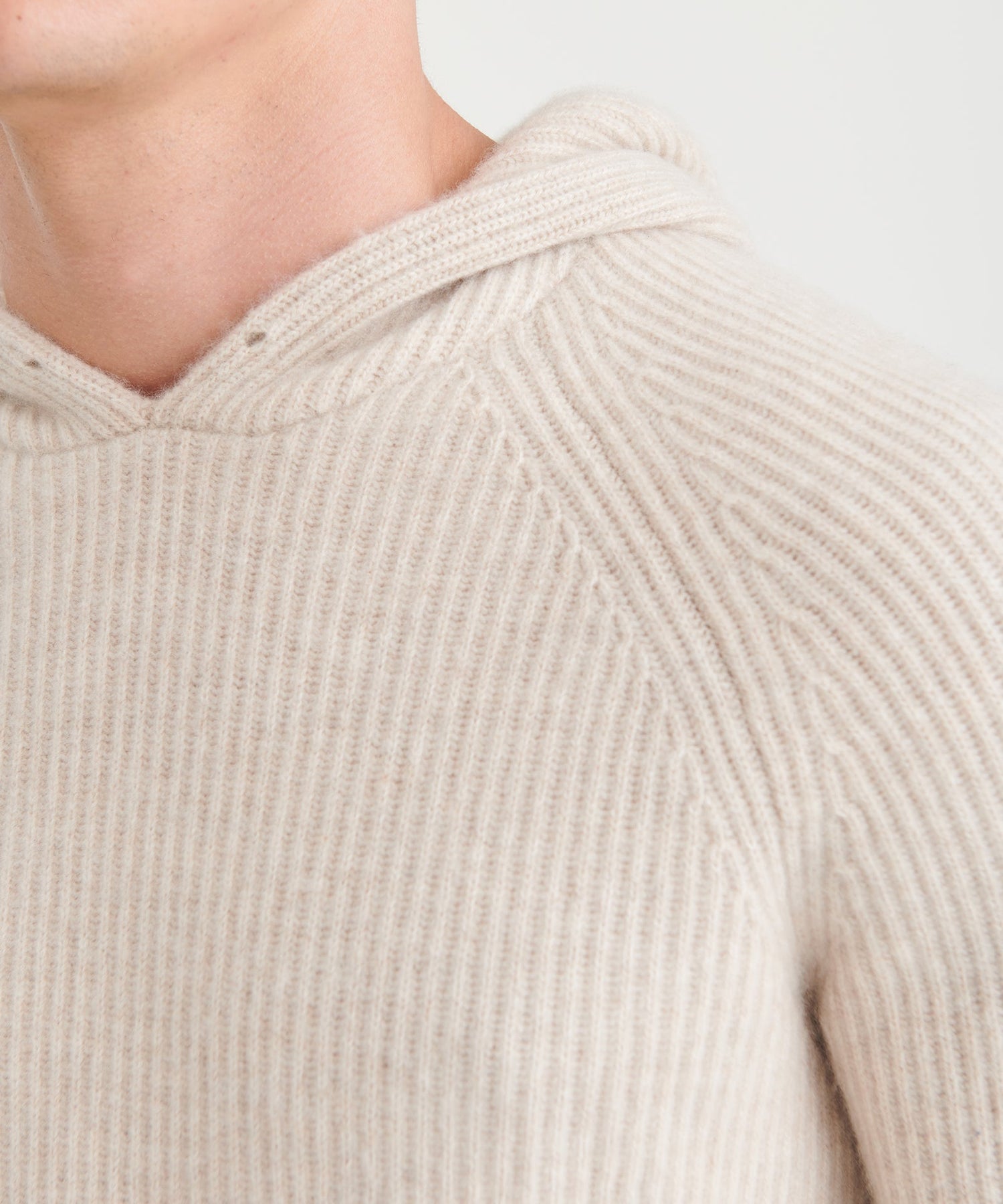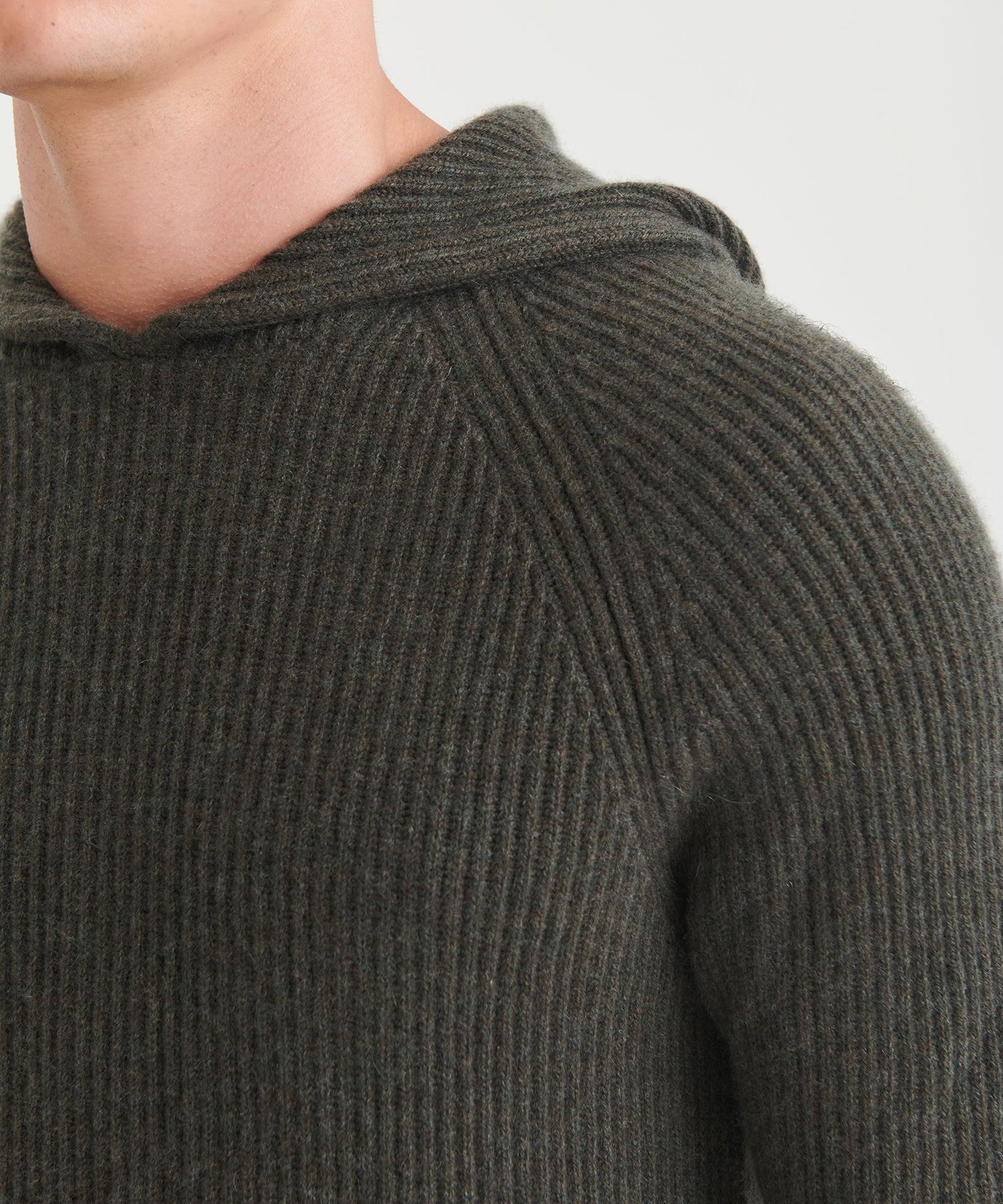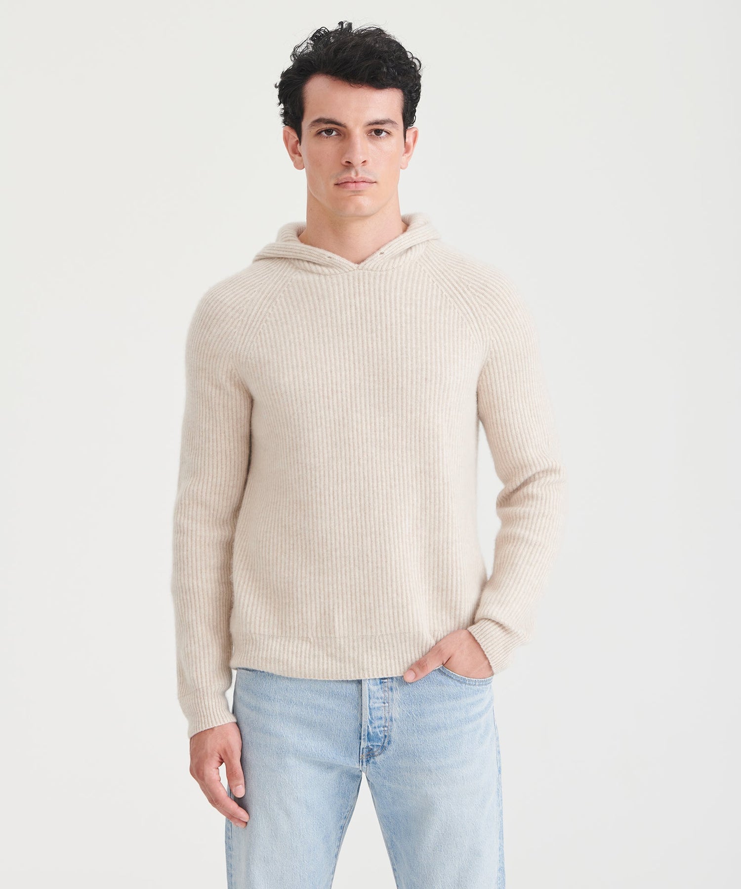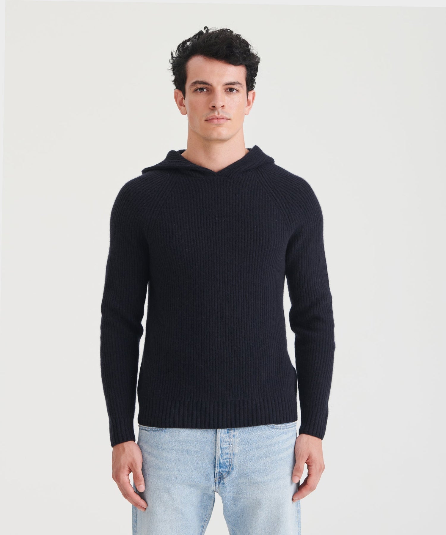 The Luxe Cashmere Fisherman Hoodie is an elevated take on the classic athletic staple. Cut from heavy, ribbed 100% cashmere, it has raglan sleeves and a deliberately unfinished hem. Layer it over your favorite t-shirt or under your favorite jacket and let the hood speak for itself.