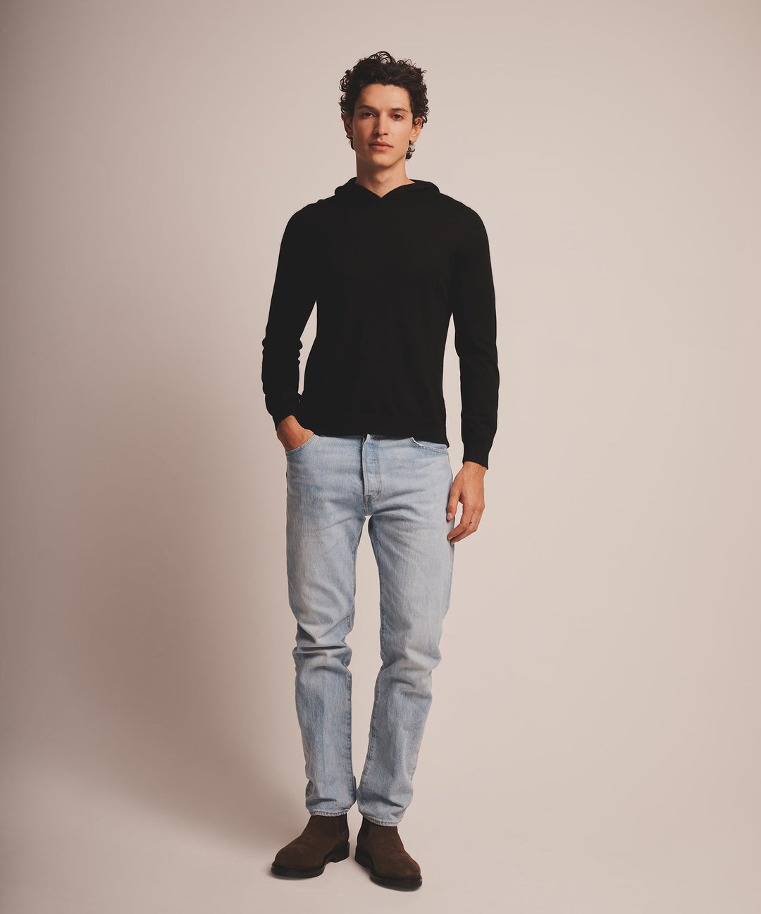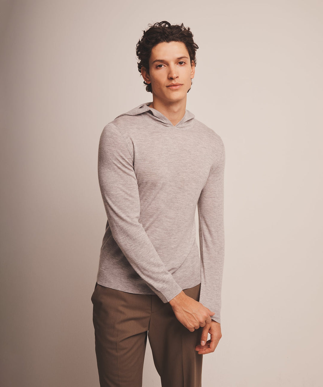 Take a hoodie. Now make it fancy. The Super Fine Cashmere Hoodie is a luxuriously-lightweight knit with a classic fit. It features a clean, no-frills neckline, classic hood, and a silky-soft feel. Crafted from 100% premium, extra-fine cashmere on top-of-the-line machinery.