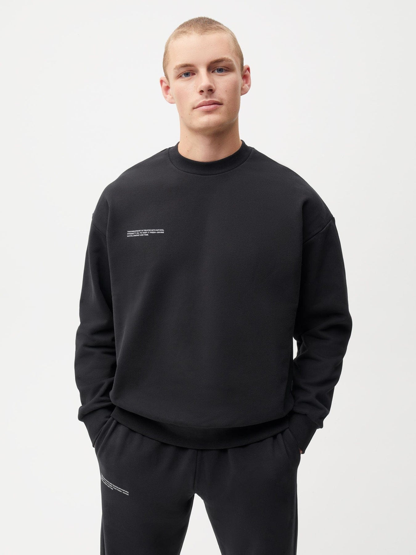 The ultimate everyday essential. Expertly crafted from 320 GSM organic cotton, the 365 Midweight Sweatshirt in black offers an ultra-soft feel, an oversized fit and a genderless silhouette that holds its shape. Designed for year-round wear, this versatile style was treated with PPRMINT™ oil to help keep it fresher for longer.