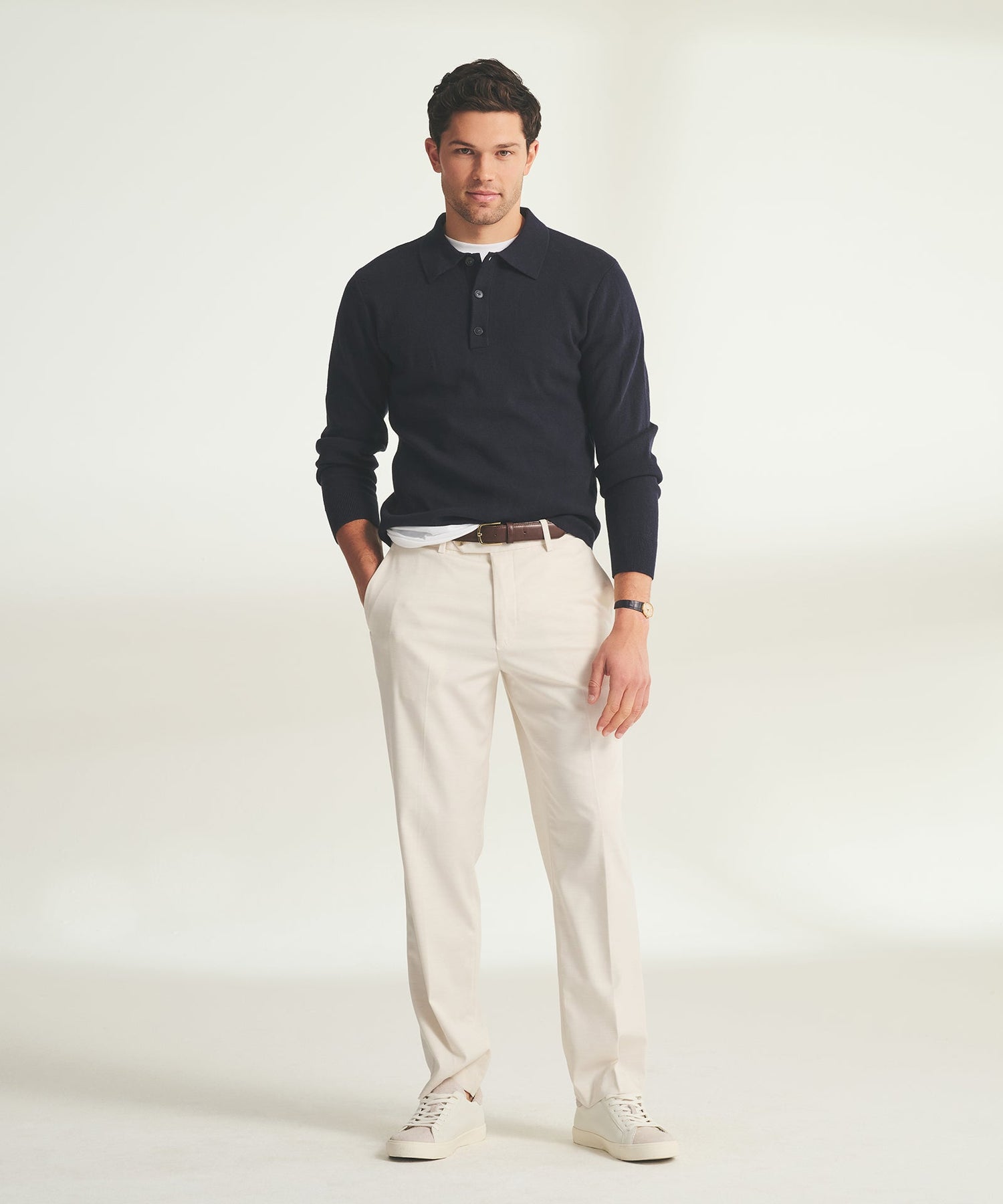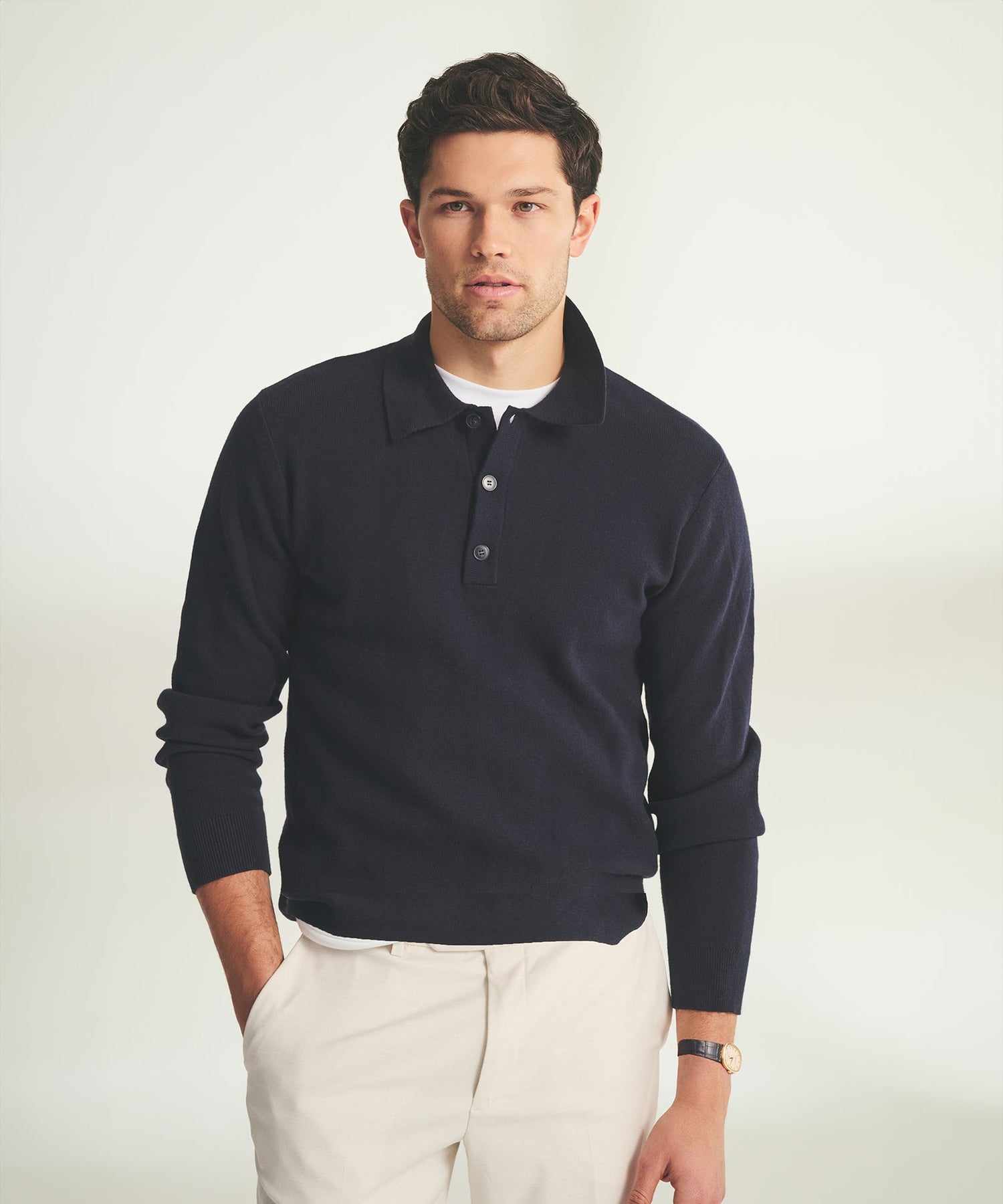 Polo perfection. This cotton cashmere blend brings luxurious comfort to a classic silhouette. Traditional details like a ribbed collar and placket keep it polished, while the relaxed fit adds laid-back appeal. Machine washable for easy care.