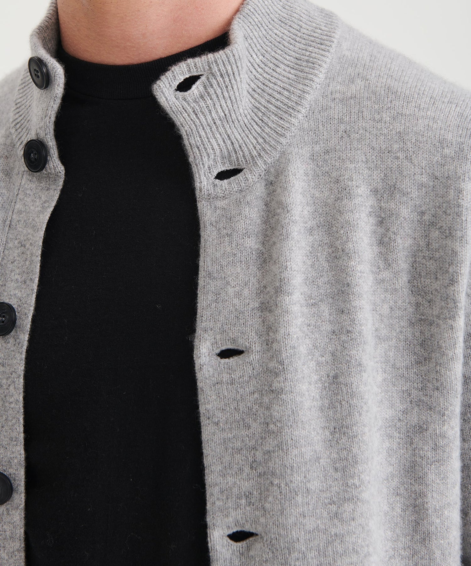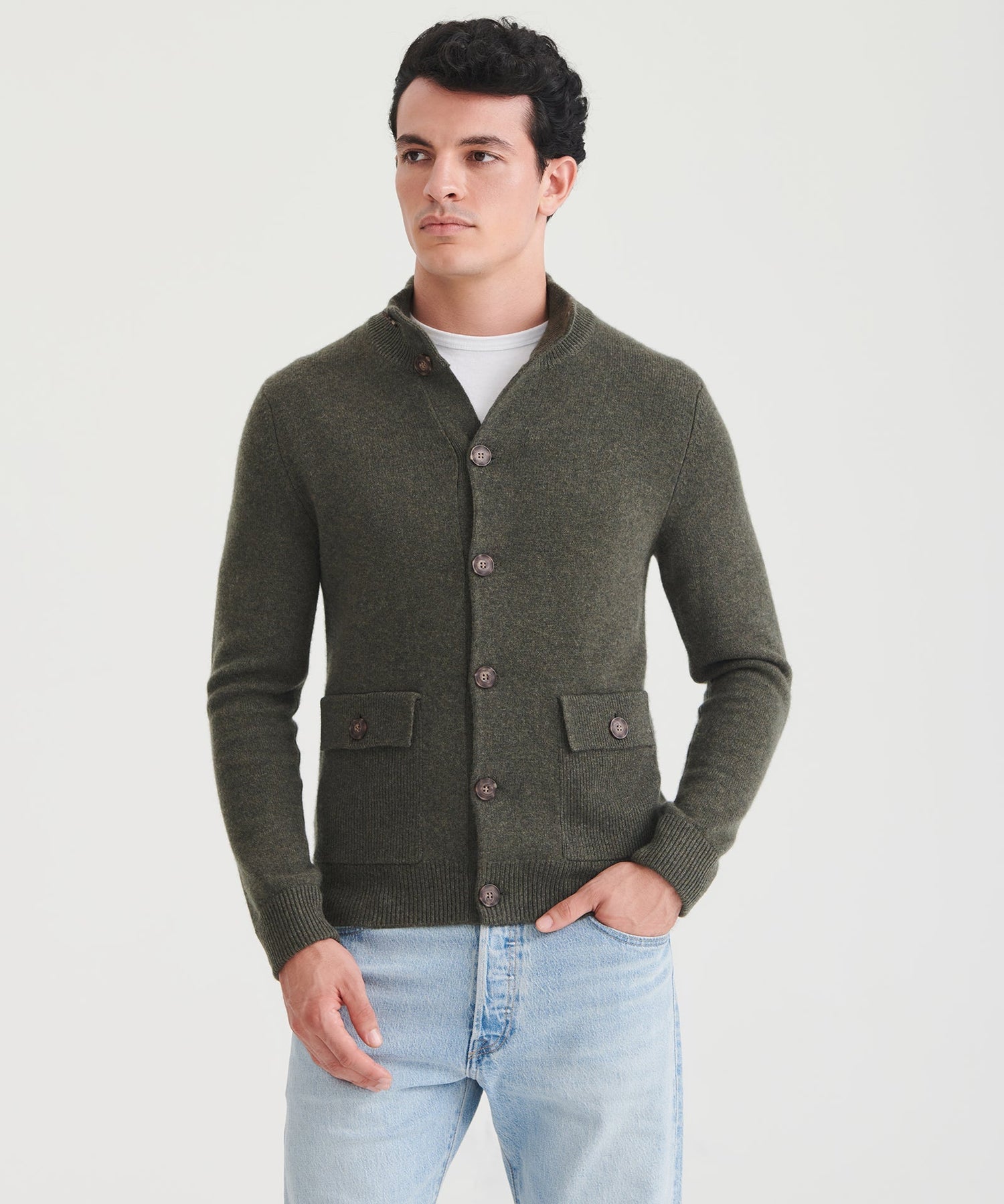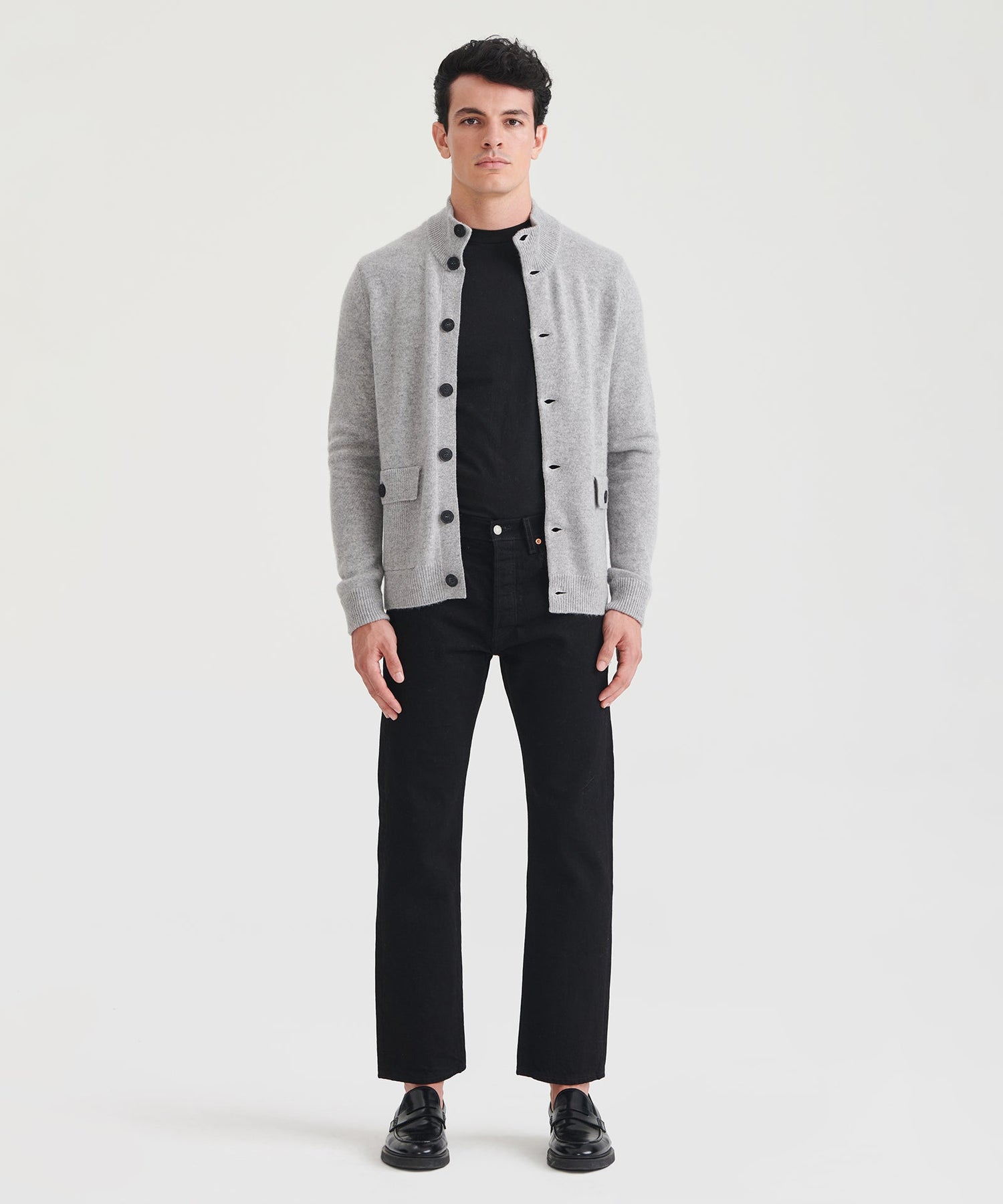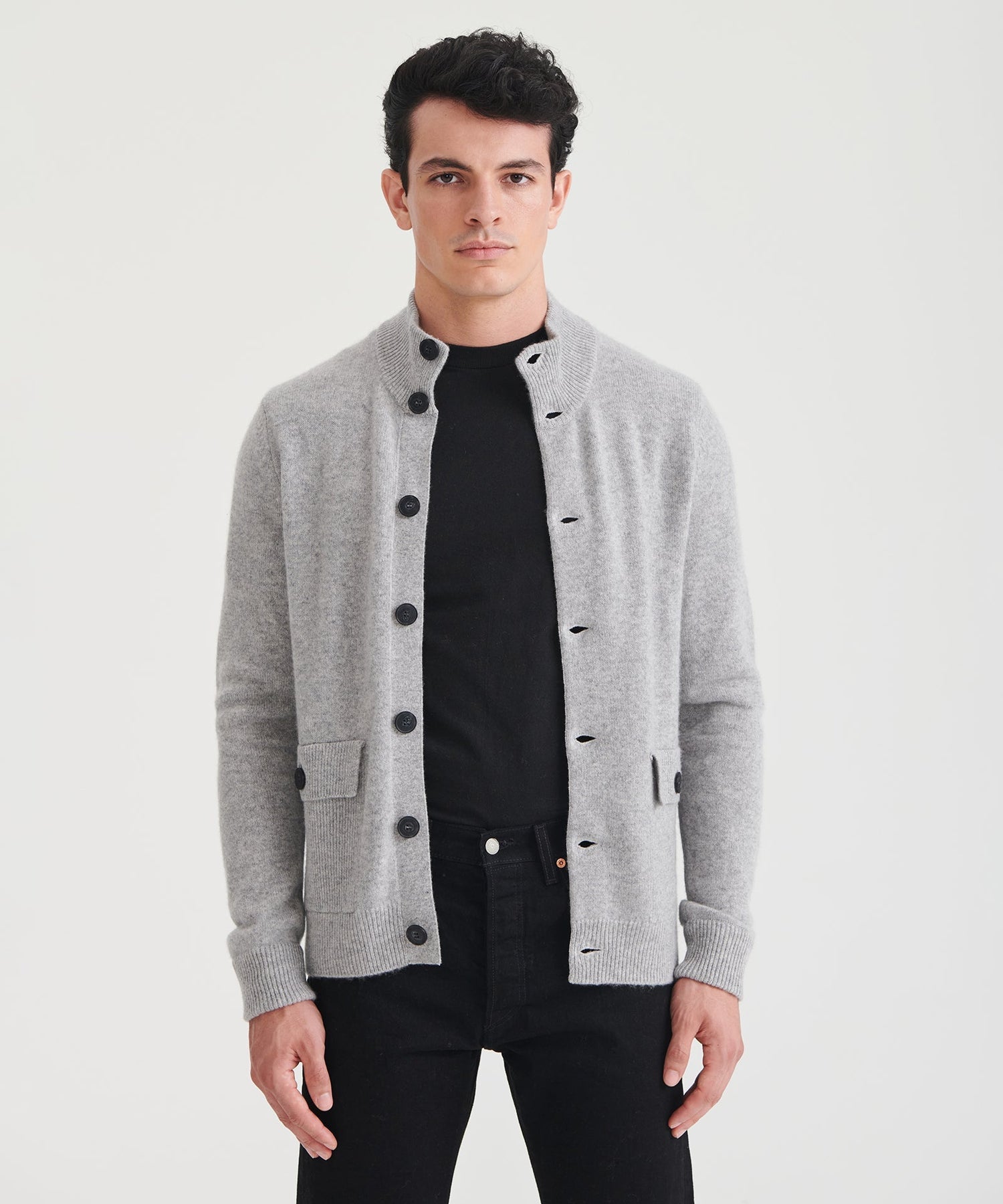 The Luxe Cashmere High Neck Cardigan is our updated take on the Shacket. With a streamlined silhouette, front button closure and ribbing on the front pockets, cuffs and hem, this cardigan is the elevated but unexpected piece you've been searching for. Whether worn alone or as outerwear, this cardigan holds its own in any situation.