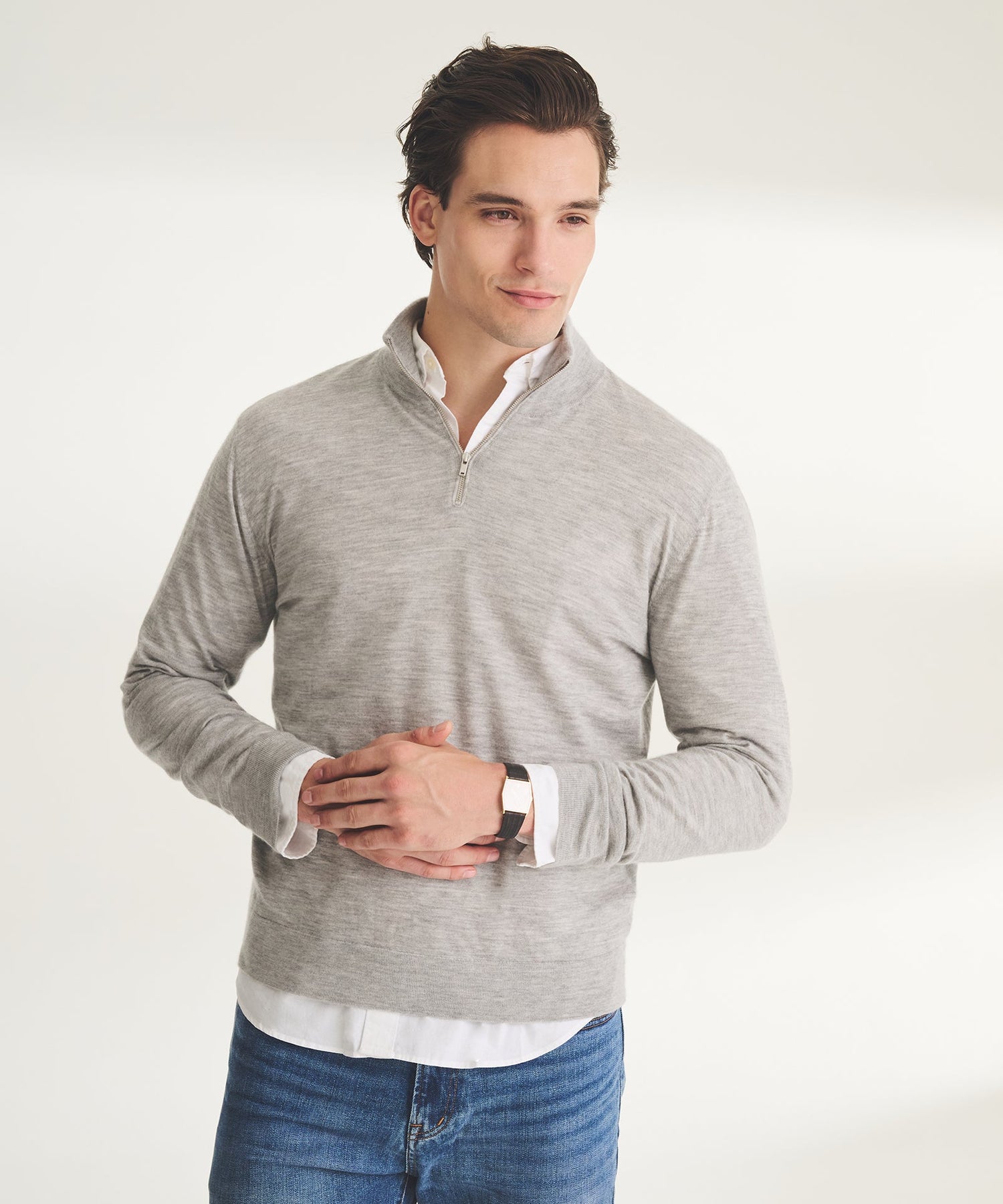 The Super Fine Cashmere Quarter Zip is a luxuriously-lightweight layer with a classic fit. It features a stand-up collar, quarter zip neckline, and ribbed details. Crafted from Super Fine Cashmere: our premium, 16gg cashmere that’s knit on top-of-the-line machinery. It’s extra-fine and silky-soft.