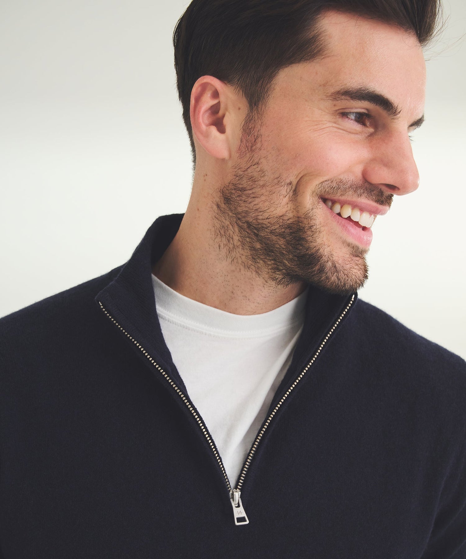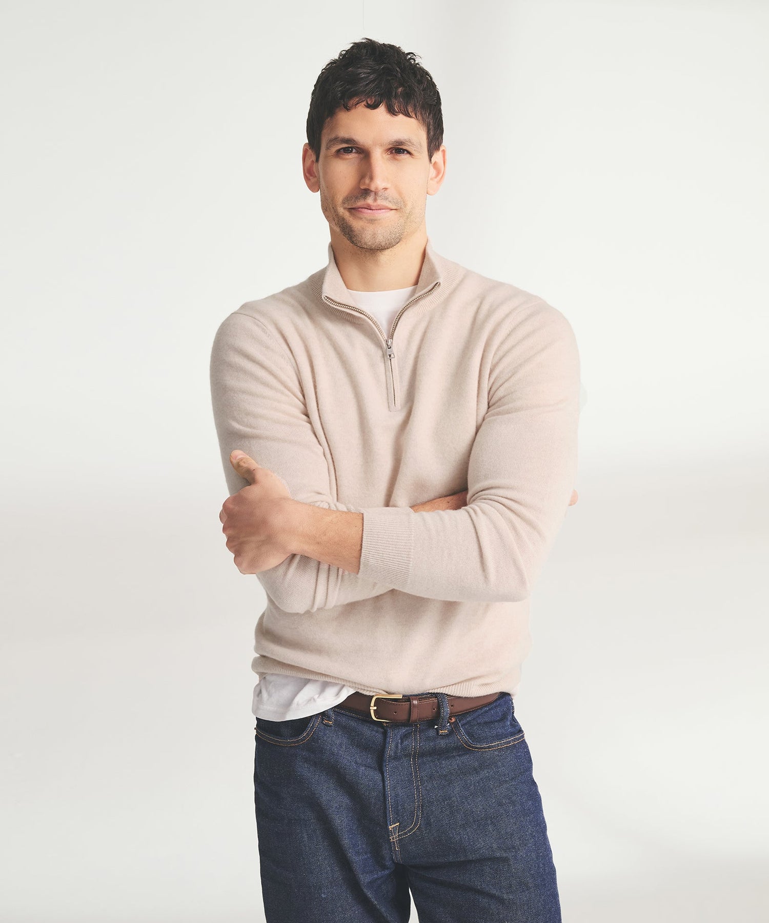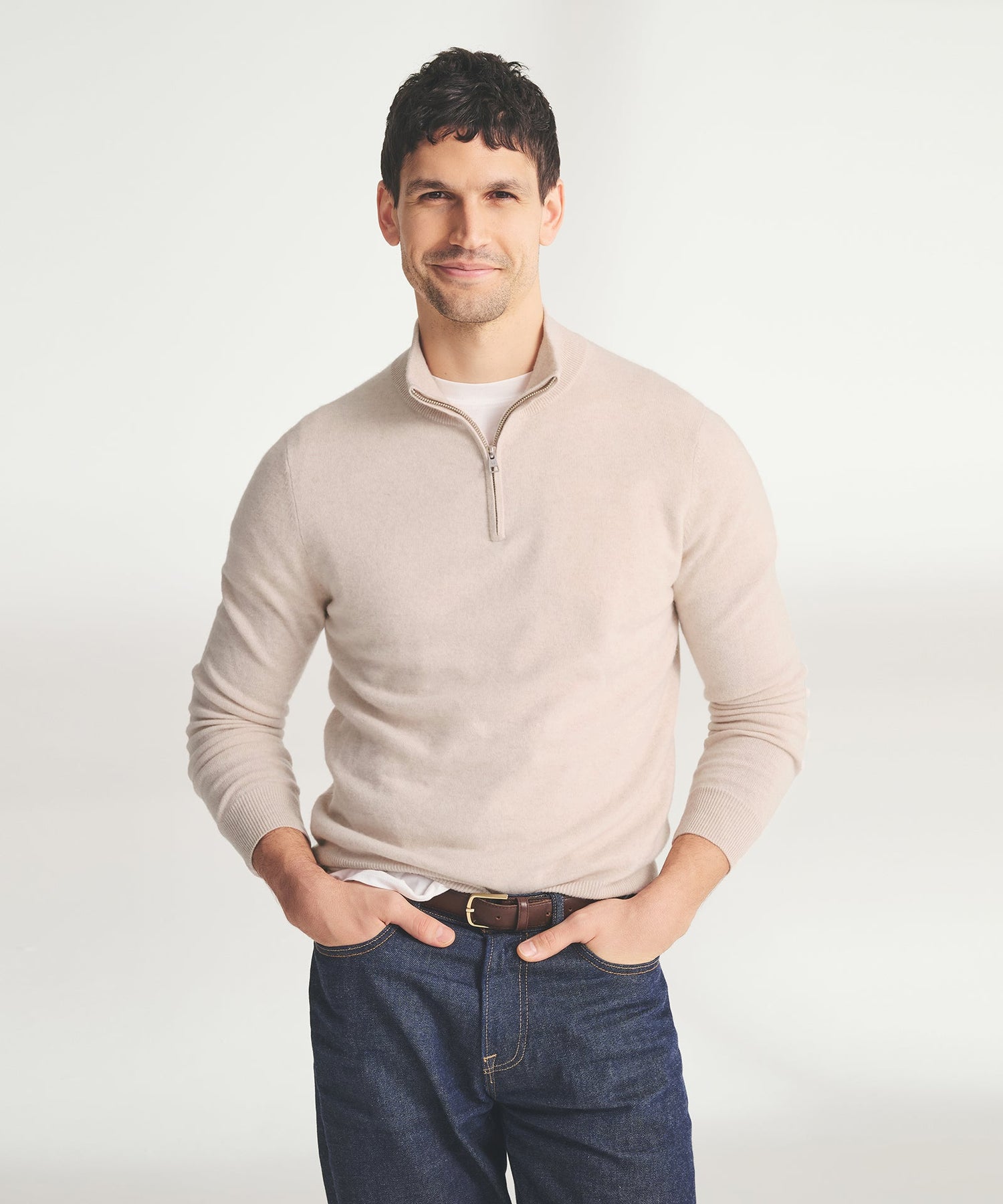 The Signature Cashmere Quarter Zip is a soft, versatile pullover with a relaxed classic fit. It features a stand-up collar, ribbed details, and quarter zip neckline. Crafted from 100% premium, sustainable cashmere.