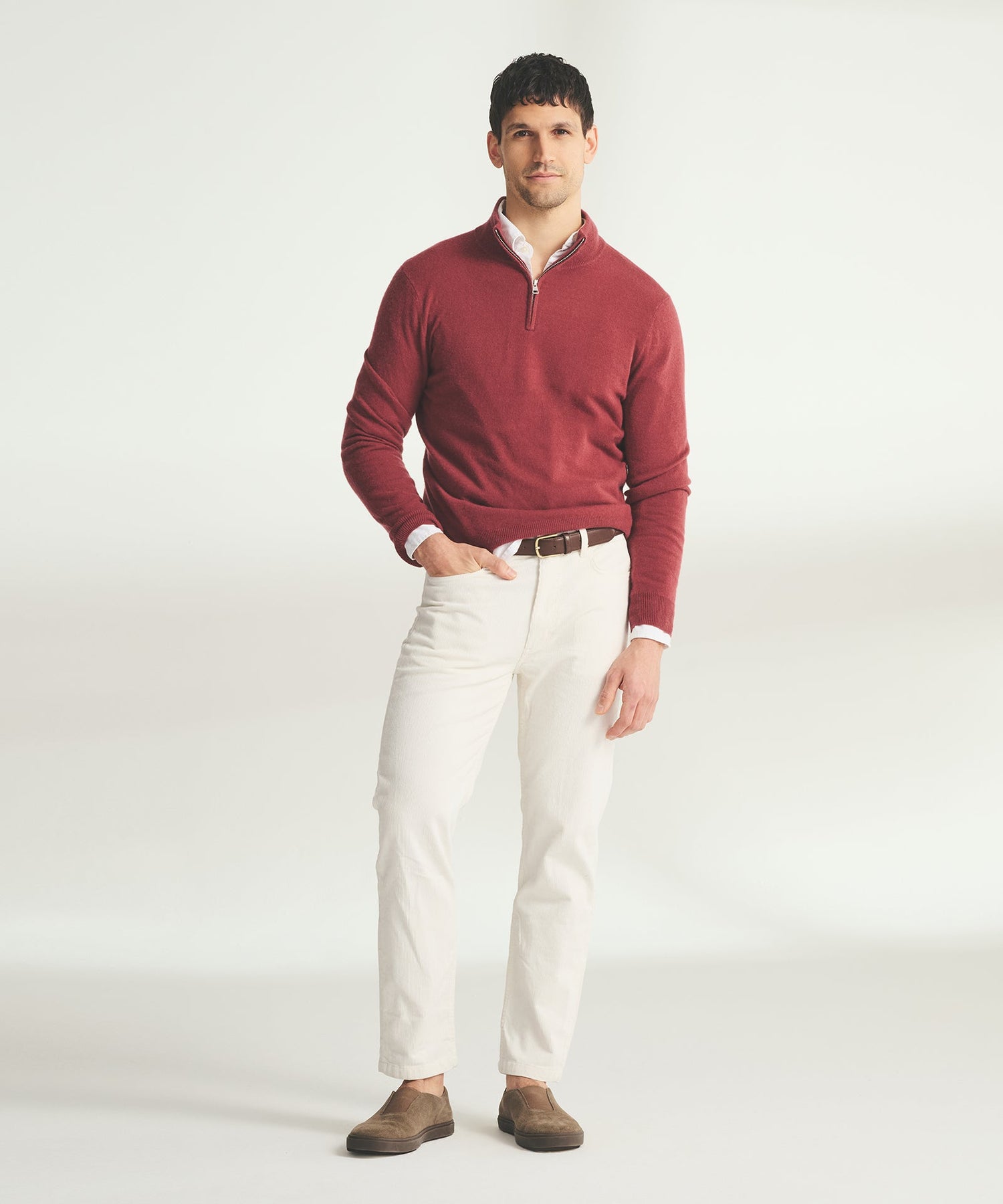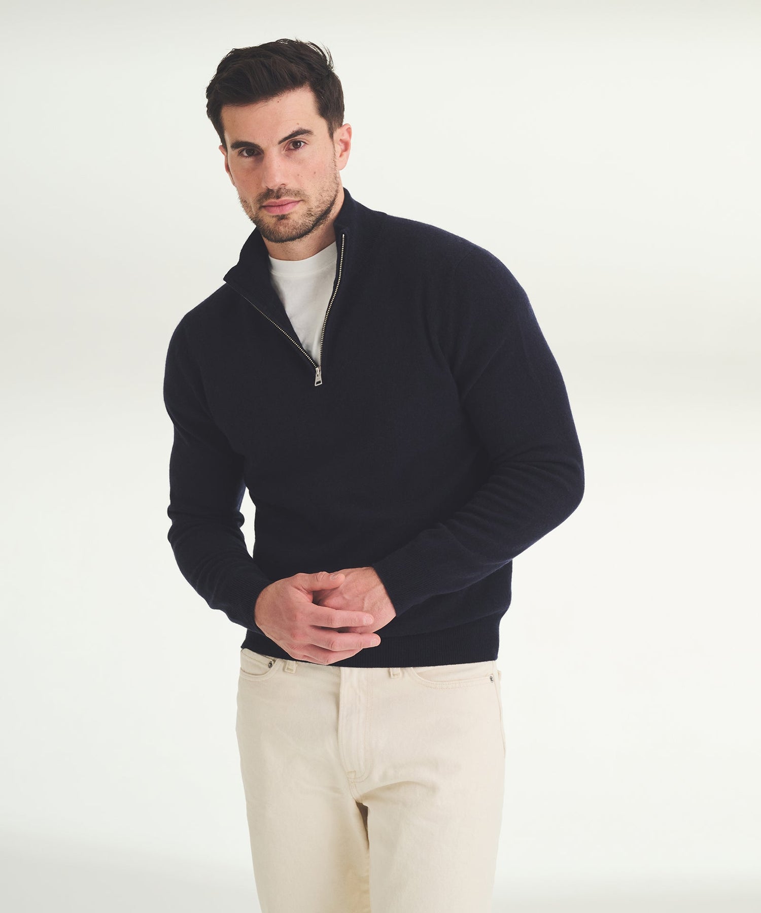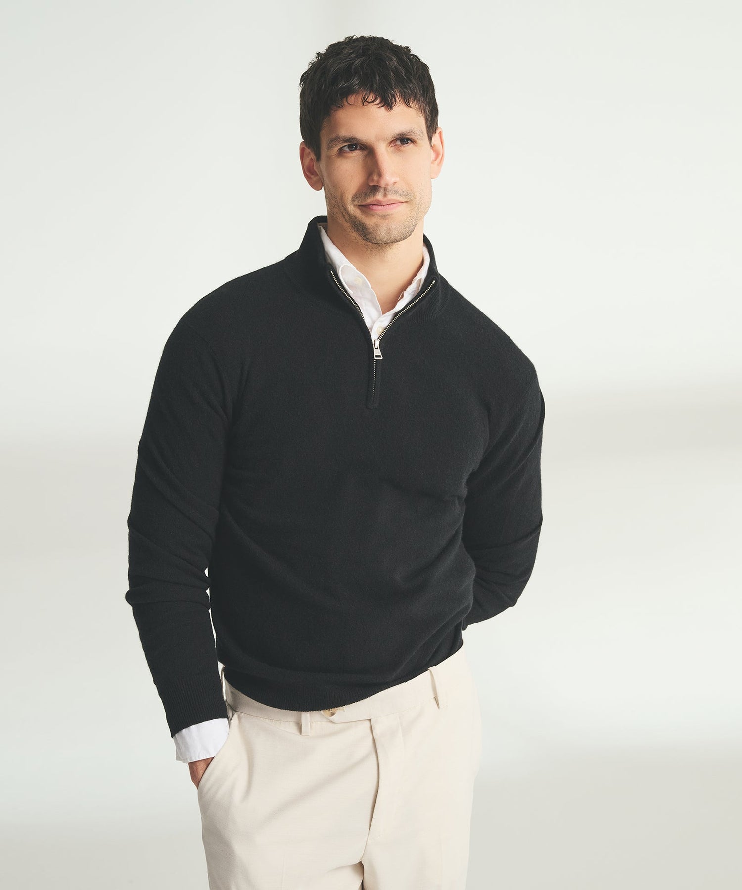 The Signature Cashmere Quarter Zip is a soft, versatile pullover with a relaxed classic fit. It features a stand-up collar, ribbed details, and quarter zip neckline. Crafted from 100% premium, sustainable cashmere.