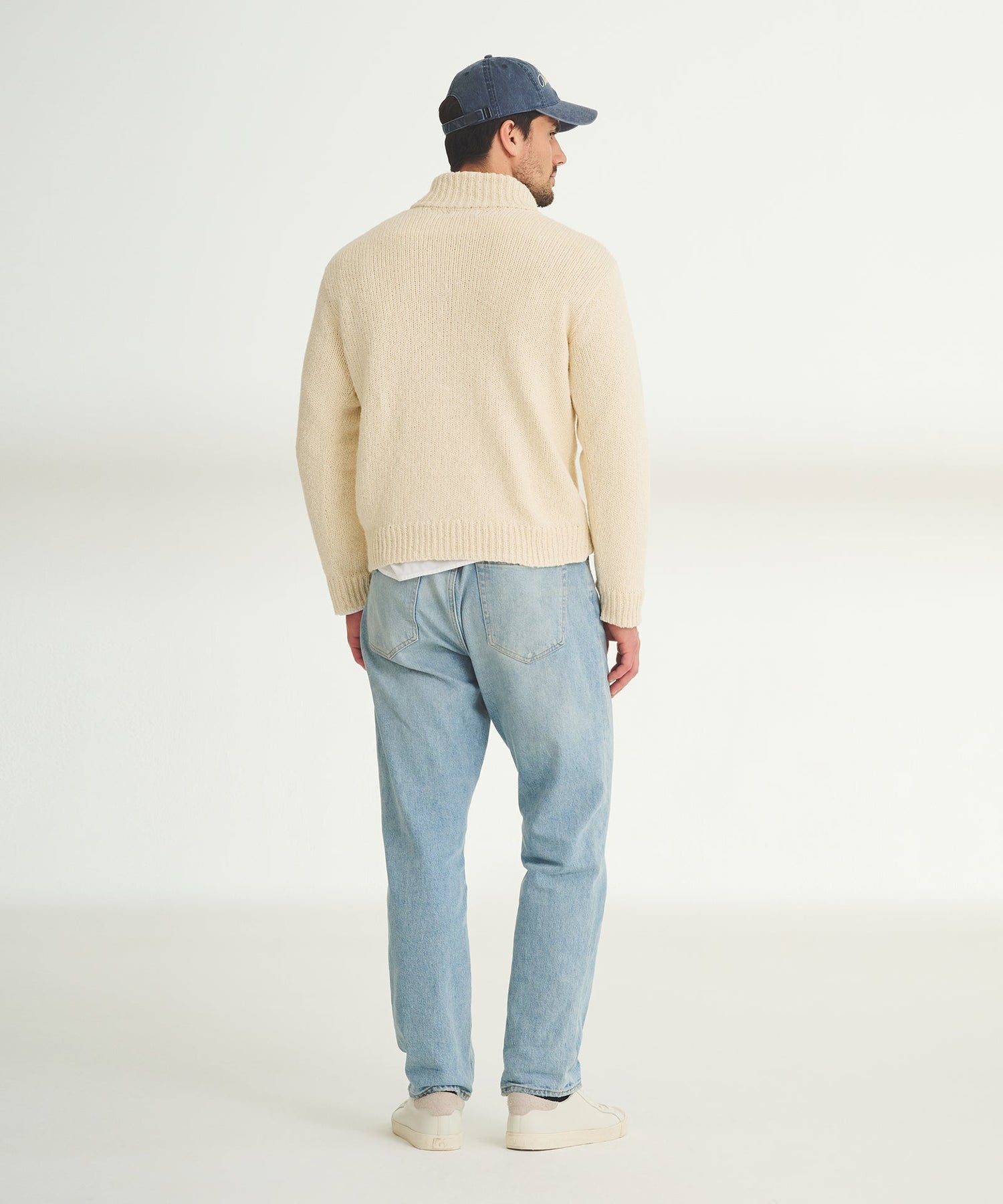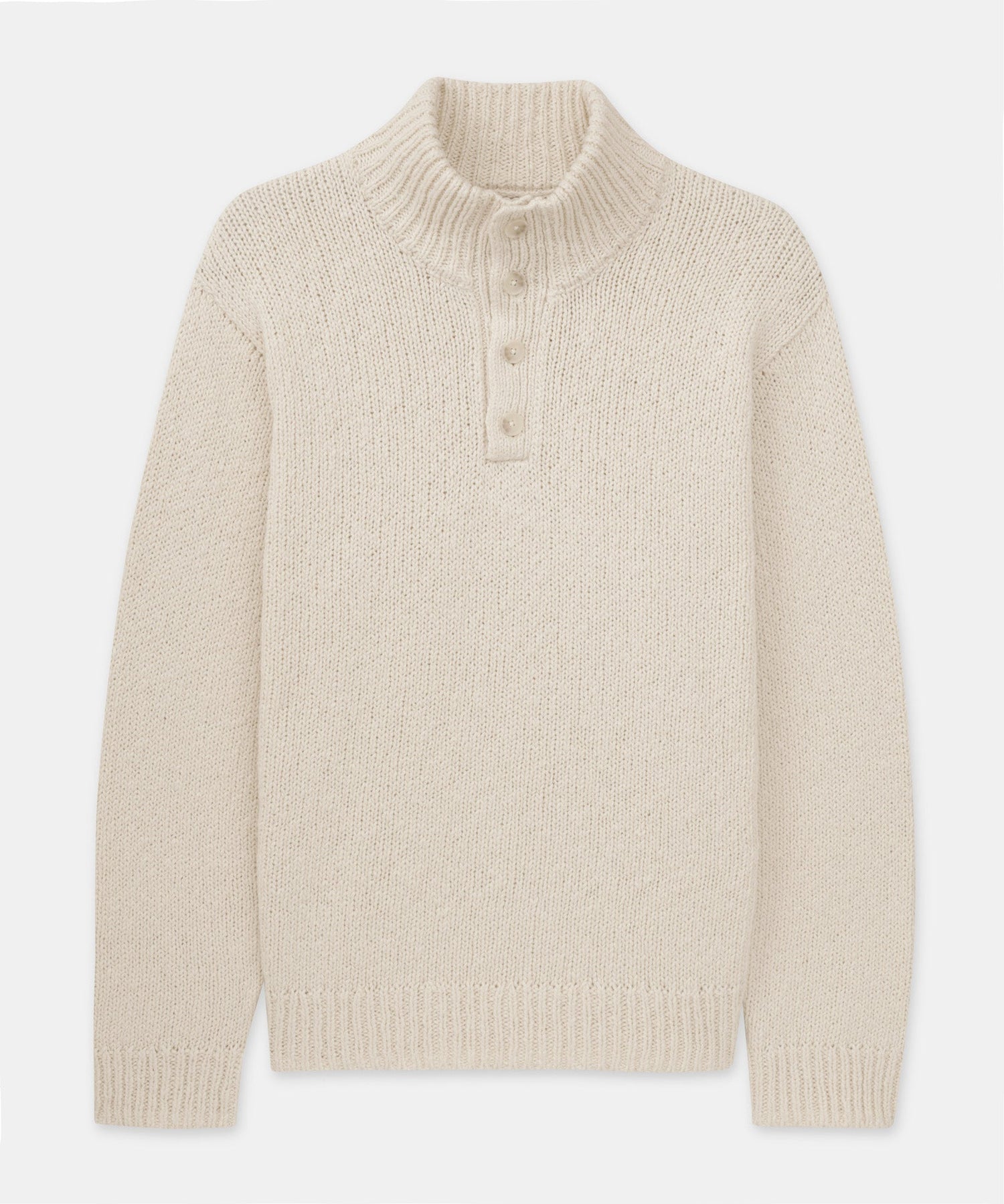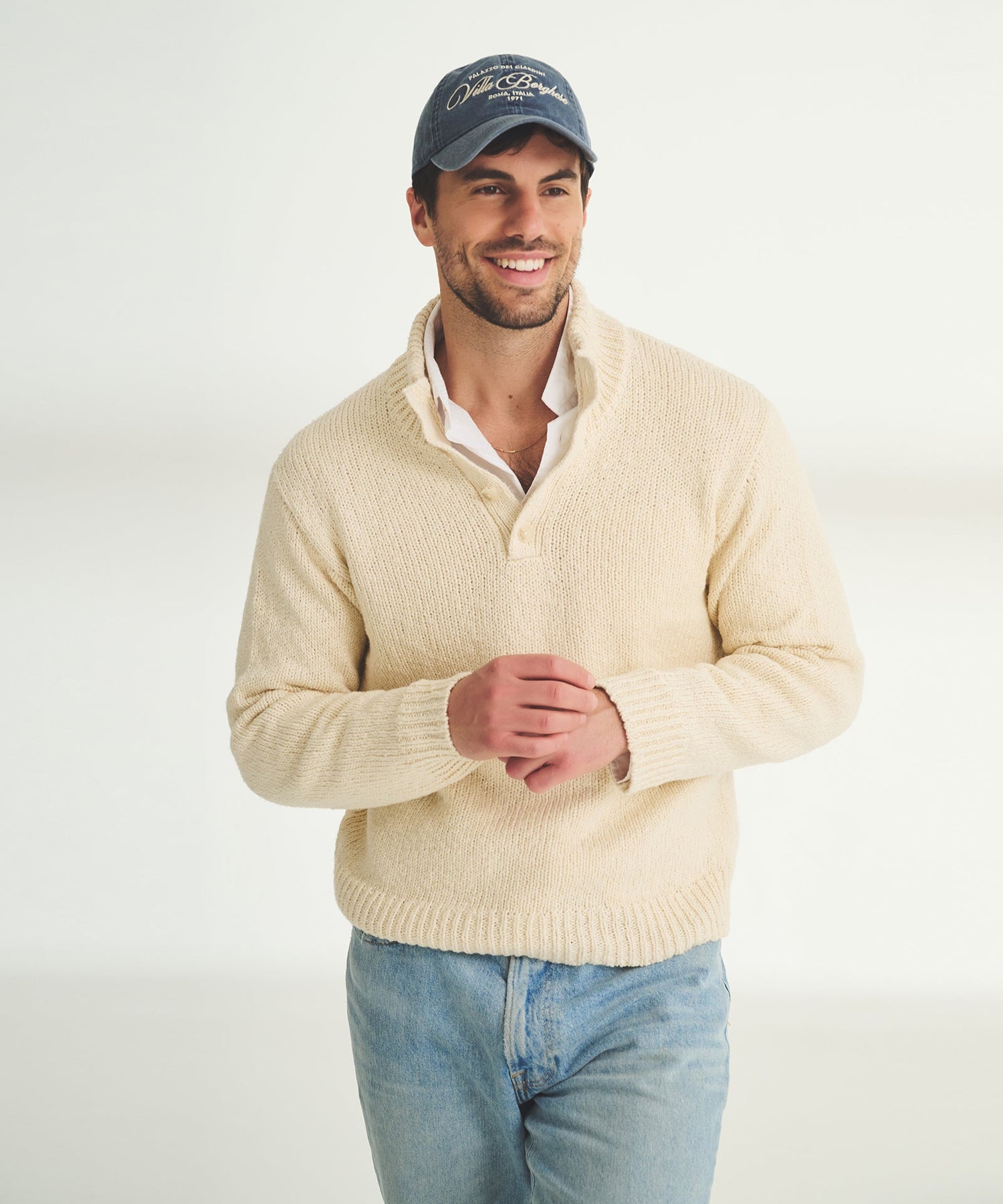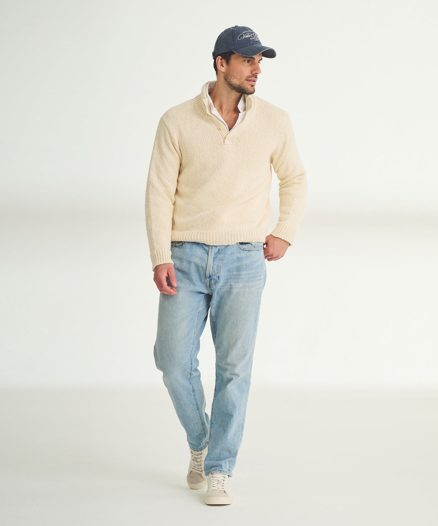 Coastal coded. This refined quarter-button sweater elevates relaxed style with premium Organic Tanguis cotton. The chunky texture and breathable knit make it perfect for summer nights or year-round layering. Classic fit keeps it effortlessly sophisticated.