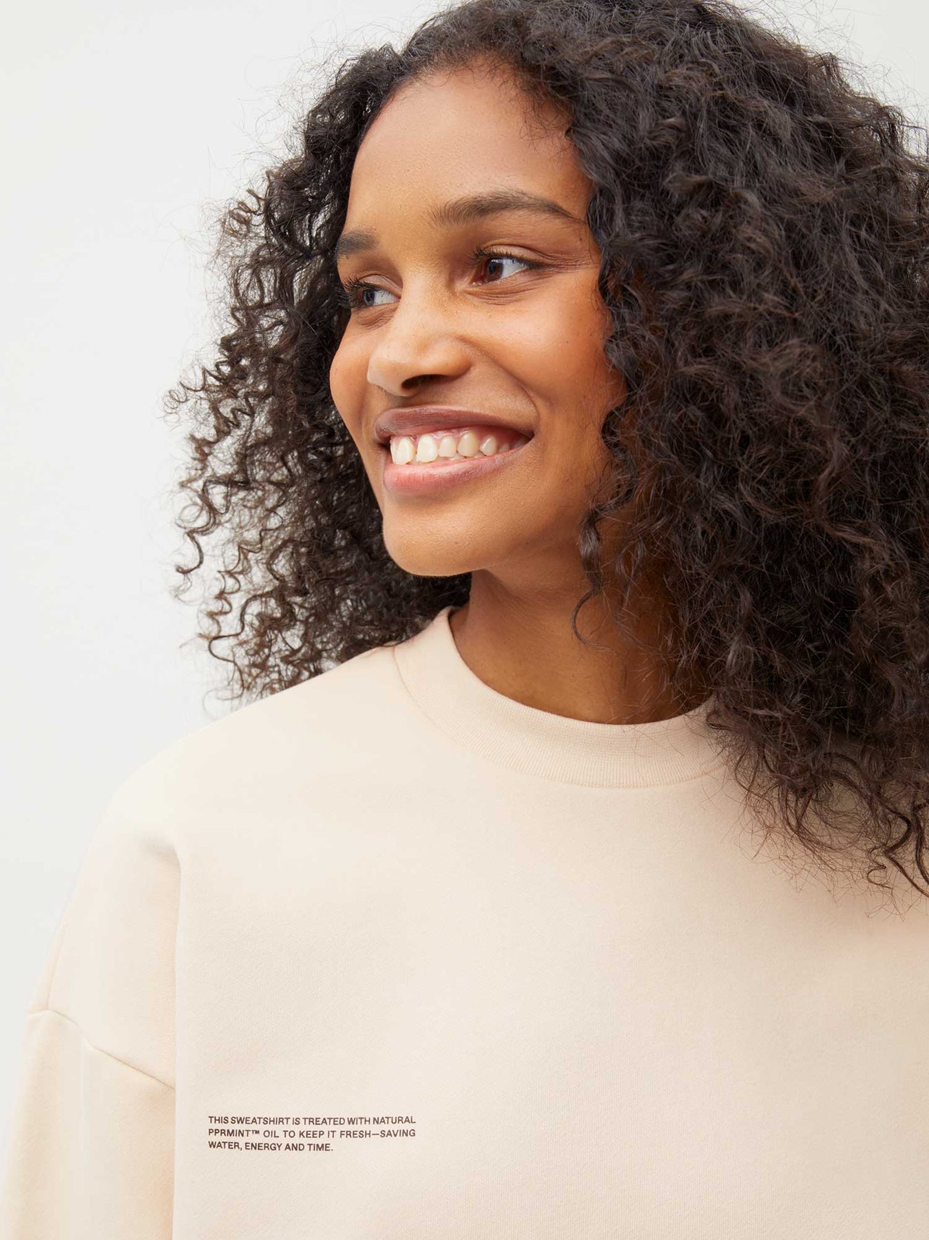 The ultimate everyday essential. Expertly crafted from 320 GSM organic cotton, the 365 Midweight Sweatshirt in sand offers an ultra-soft feel, an oversized fit and a genderless silhouette that holds its shape. Designed for year-round wear, this versatile style was treated with PPRMINT™ oil to help keep it fresher for longer.