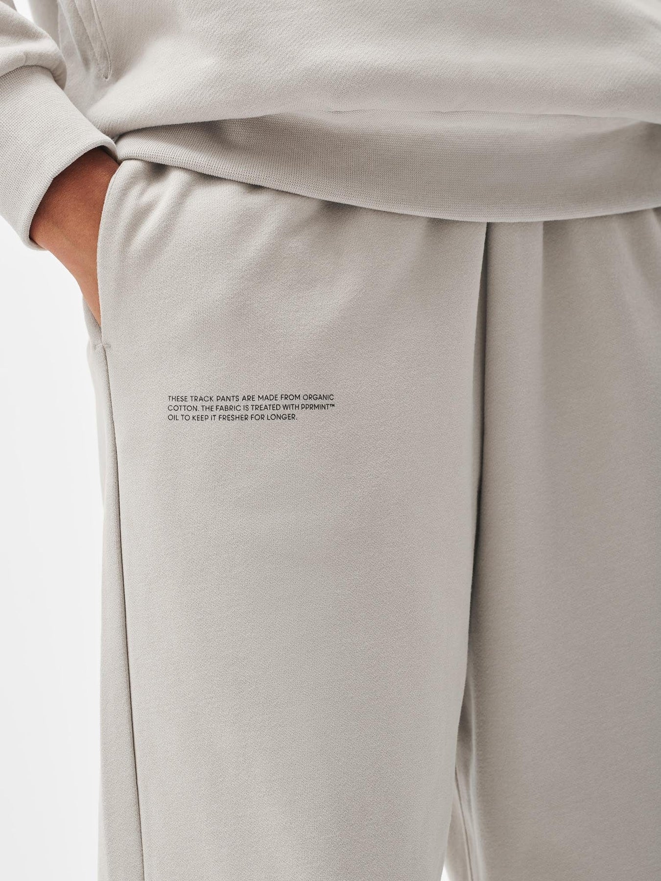 For everyday ease. Expertly crafted from 320 GSM organic cotton, the 365 Midweight Track Pants in stone offer a loose fit and a lightweight feel. Designed to be worn year-round, this seasonless staple was treated with PPRMINT™ oil to help keep it fresher for longer.