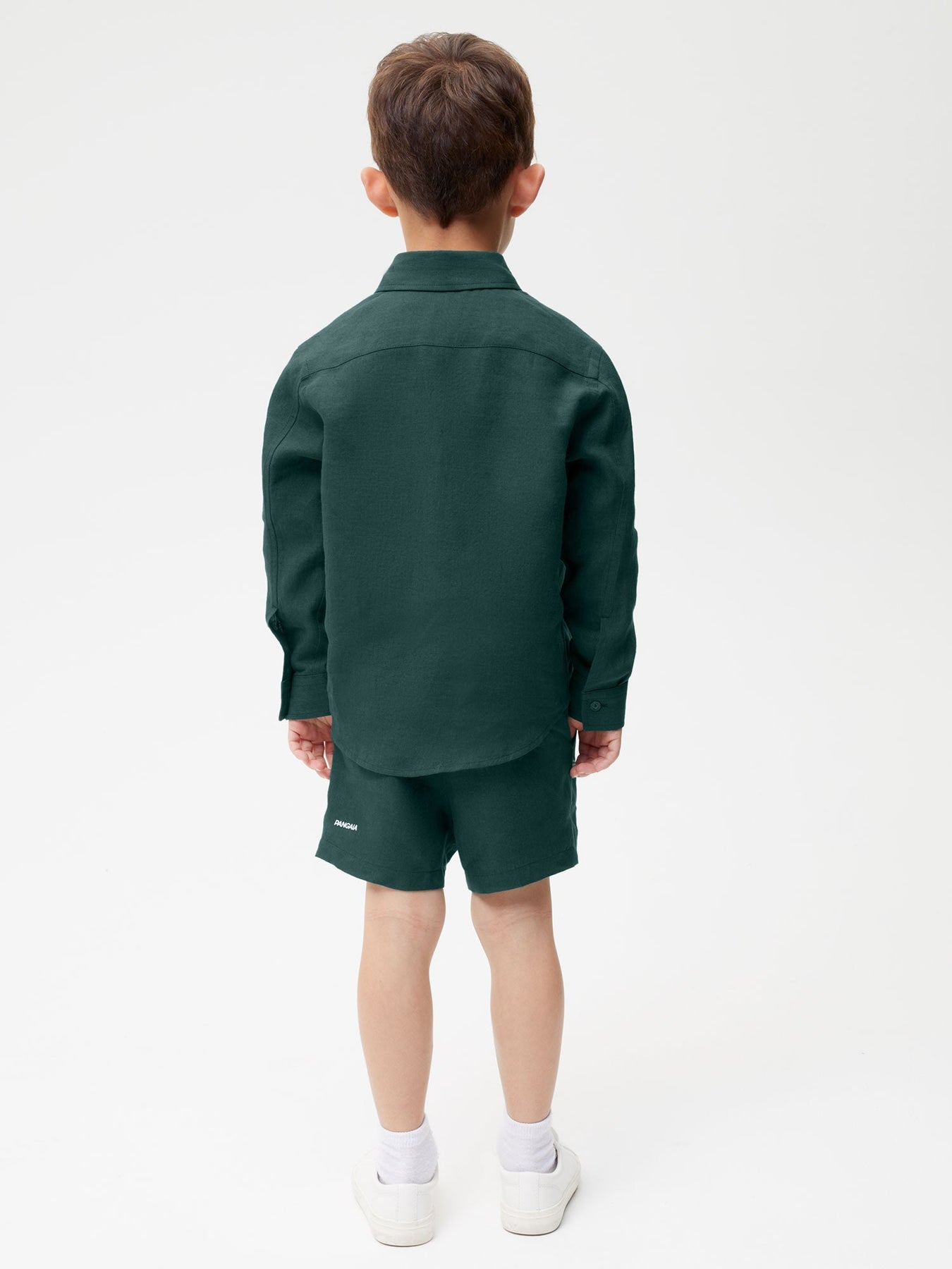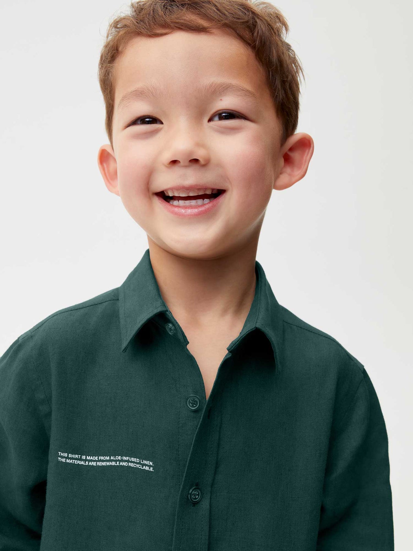 THIS KIDS' LONG SLEEVE SHIRT IS MADE FROM 100% ORGANIC LINEN. IT'S TREATED WITH ALOE VERA OIL FOR A SOFTER FEEL THAT'S LESS PRONE TO CREASING.