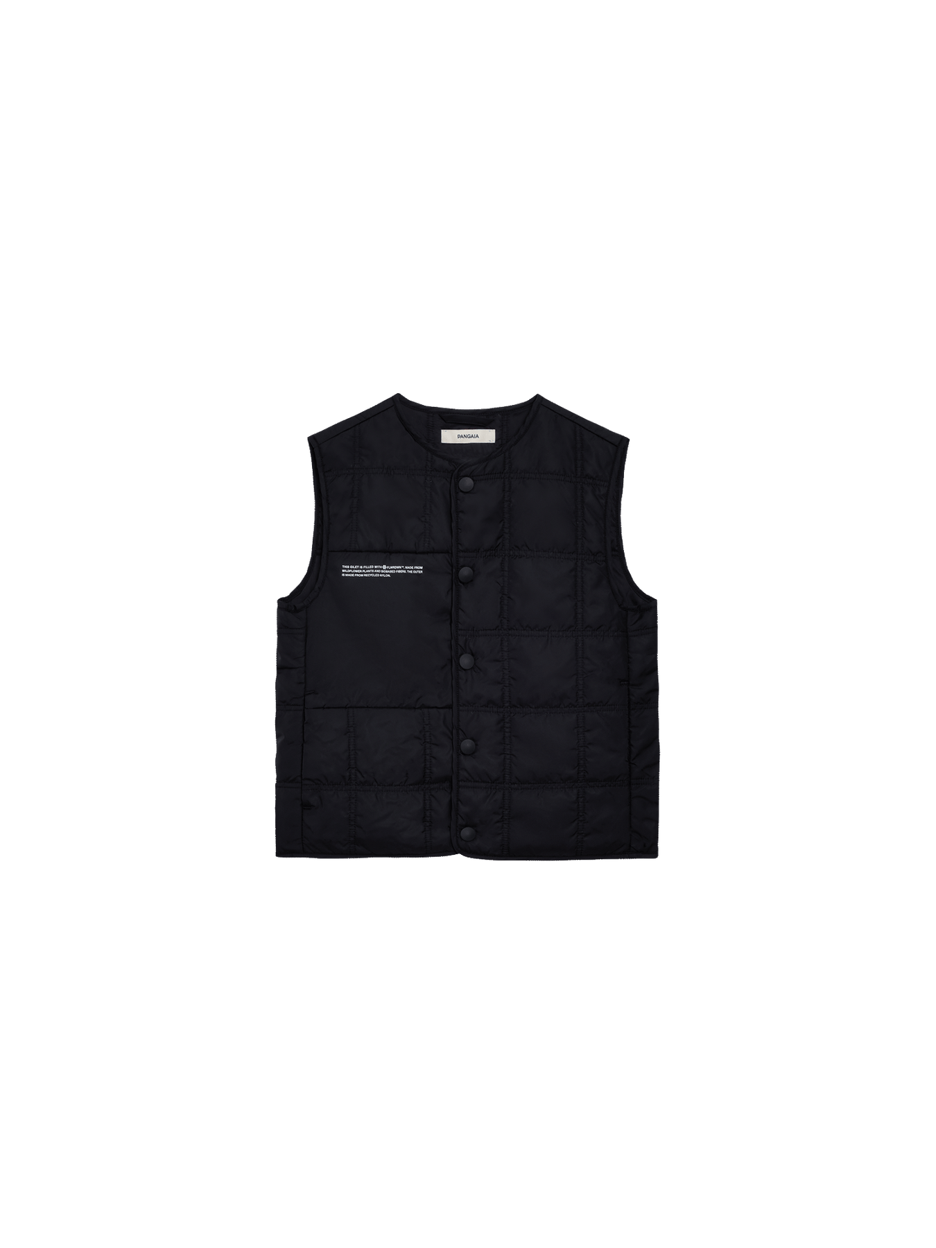 THIS KID’S QUILTED GILET IS MADE WITH FLWRFILL™, A BREAKTHROUGH WADDING CREATED USING WILDFLOWERS, LYOCELL AND A BIOPOLYMER. THE SMOOTH, MATTE AND QUILTED OUTER SHELL IS 100% RECYCLED NYLON.