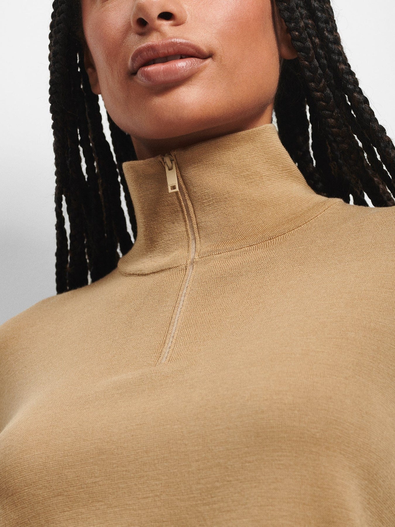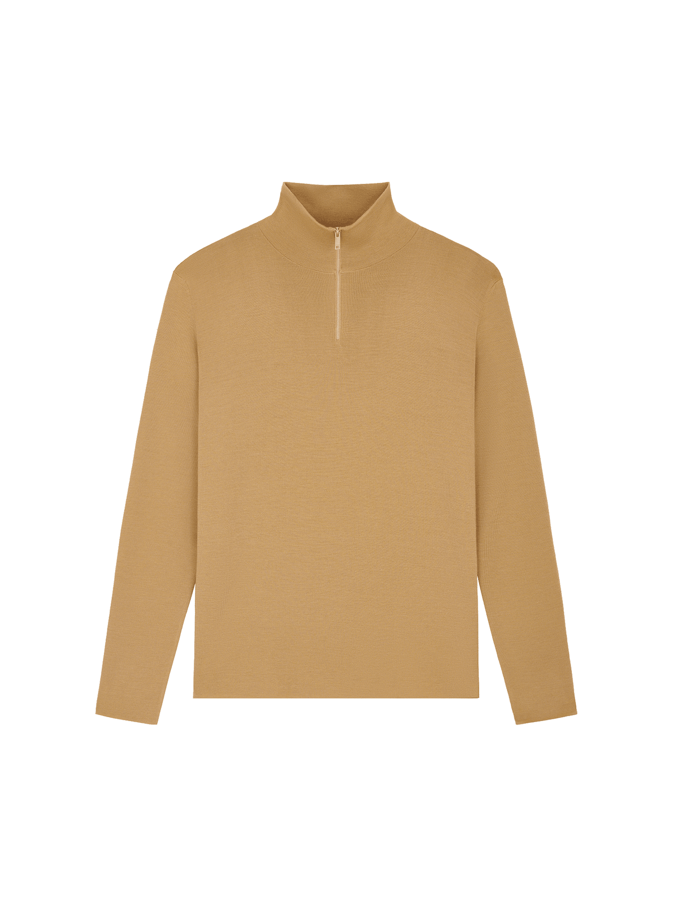 ELEVATE YOUR COLD-WEATHER WARDROBE WITH THE PANGAIA REGENERATIVE MERINO WOOL HALF-ZIP SWEATER IN CAMEL. MADE FROM NATIVA™-CERTIFIED REGENERATIVE MERINO WOOL, THIS SWEATER COMBINES WARMTH, DURABLENESS, AND STYLE IN ONE VERSATILE PIECE.