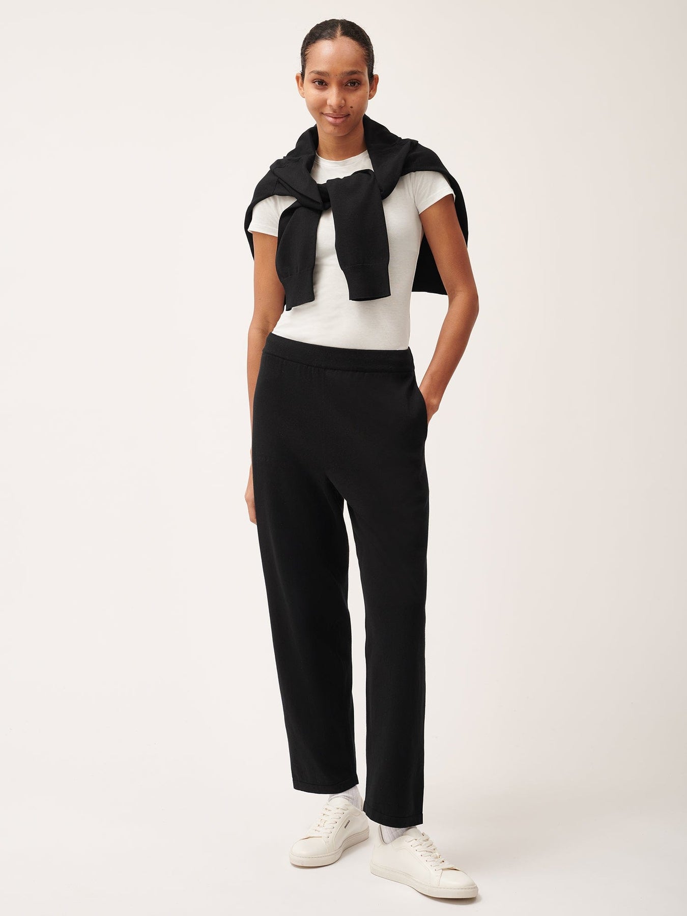 THE PANGAIA DNA KNITTED STRAIGHT-LEG TRACK PANTS IN BLACK COMBINE COMFORT WITH A SLEEK, MODERN DESIGN. THESE TRACK PANTS OFFER A RELAXED FIT WITH A SOPHISTICATED KNITTED FINISH, MAKING THEM PERFECT FOR BOTH LOUNGING AND CASUAL OUTINGS.