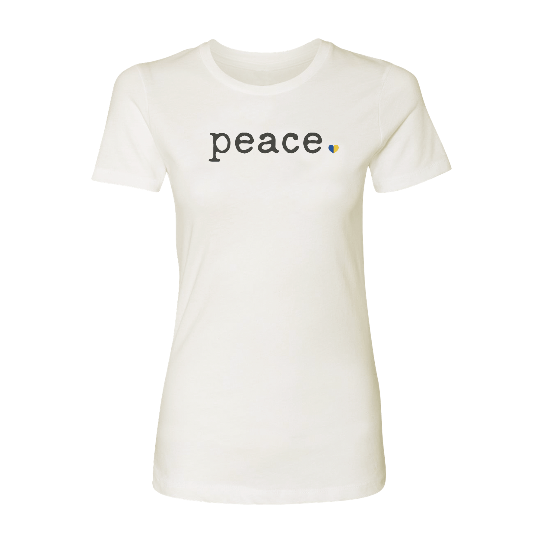 Our organic ivory "Peace" tee has a womens, tapered waist fit. 100% certified organic cotton, soft and comfy. 100% organic cotton