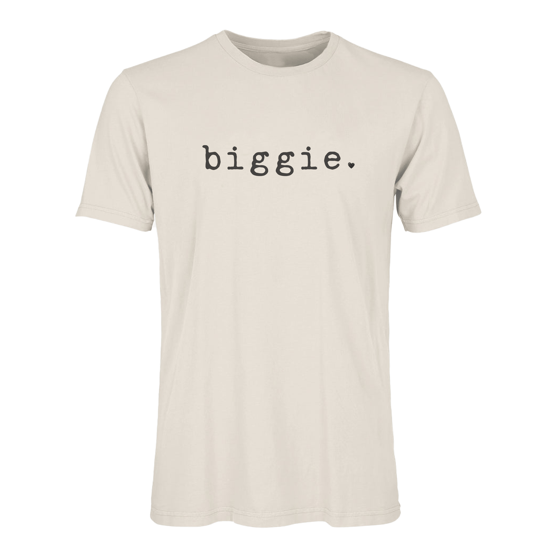 Dad's new favorite tee shirt! Our organic ivory "Biggie" tee has a relaxed, unisex fit. 100% certified organic cotton, soft and comfy. Celebrate the entire family with our fun matching family tee's.