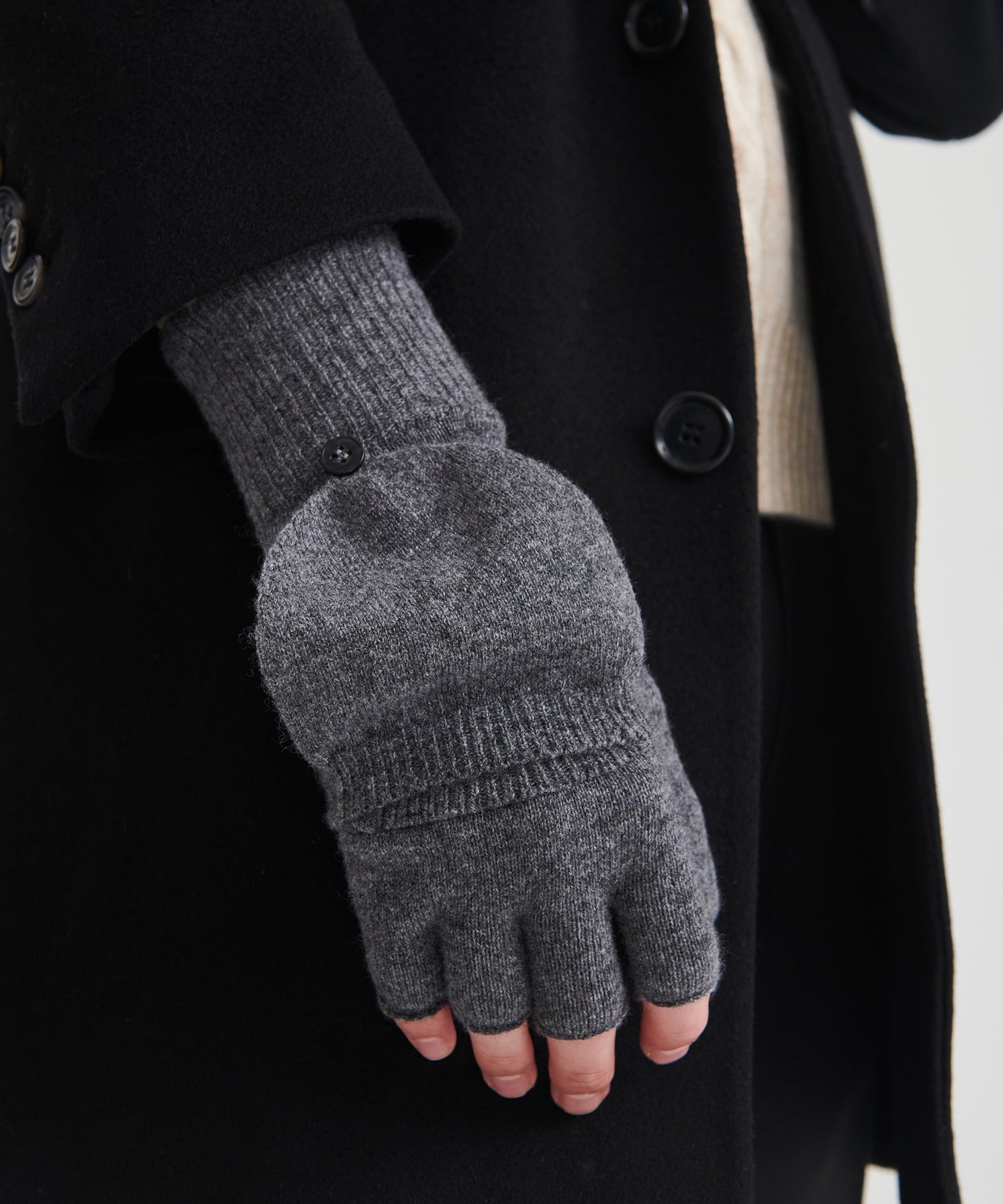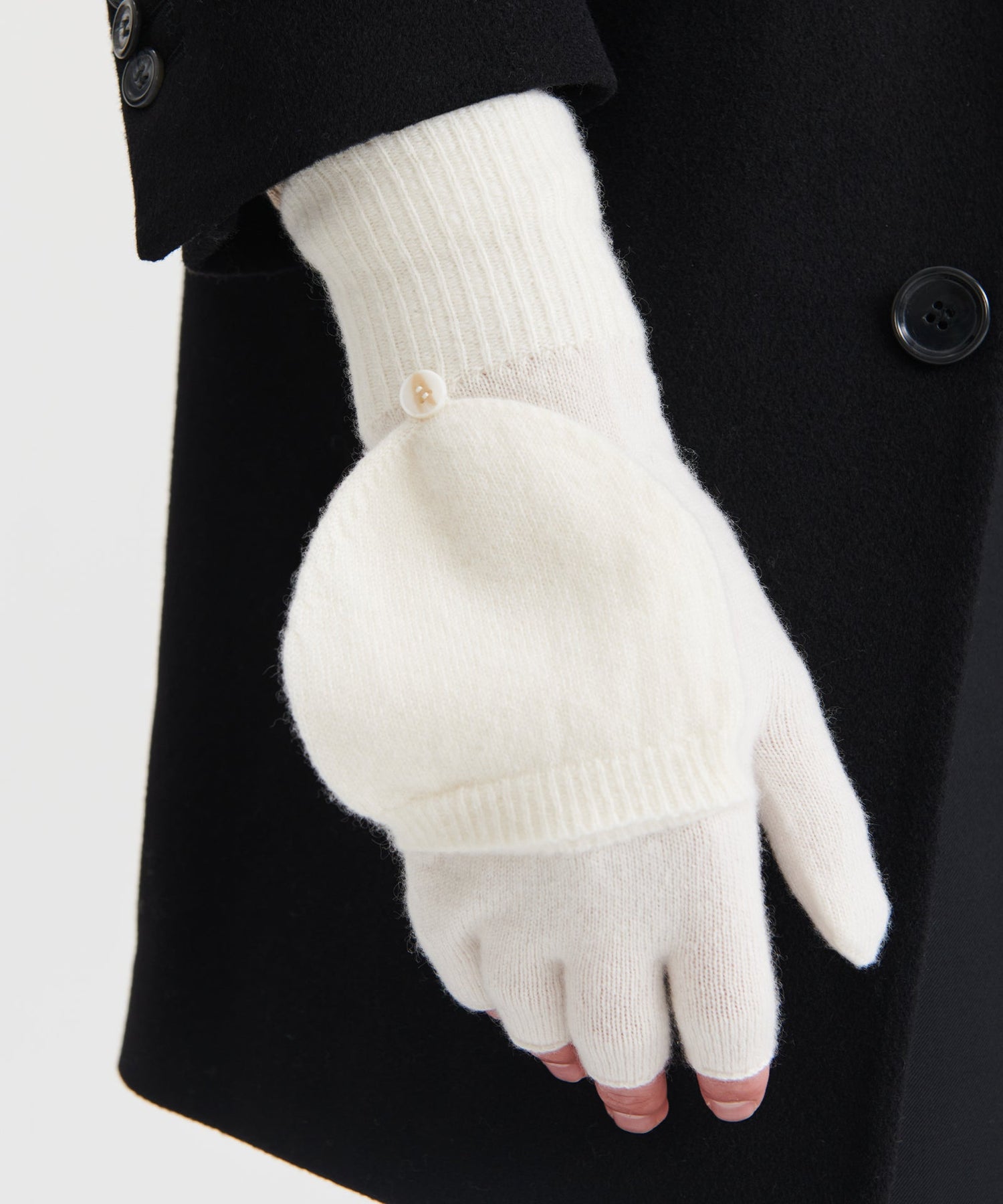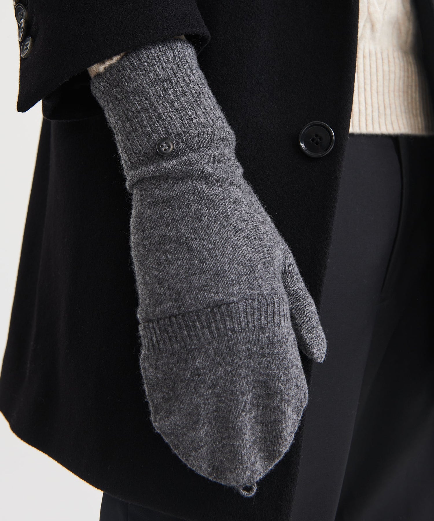 The Cashmere Pop Top Gloves are a multi-functional winter accessory with a fingerless glove base, mitten hood, and ribbed wristbands. Crafted from 100% premium, sustainable cashmere.