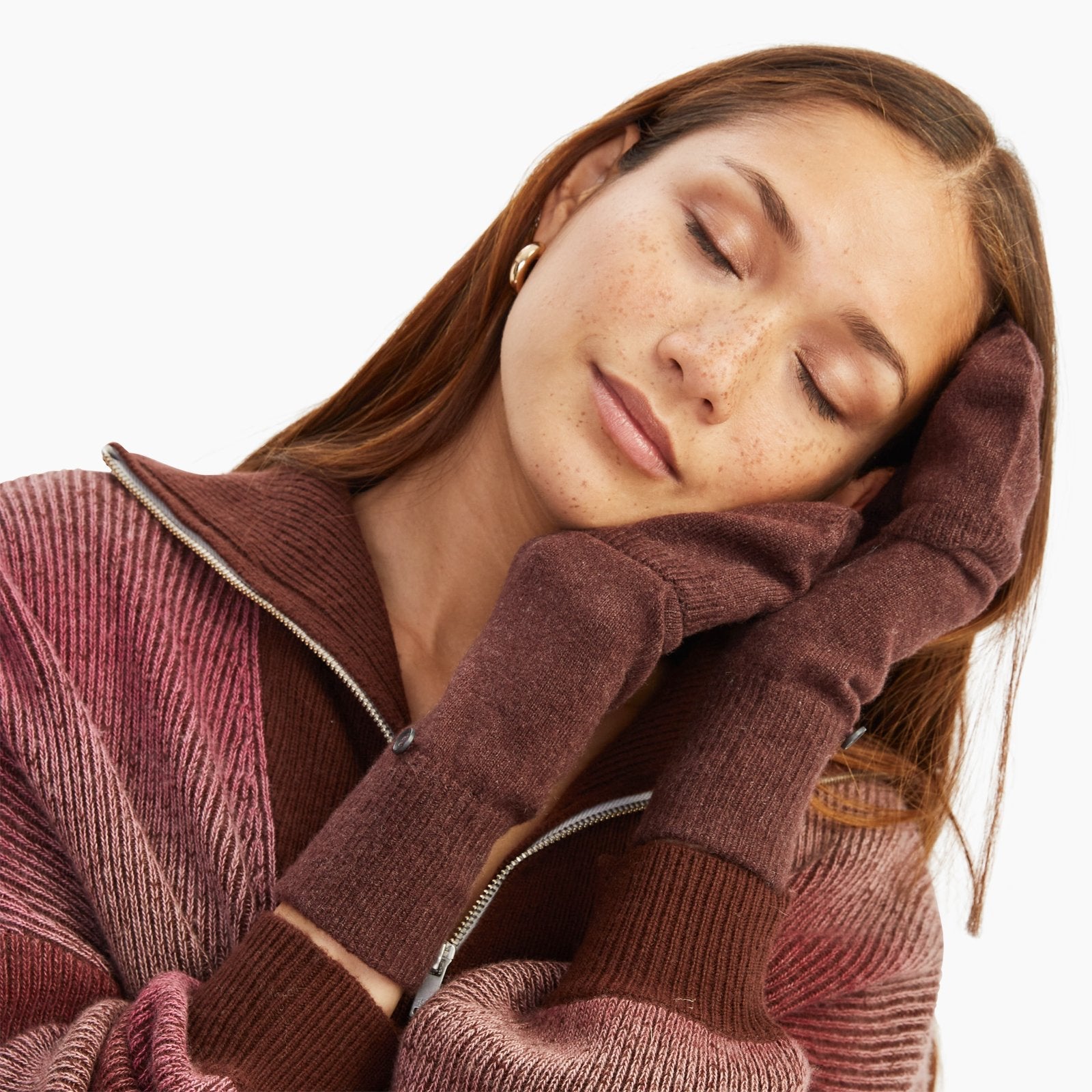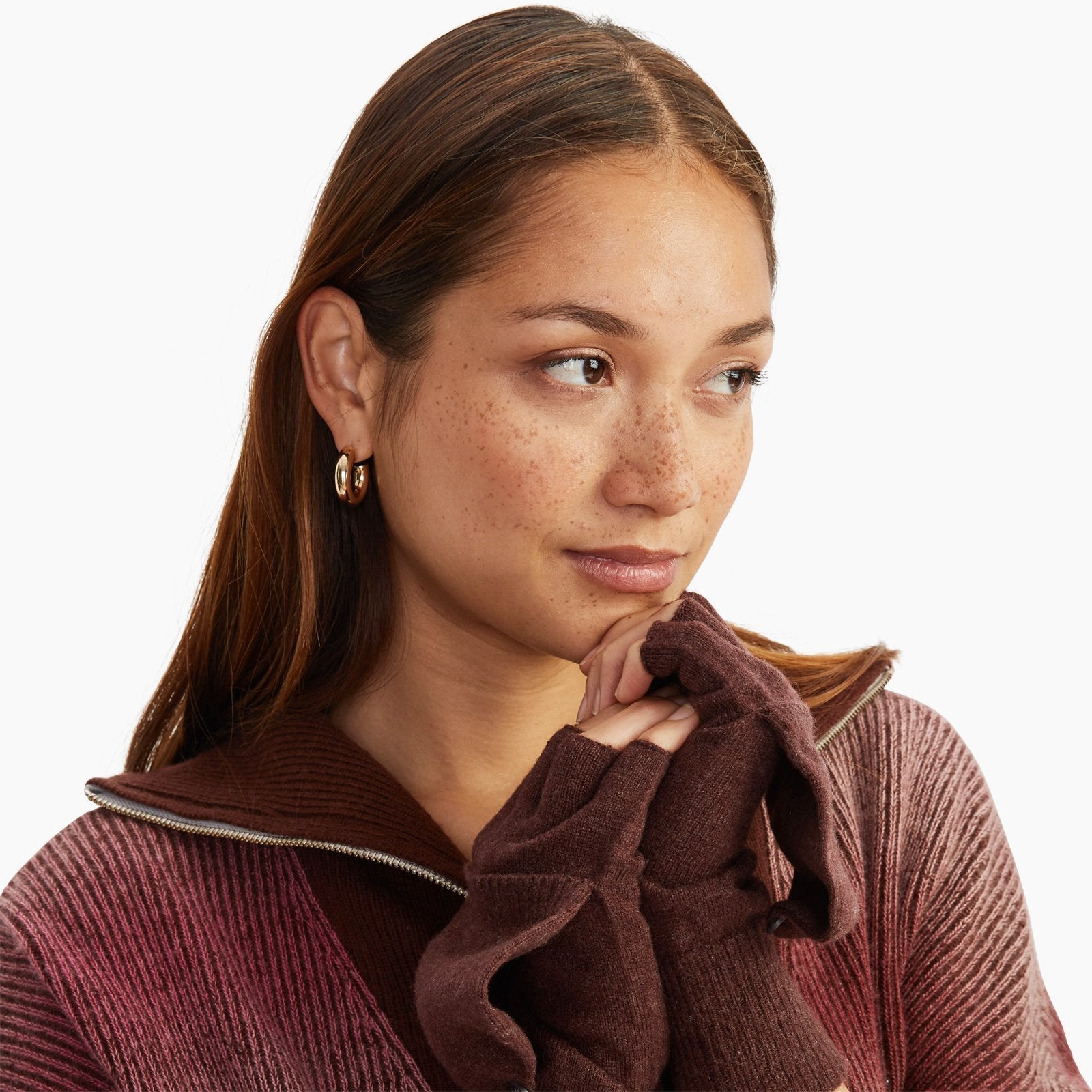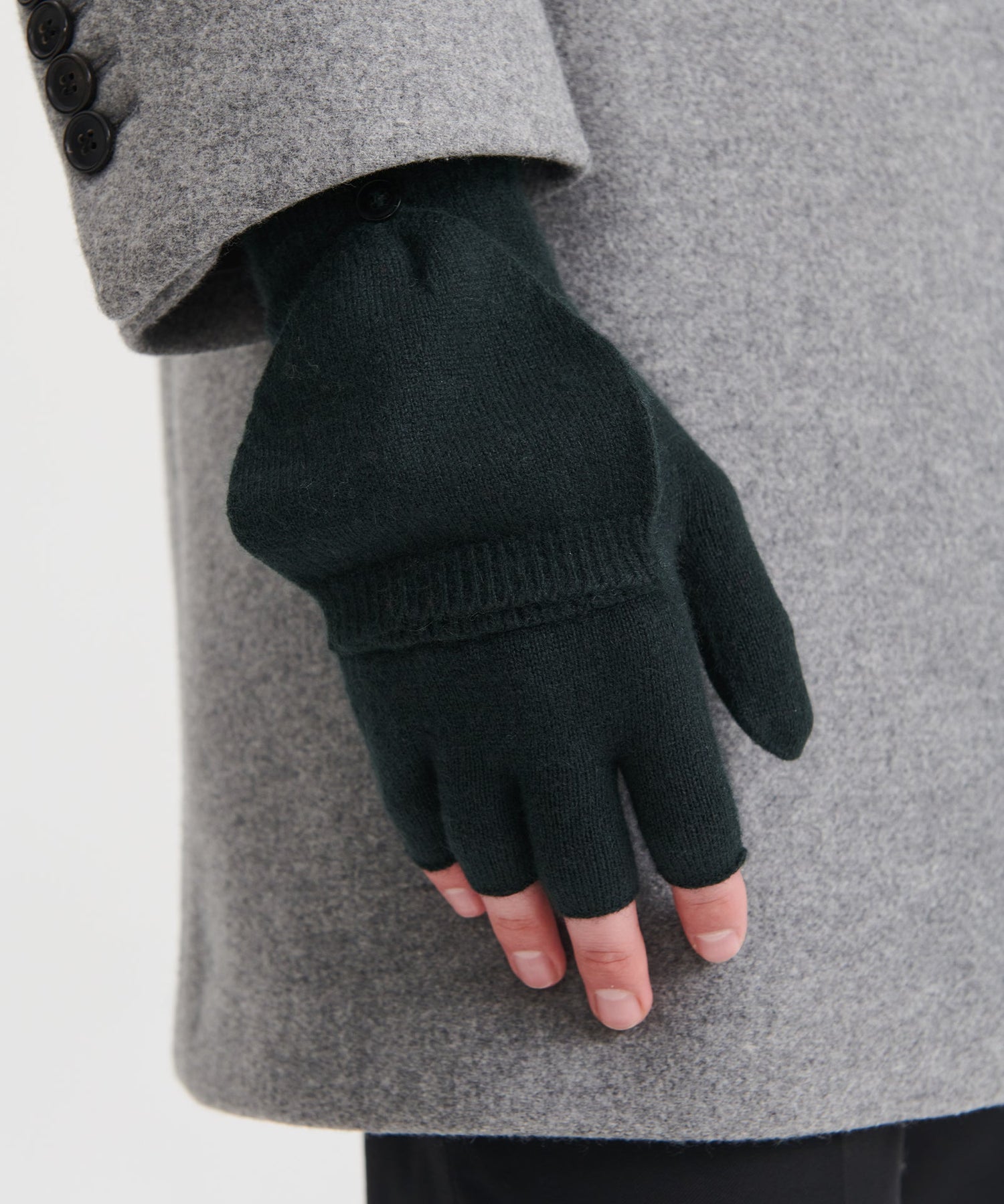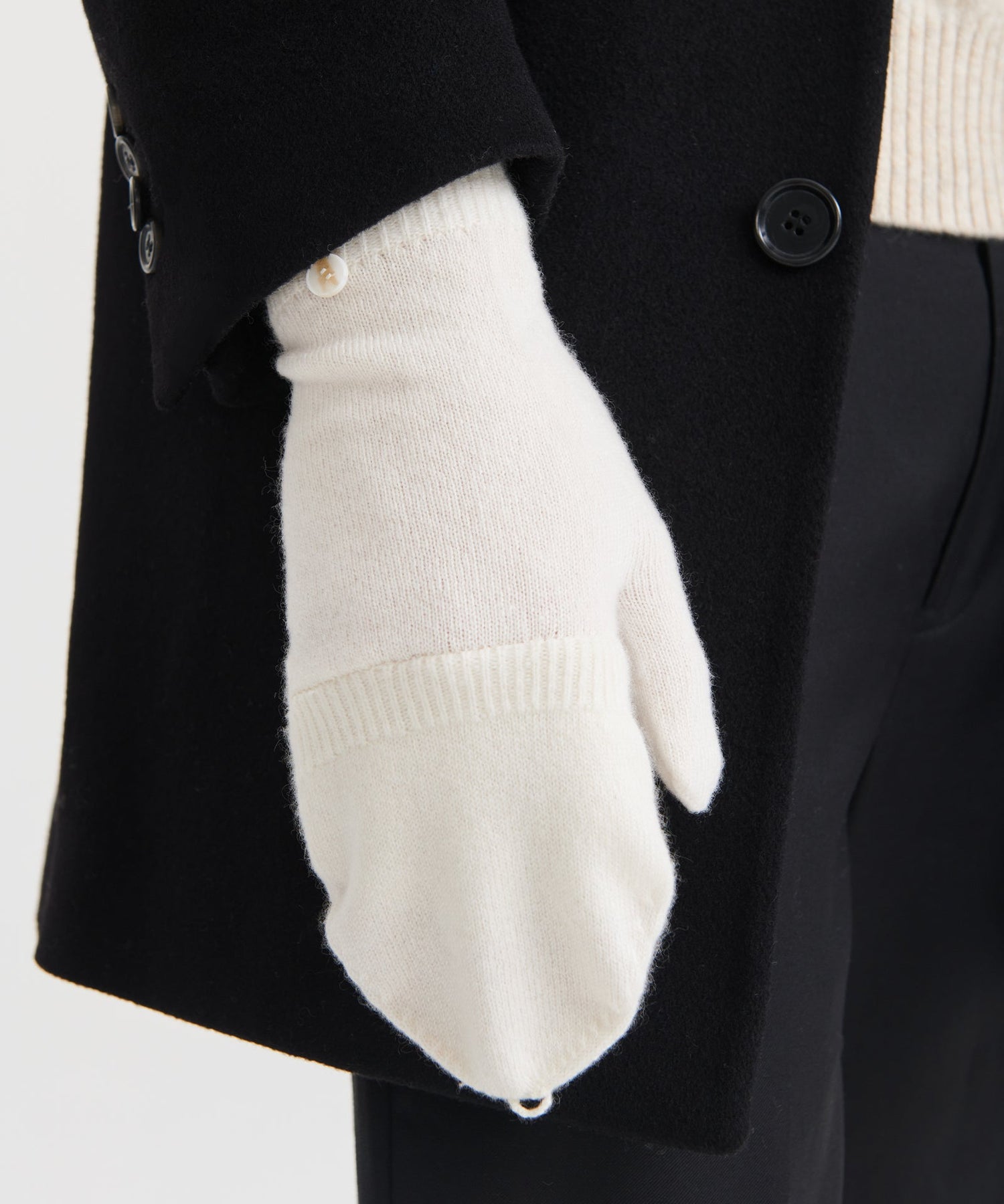 The Cashmere Pop Top Gloves are a multi-functional winter accessory with a fingerless glove base, mitten hood, and ribbed wristbands. Crafted from 100% premium, sustainable cashmere.