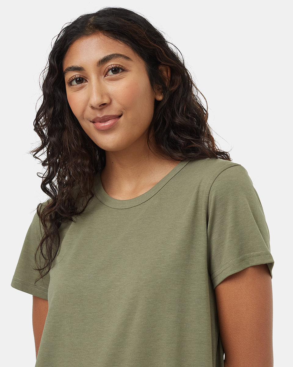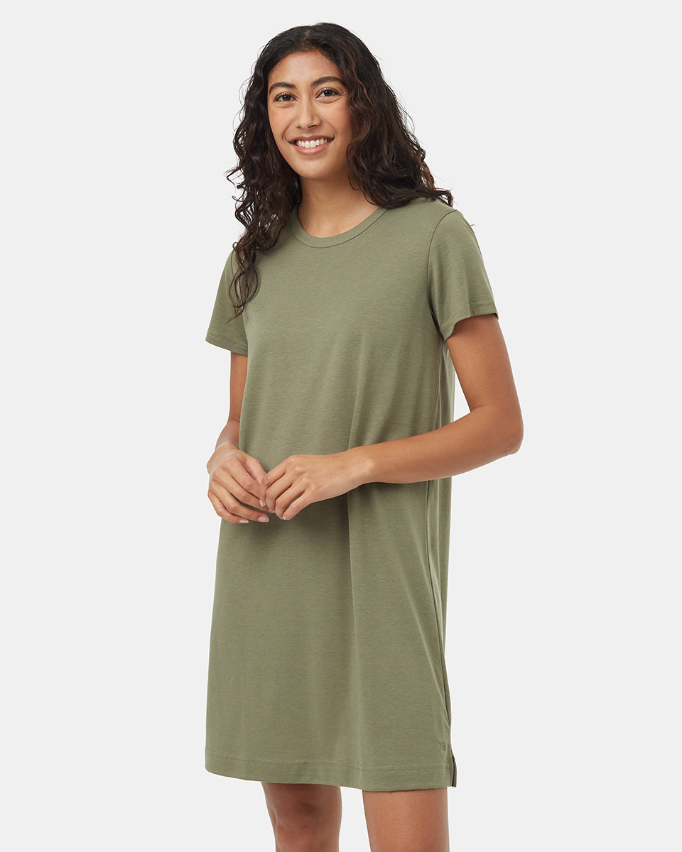 This silky soft TreeBlend T-Shirt Dress uses naturally sourced fibres that offer a flattering fit and barely-there feel. Plus, they use way less water and chemicals to produce.