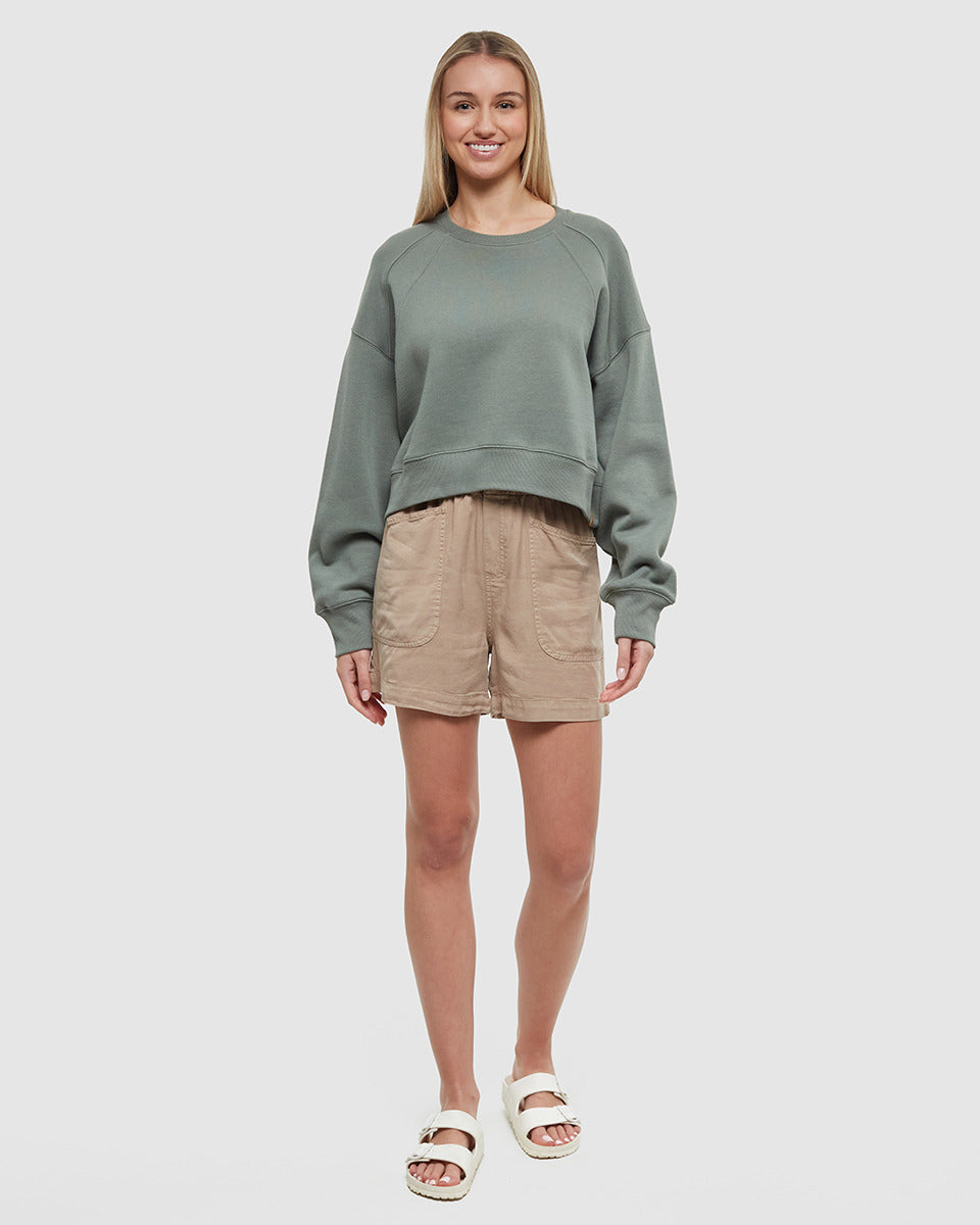 Hello, high-waisted anything, meet your new bestie. Featuring an oversized fit and cropped length, don’t be surprised when you find yourself reaching for this crew more often than not.