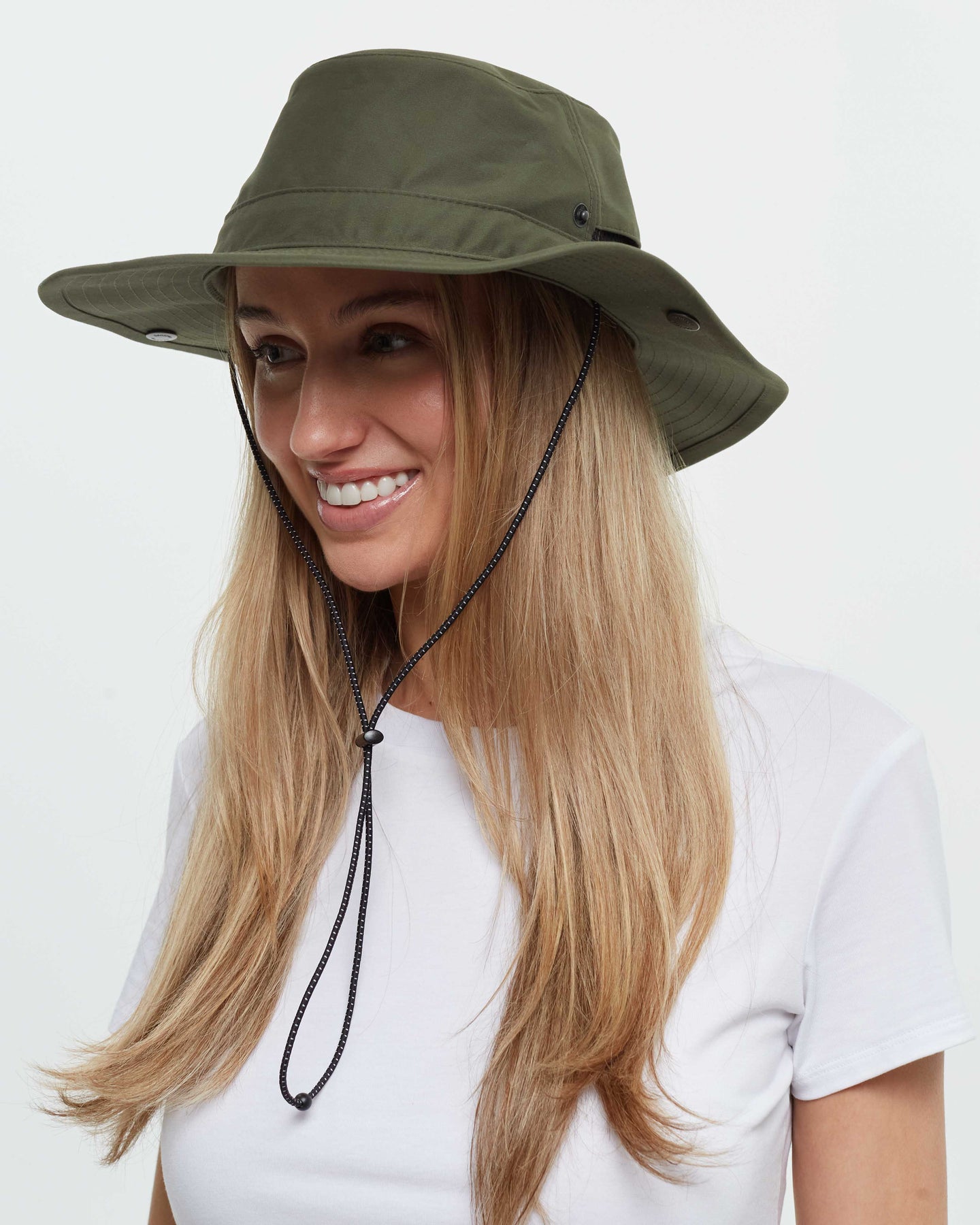Wander off the beaten path. This trail-trekking secret weapon not only shelters you from nature's surprises with a wide brim and DWR finish, but also offers built-in ventilation through mesh panels.