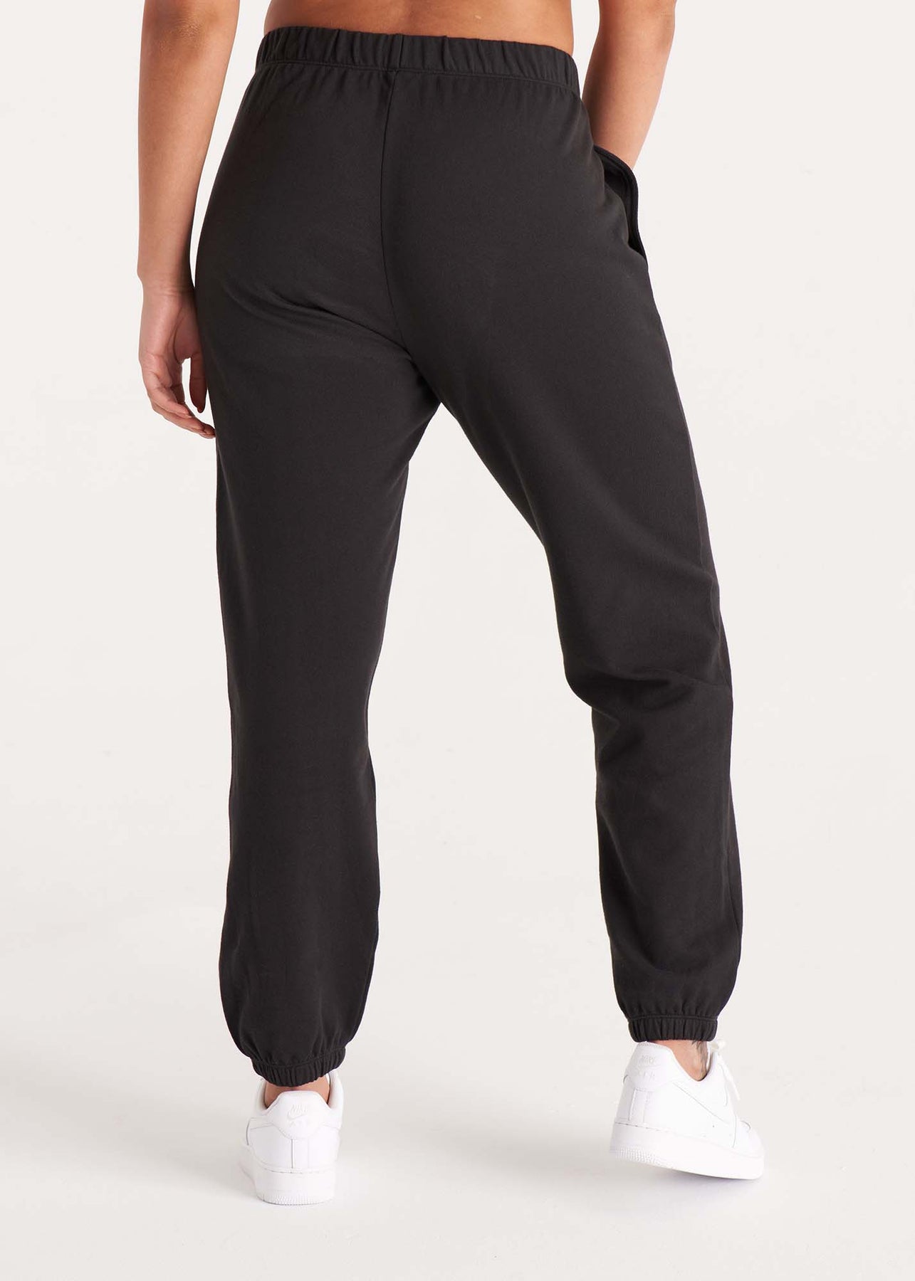 Your new go-to for relaxation. These high-rise women's sweatpants feature an interior drawcord, elastic waistband, and side pockets for comfort and function. Made in Los Angeles from ultra-soft organic and recycled cotton French Terry, they're sustainably dyed, relaxed in fit, and effortlessly versatile - perfect for lounging or casual outings.