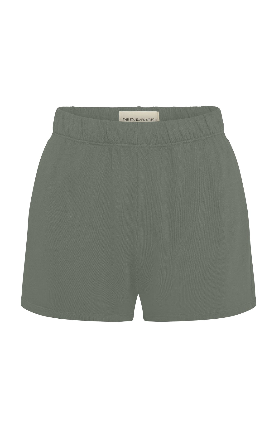 Flip out. These versatile women's sweat shorts feature a high-rise elastic waist you can wear up or folded over, plus interior drawcords for a customizable fit. With side pockets and a relaxed silhouette, they're crafted in Los Angeles from organic and recycled cotton French Terry and finished with eco-friendly dyes - soft, sustainable, and ready for lounging or laid-back days out.
