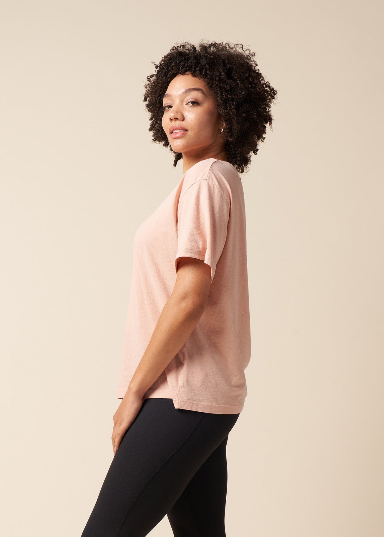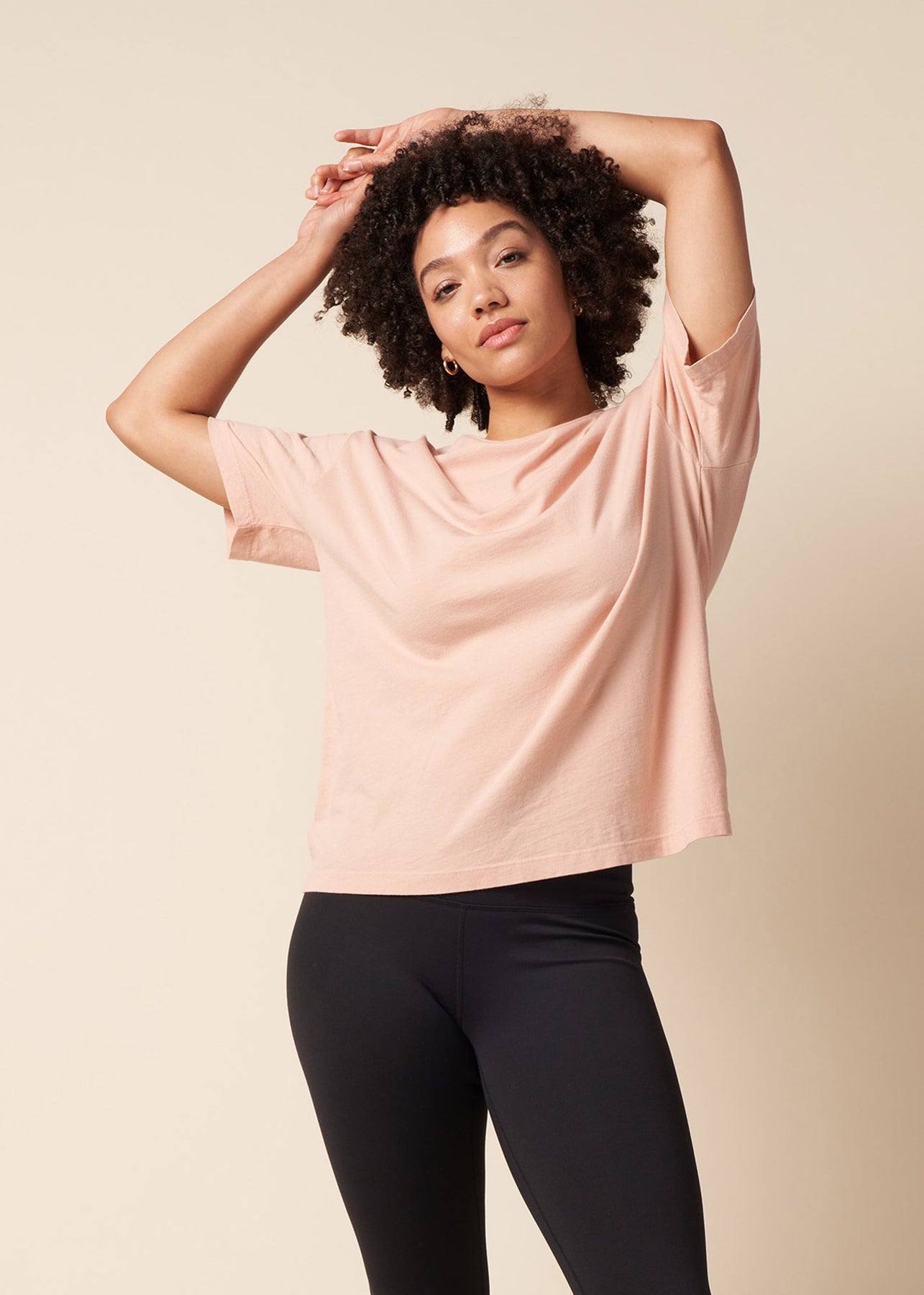On repeat. Our boxy crew is so versatile, it can’t be played out. Made with perfectly good cutting waste, otherwise destined for a landfill, and blended with the softest organic cotton - you’ll never guess this tee was made from scraps. The relaxed fit, drop shoulder, and generous length, is complete with a lived-in wash made from non-toxic and low impact dyes.