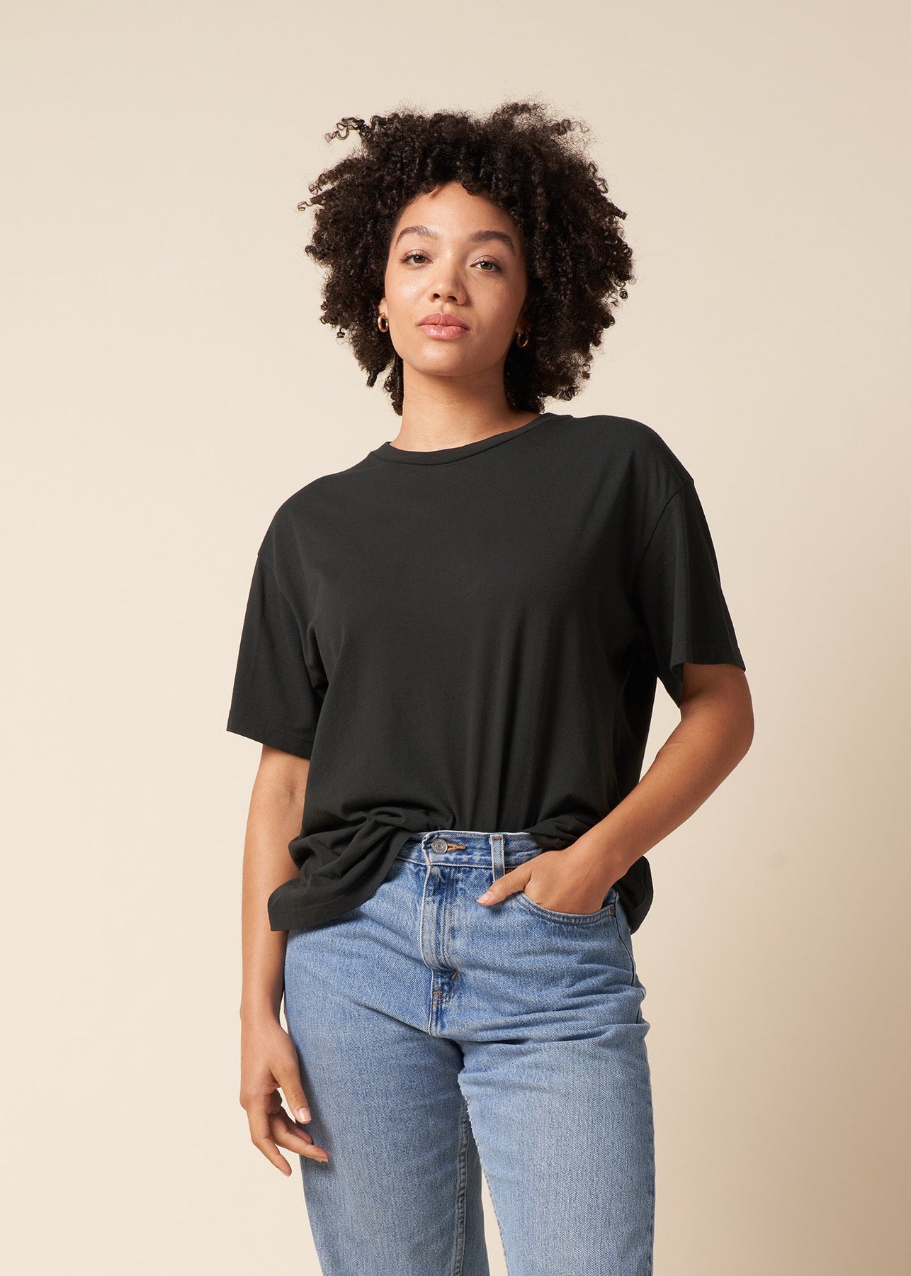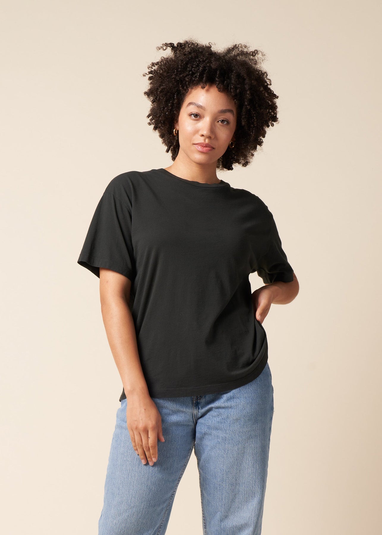 On repeat. Our boxy crew is so versatile, it can’t be played out. Made with perfectly good cutting waste, otherwise destined for a landfill, and blended with the softest organic cotton - you’ll never guess this tee was made from scraps. The relaxed fit, drop shoulder, and generous length, is complete with a lived-in wash made from non-toxic and low impact dyes.