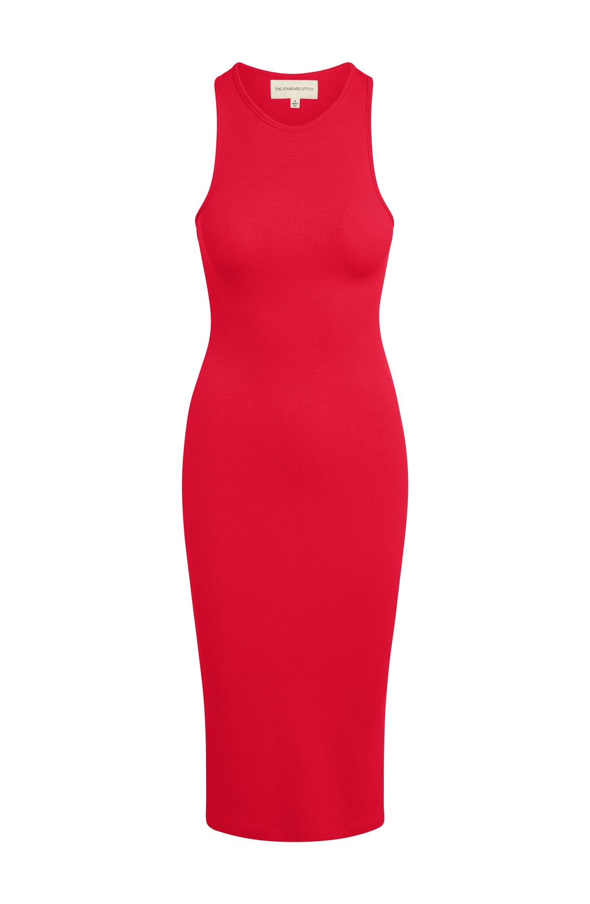 Our racerback midi blends style, comfort, and sustainability in one timeless piece. Made in Los Angeles from super soft, breathable Tencel™ Lyocell stretch rib knit, it features a bra-friendly racerback, flattering bodycon fit, and eco-friendly dyes. From casual days to parties and vacations, this versatile dress is made to move with you.