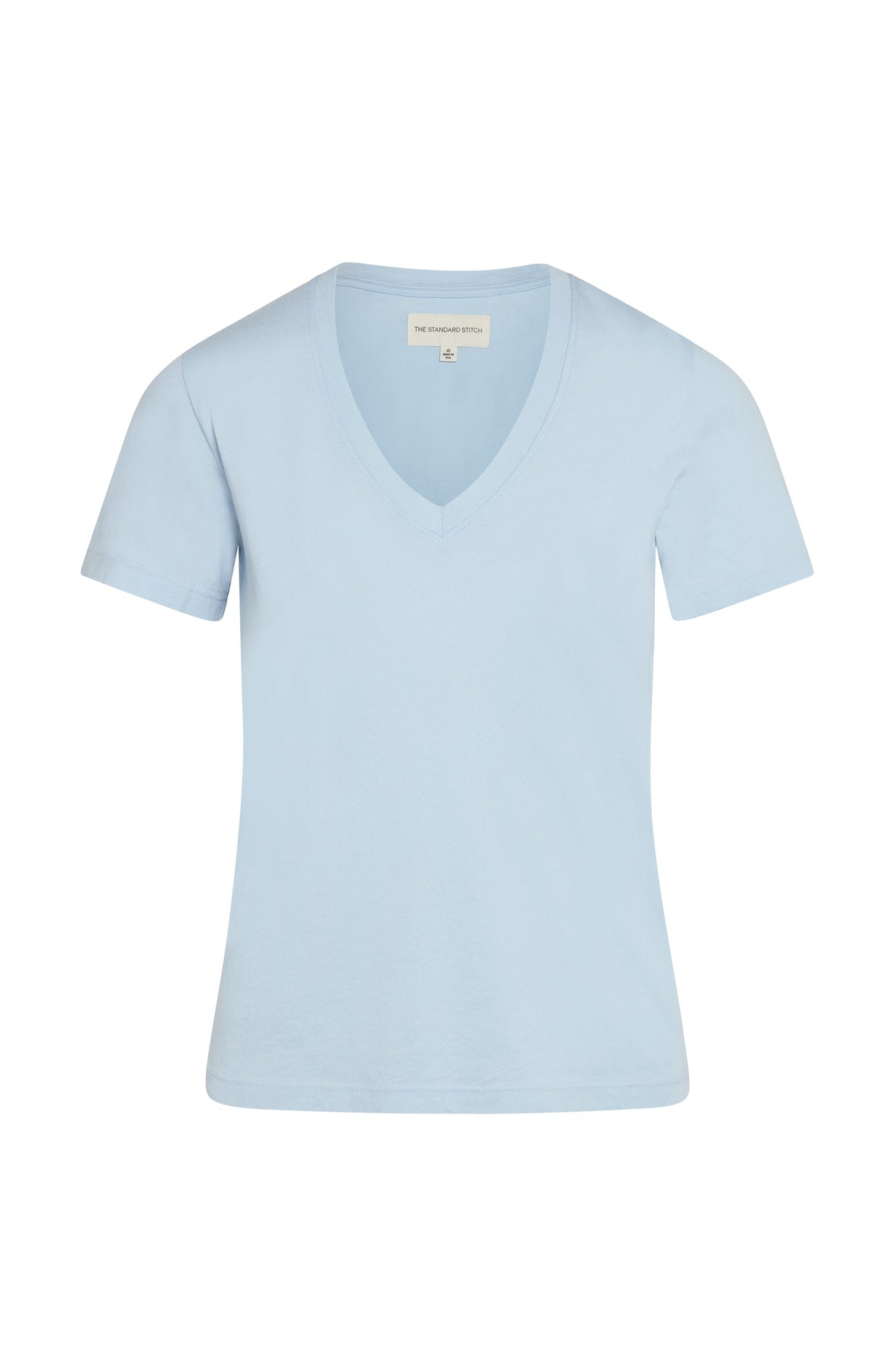 Raise the bar, lower your neckline. Crafted from a blend of organic and recycled cotton jersey, this women's tee offers unbeatable softness and a relaxed fit that complements every body. Short sleeves keep you cool, while eco-friendly dyes and ethical production in Los Angles make sure you look good while doing good.
