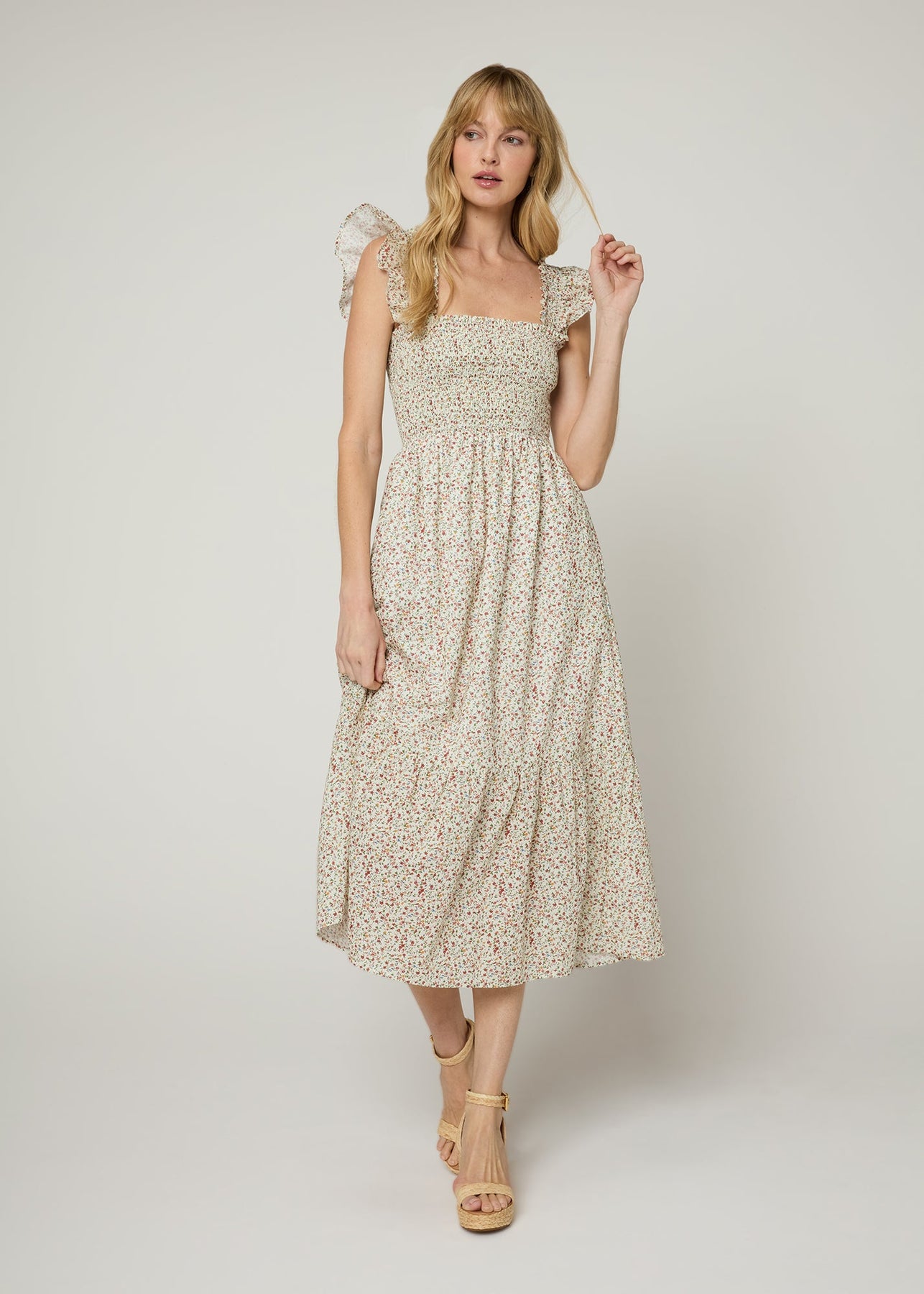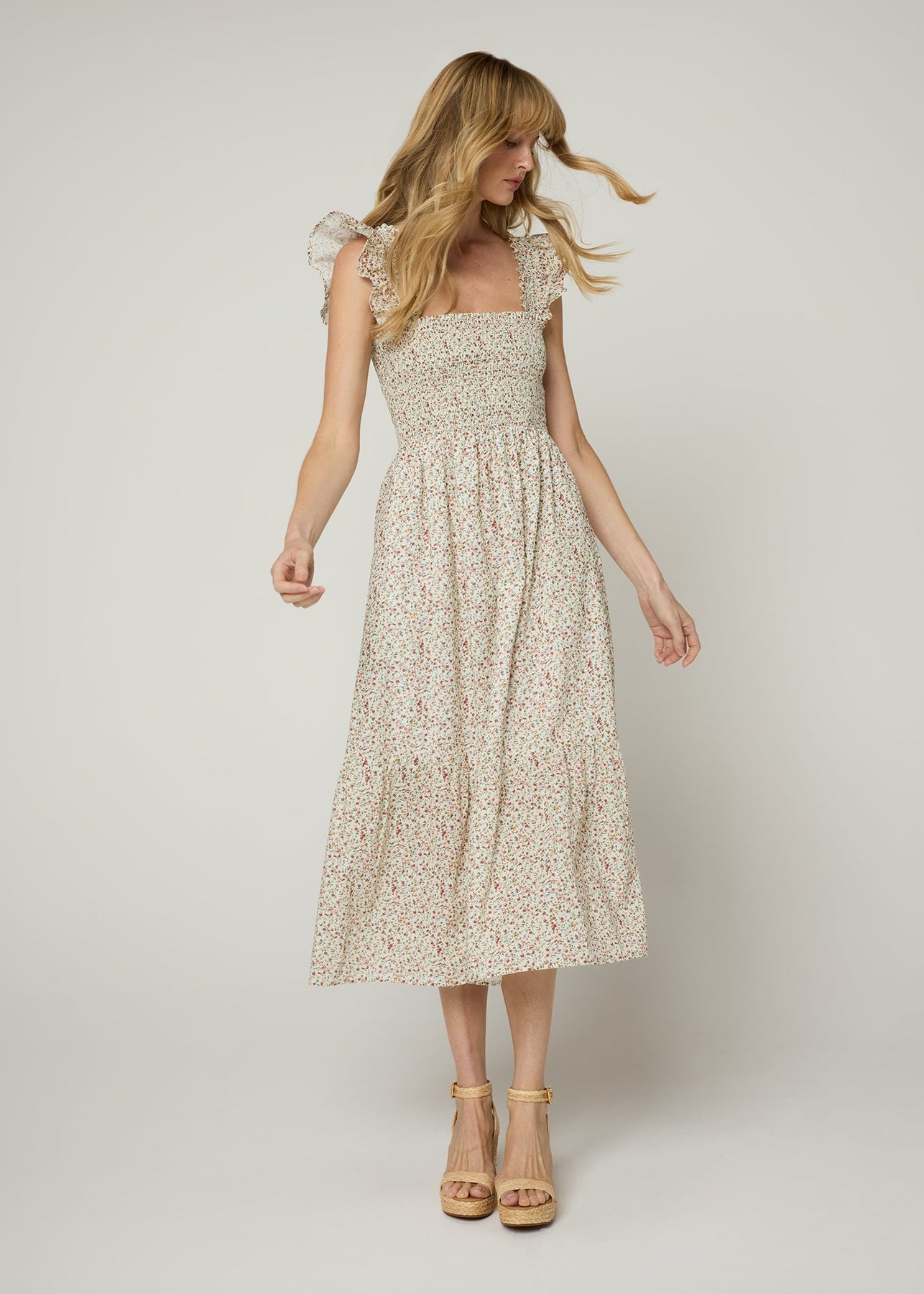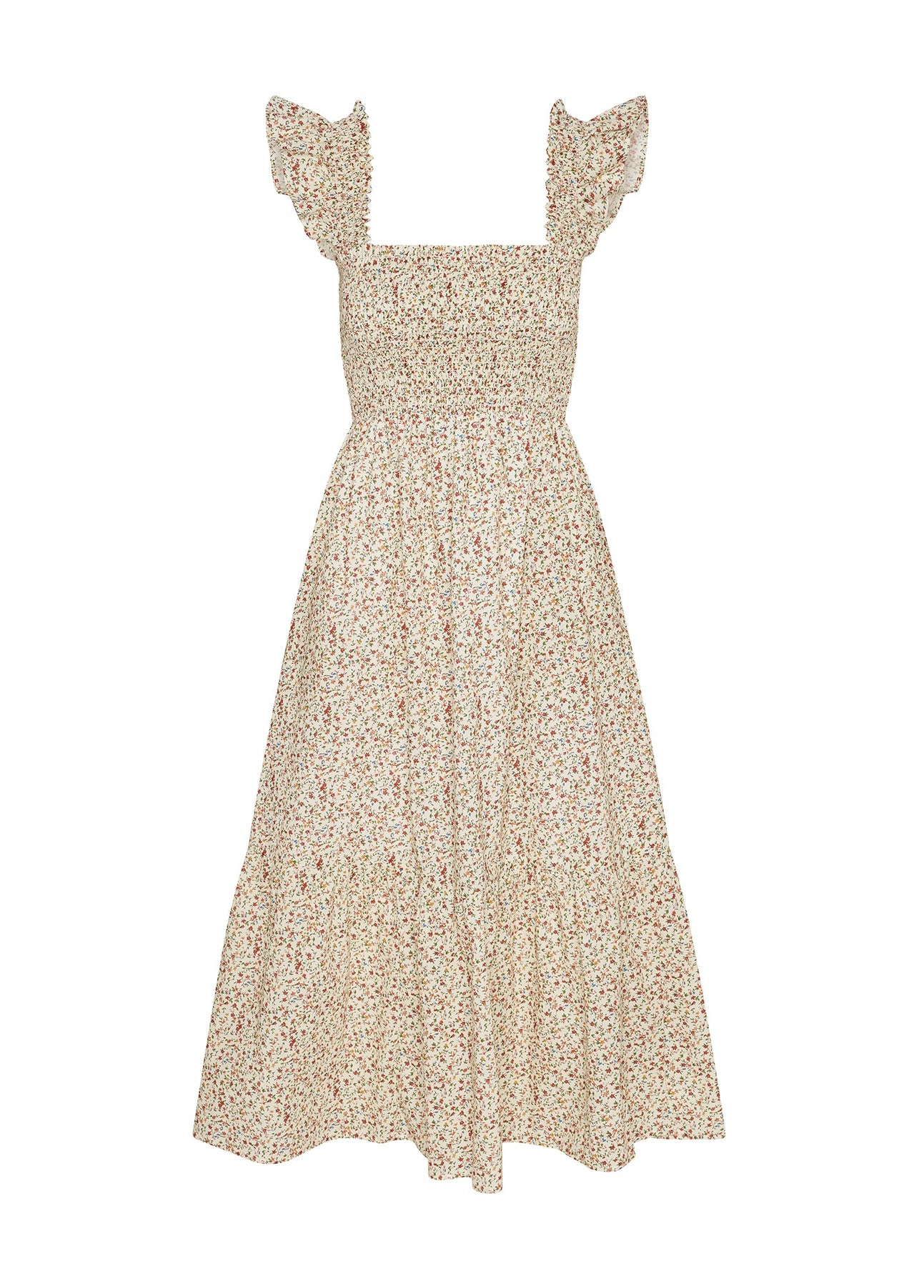 The Flounce Dress is where polish meets play. With fluttery smocked shoulders and a softly sculpted smocked bodice, it flatters without fuss. The elastic waist flows into a two-tier gathered midi skirt that moves with grace, whether you're heading to brunch or barefoot on the grass. Made from breathable deadstock cotton and partially lined in organic cotton, it’s the kind of piece that feels thoughtful in every way. Ethically crafted in Los Angeles, finished with hidden side pockets (because we like our style clever), and available in women’s regular and plus sizes for a fit that flatters every body.