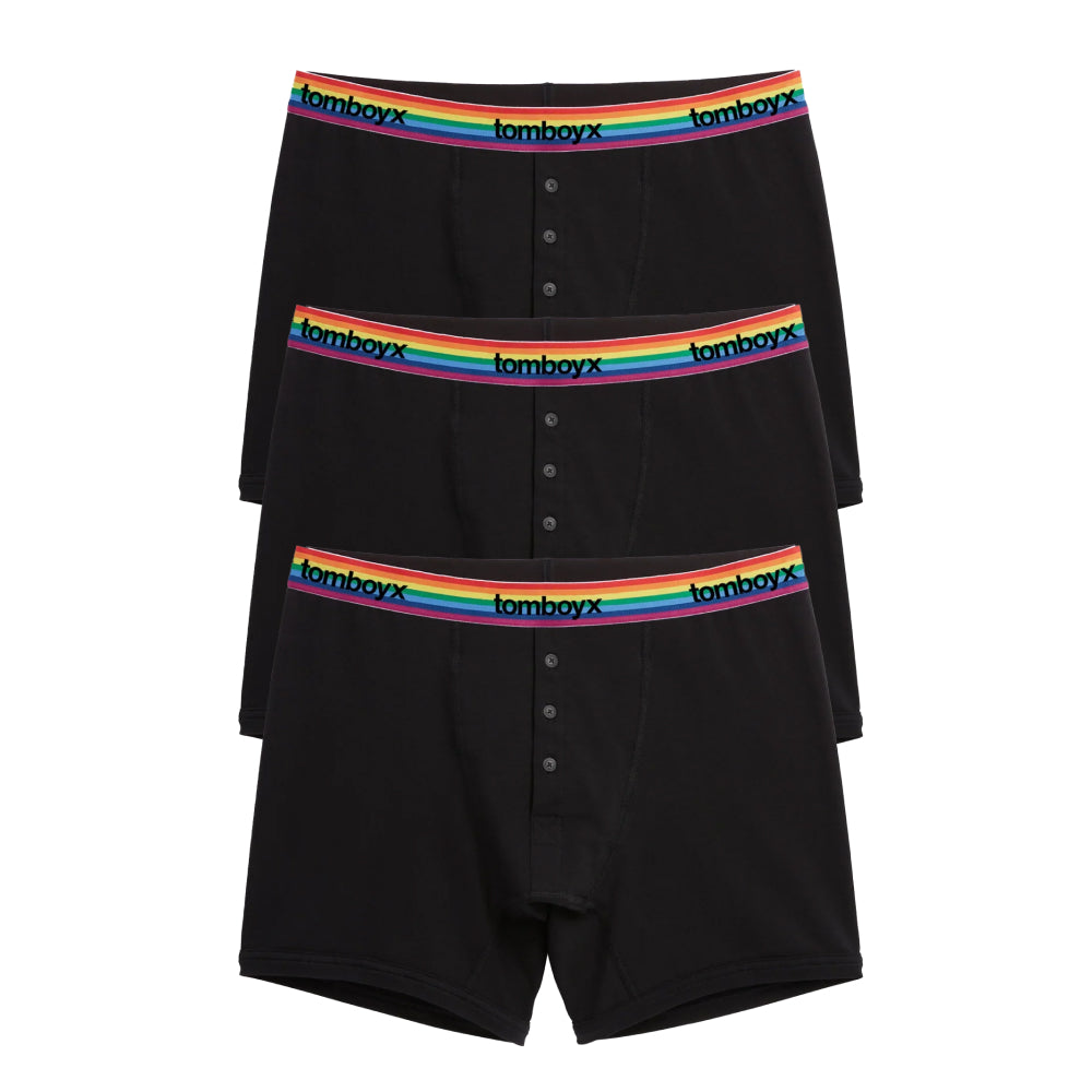 6" Fly Boxer Briefs 3-Pack - Cotton Black Rainbow Logo