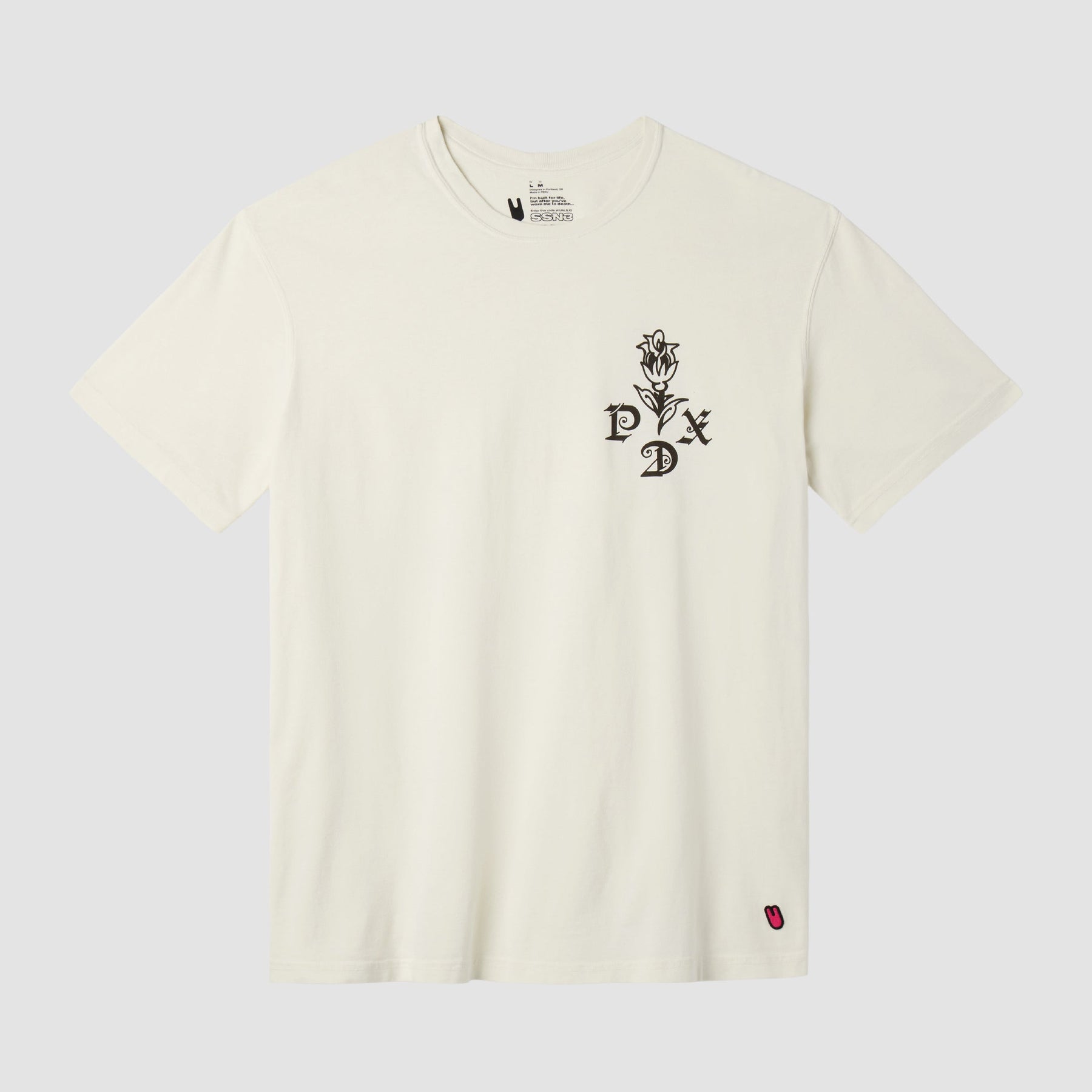 The PDX Tee is a low-key nod to the Rose City with a traditional tattoo style monogram.
