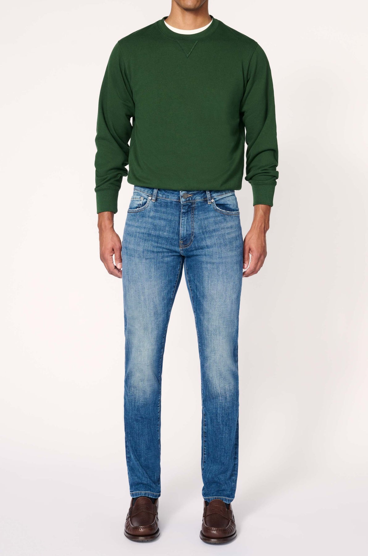 Our most popular slim fit jeans are sharp but not skinny, a silhouette we first fell for in Amsterdam. Crafted from high retention fabric that’s engineered to prevent baggy knees and saggy waistbands, it’s versatile, high performance denim that’s extremely durable and easy to dress up or down. Jones is a mid-blue wash with lived-in whiskering and fading throughout.