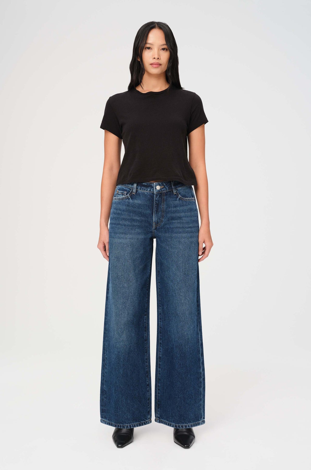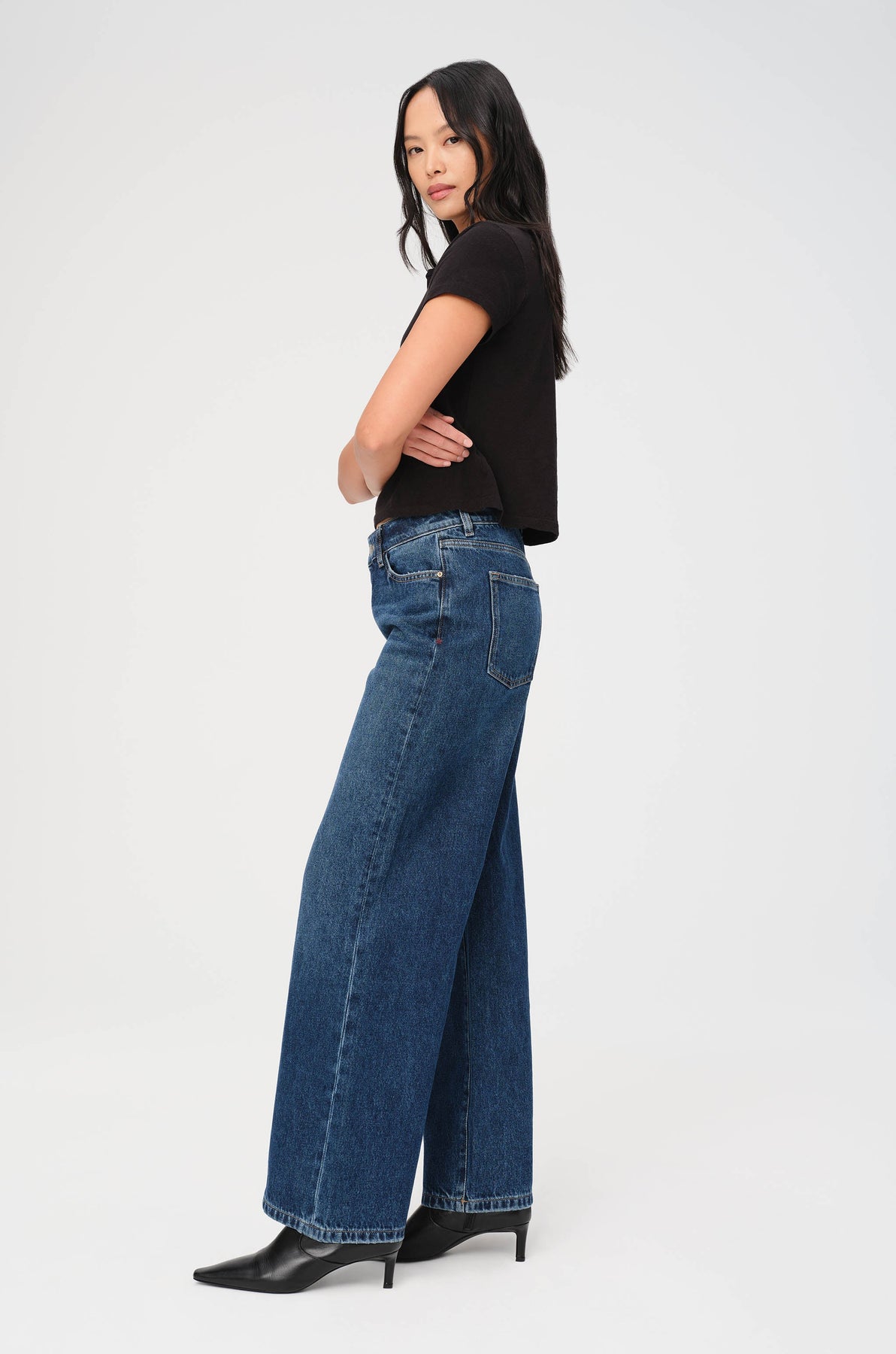 CJU is the ultimate chill wide leg jean. Featuring an effortless, mid rise that's relaxed through the seat to the hem, this leg lengthening style will become your easy outfit go-to, day after day.