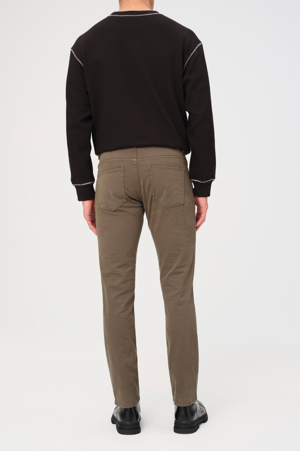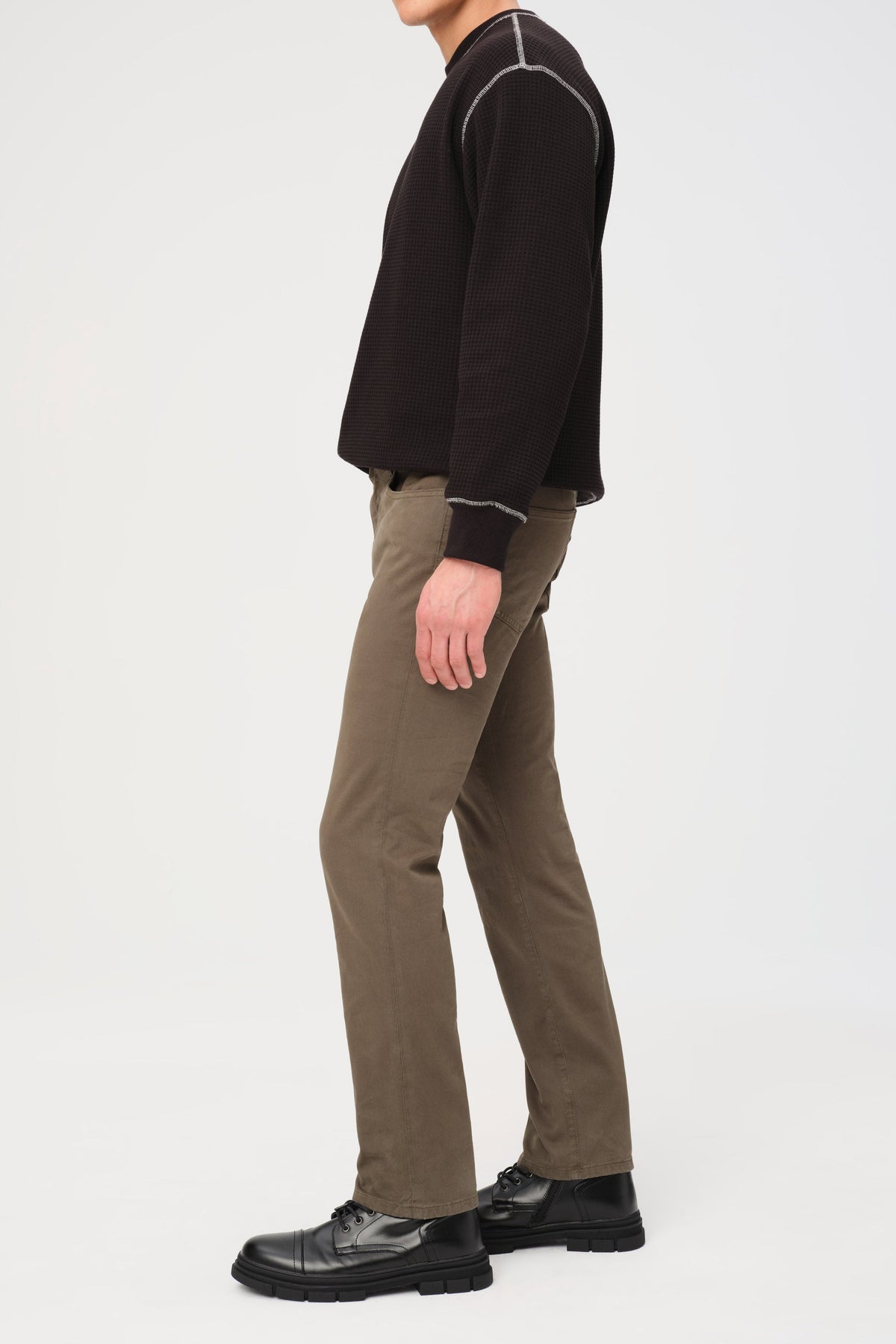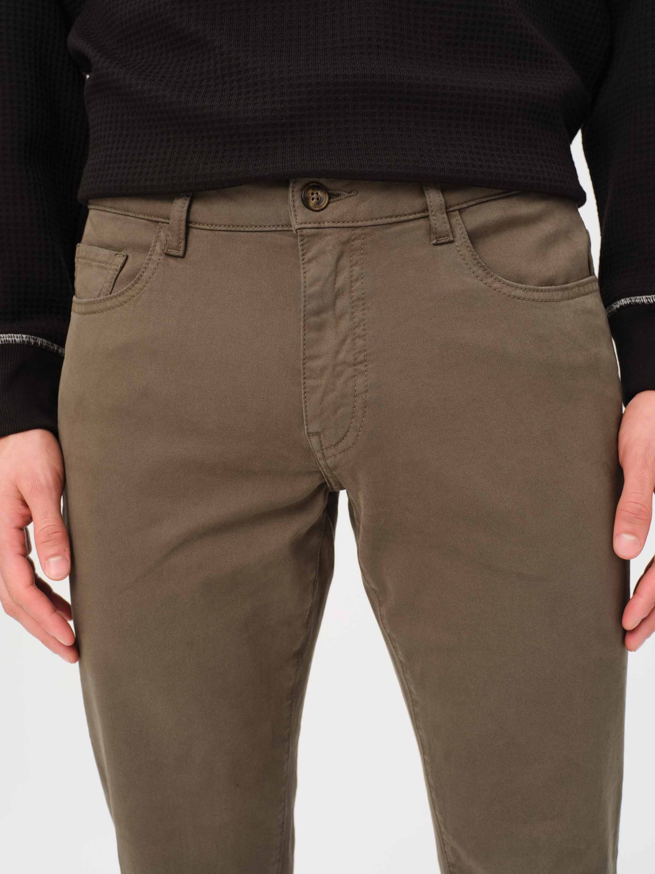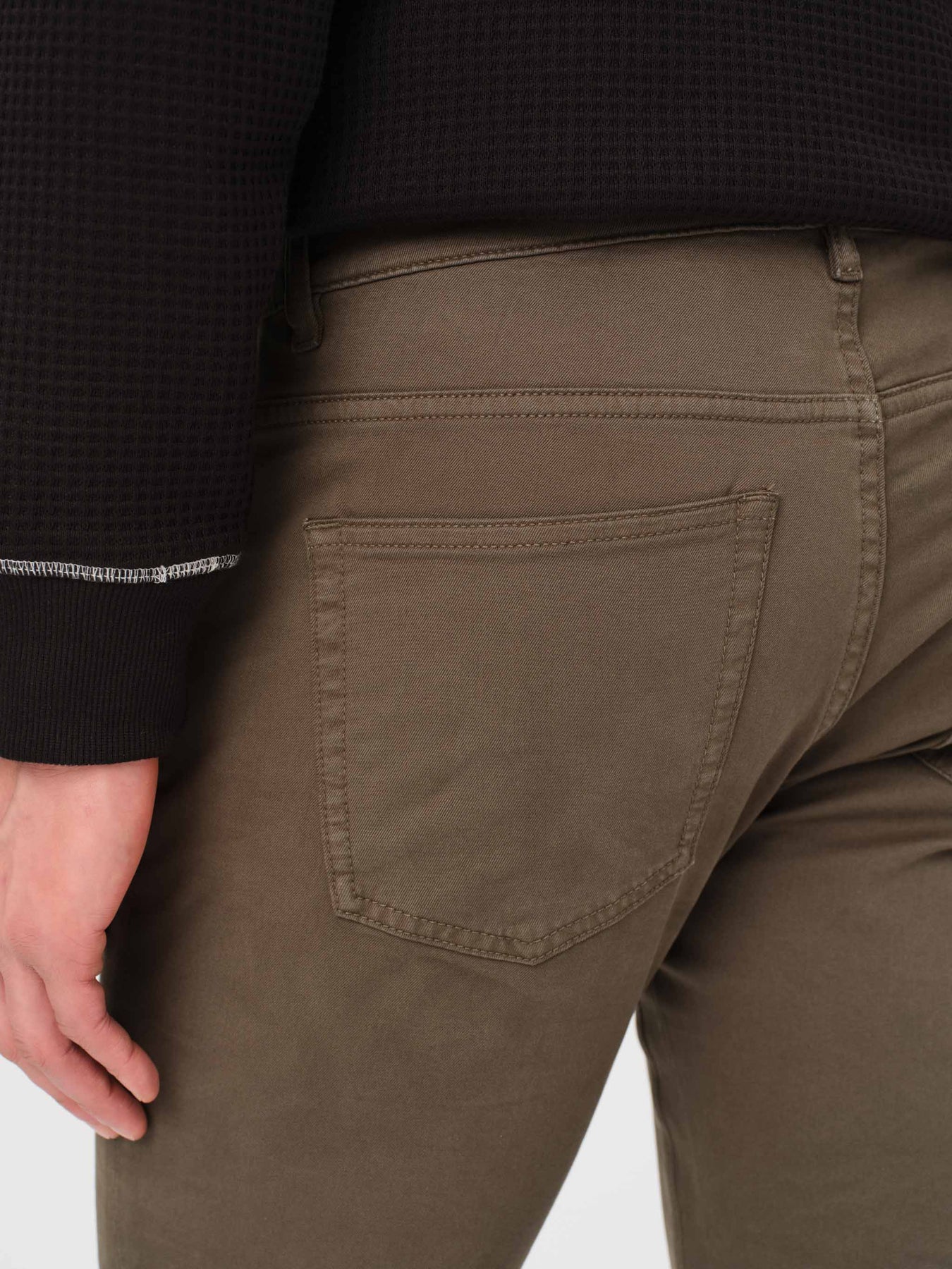 Thyme is a solid brown-toned green hue. It features a horn button, dyed-to-match stitching and a clean hem.