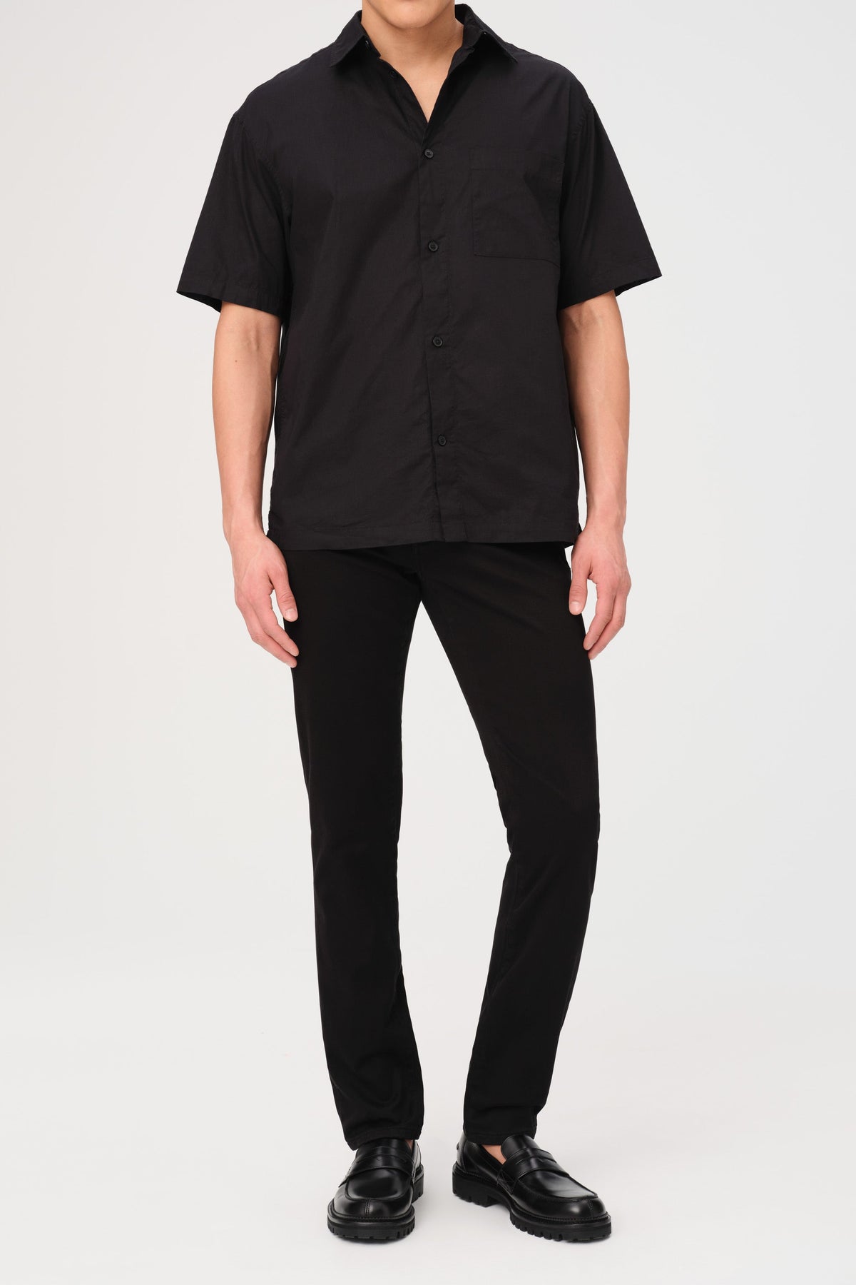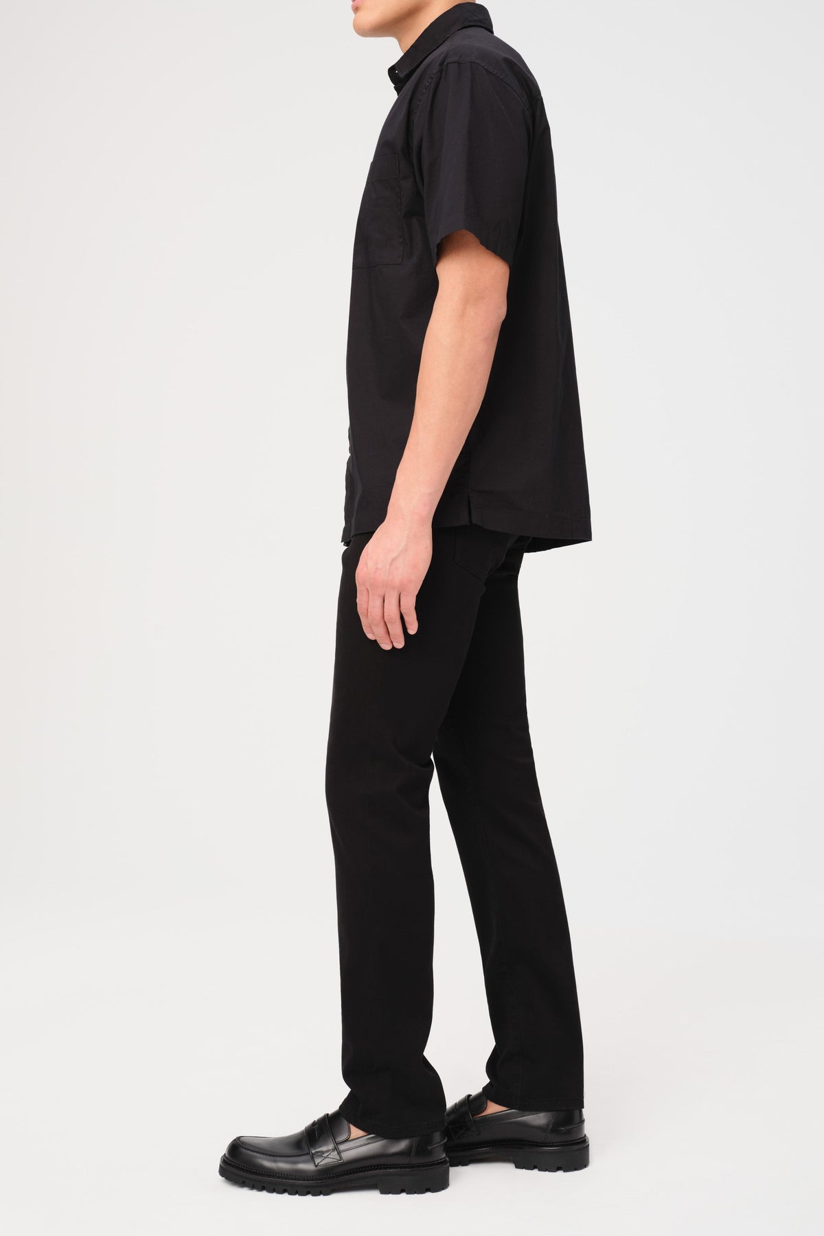 Our most popular slim fit jeans are sharp but not skinny, a silhouette we first fell for in Amsterdam. Crafted from high retention fabric that’s engineered to prevent baggy knees and saggy waistbands, it’s versatile, high performance denim that’s extremely durable and easy to dress up or down. Black is a rich, no-fade hue. It features a horn button, dyed-to-match stitching and a clean hem.