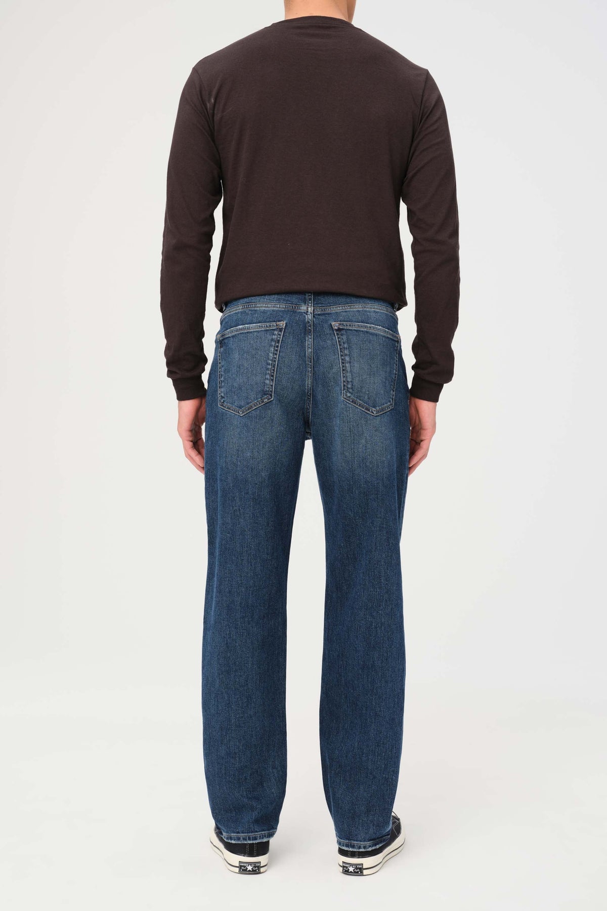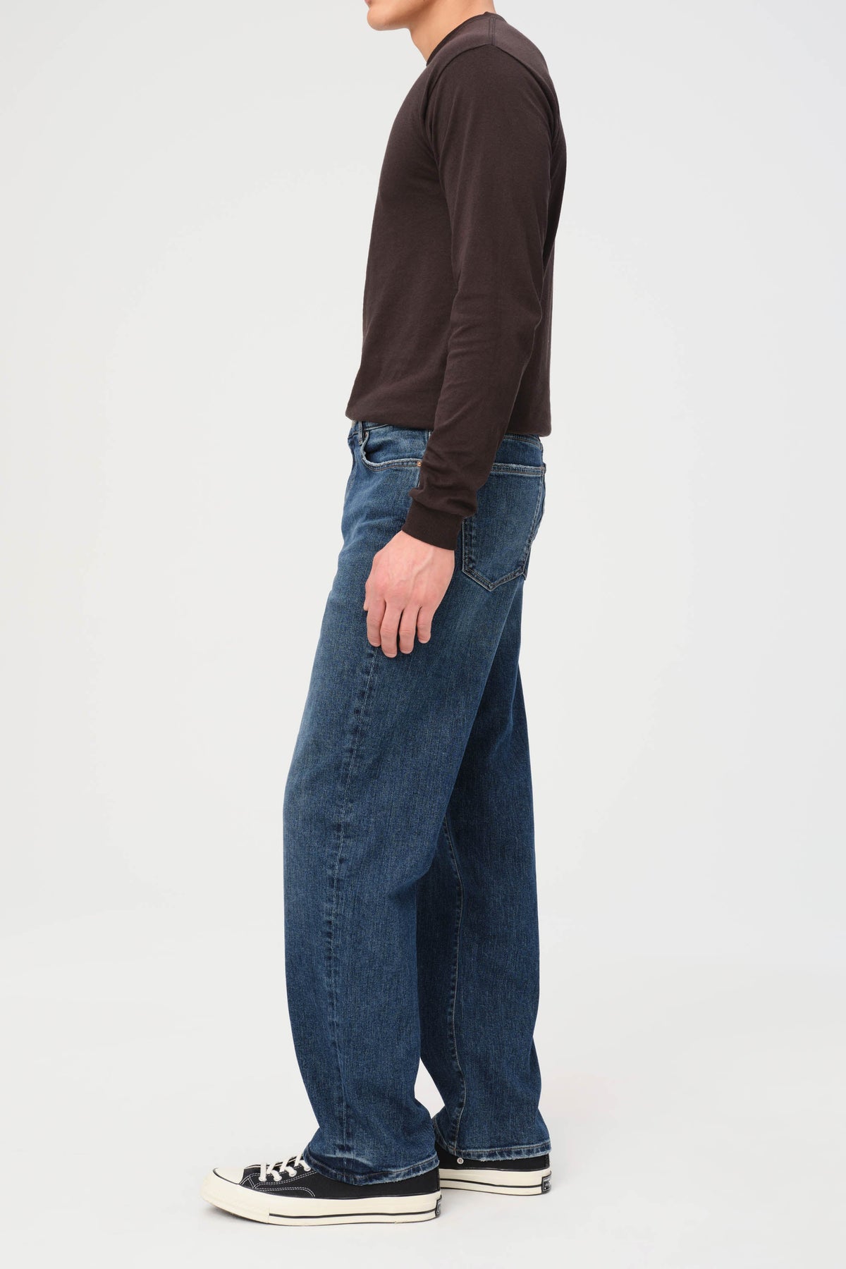 GRR is a relaxed straight leg jean that's roomy from the hip down through the leg. Inspired by the classic Americana feel of Grand Rapids, Michigan, GRR is your essential every day jean crafted in certified cotton with a hint of comfort stretch for all day wear. Open Range is a mid-to-dark wash indigo with clipping and fading detail throughout for an authentic look. It features a silver shank, copper rivets, khaki stitching and a clean hem.