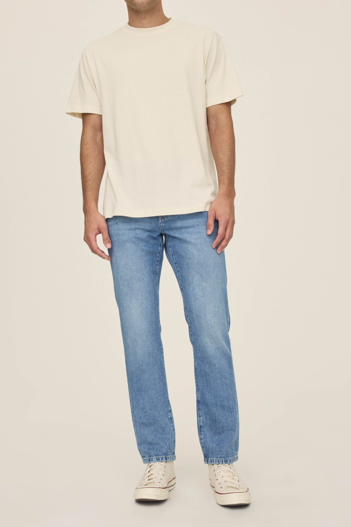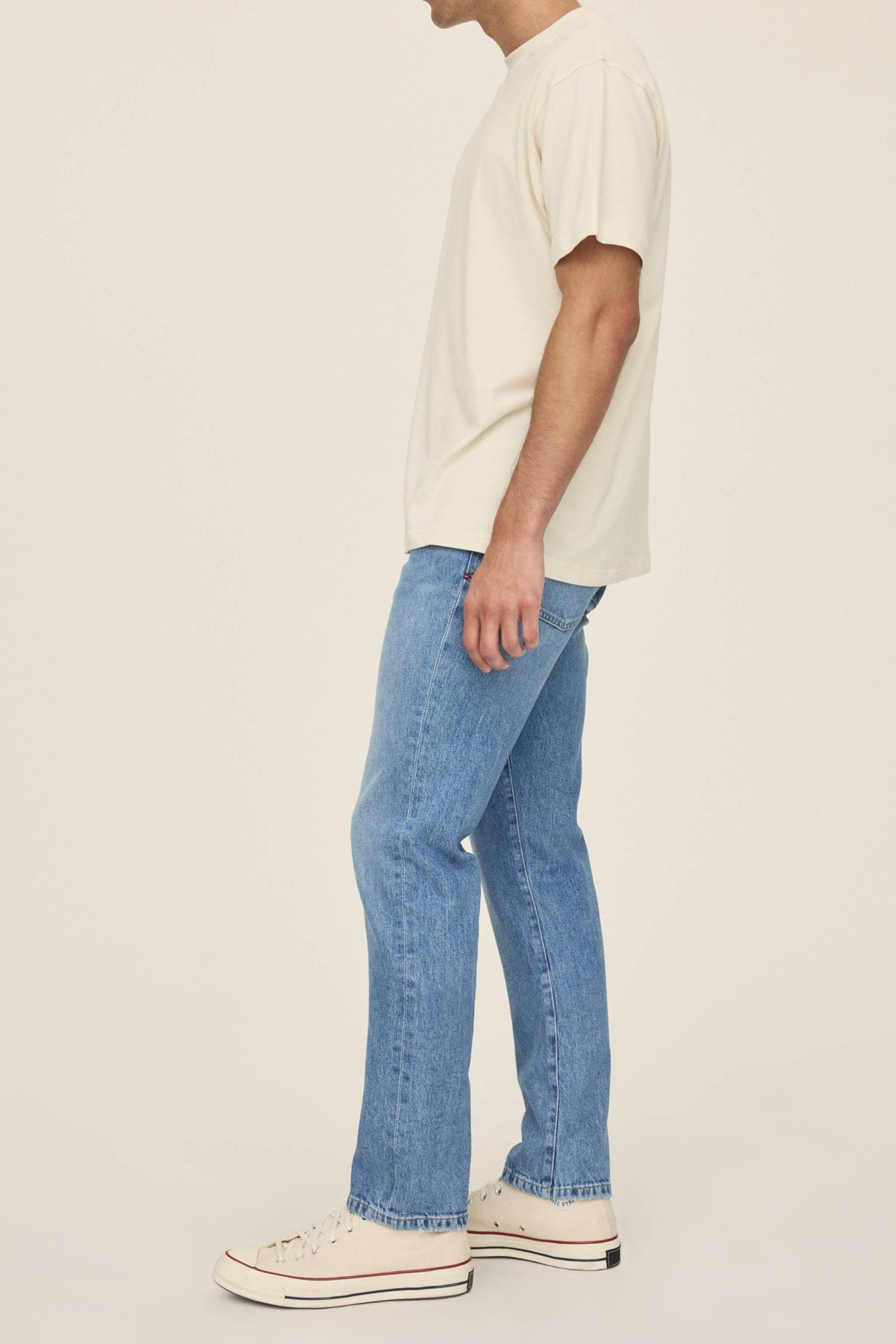 Architecturally minded yet understated - just like its namesake, Chicago - with a classic straight fit and a hint of stretch. Cut roomier through the legs and calves in a high retention fabric that never loses its shape, these essential jeans are easy to wear and always looks fresh. Silverado is a light indigo wash with vintage character throughout. It features a silver shank and copper rivets, khaki stitching and a clean hem.